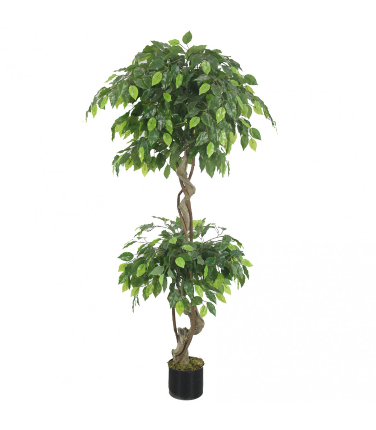 150cm Artificial Twisted Ficus Tree. Artificial plant by Leaf Design UK. Potted in a plain plastic pot and is fully assembled. These trees are designed to be put inside a larger planter to display and you can add soil - gravel or bark around them to make them look even more realistic.