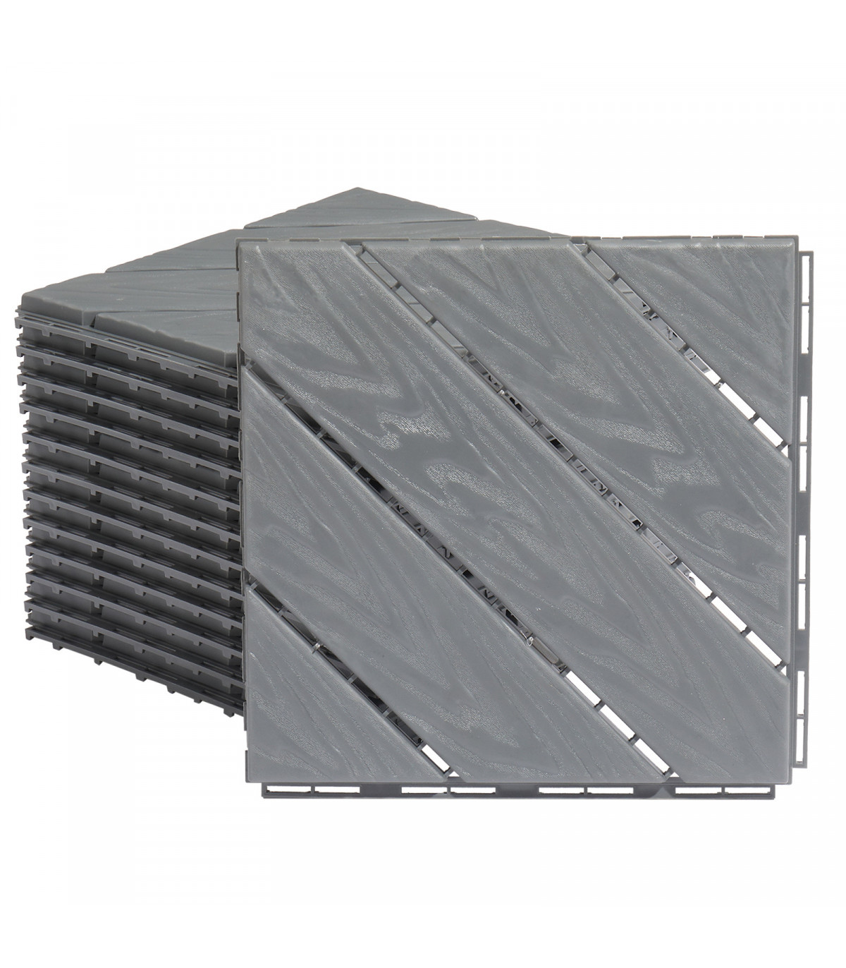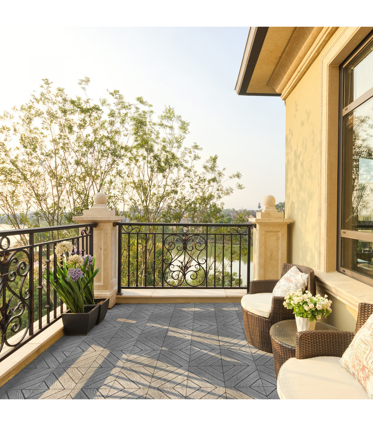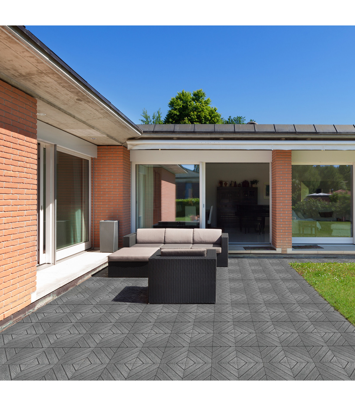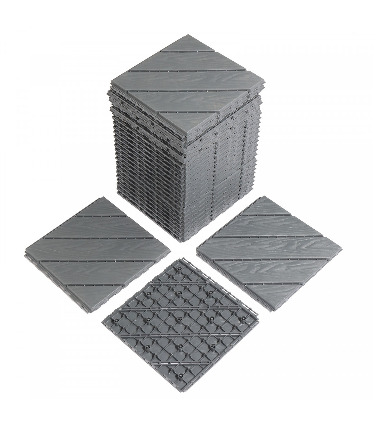 Revitalize your outdoor area with our Plastic Interlocking Deck Tiles. These versatile tiles are designed to elevate the functionality and aesthetics of your patio, porch, balcony, or poolside area. Crafted from high hardness plastic, these interlocking tiles are built to endure various weather conditions, ensuring long-lasting performance without any signs of fading or splintering. The dark grey hue brings a contemporary and stylish touch to your outdoor setting. Installation is a breeze with the innovative interlocking design, allowing you to quickly enjoy your new flooring. With non-slip pads for enhanced safety and a superior water drainage system to keep your space clean and dry, these deck tiles are the perfect choice for a hassle-free outdoor upgrade.