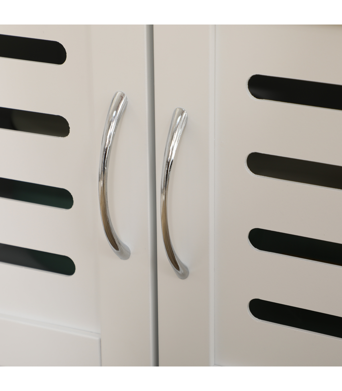 This storage cabinet is covered with a louvred door to keep items out of sight as well as maintain ventilation
