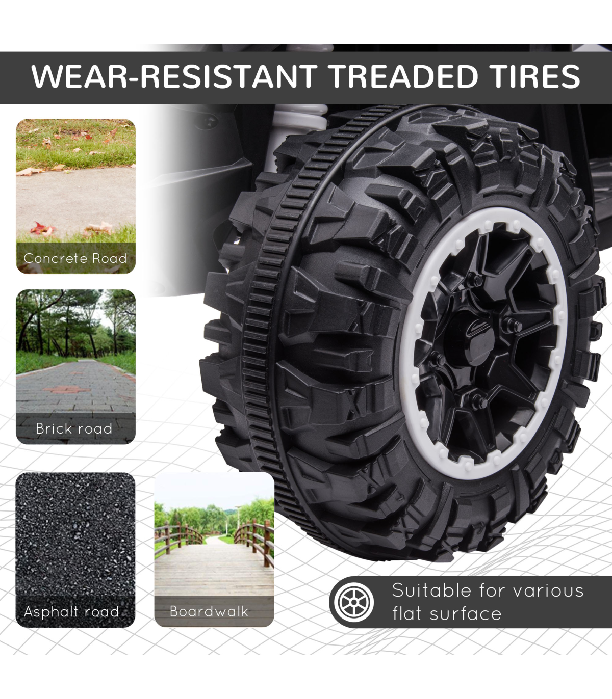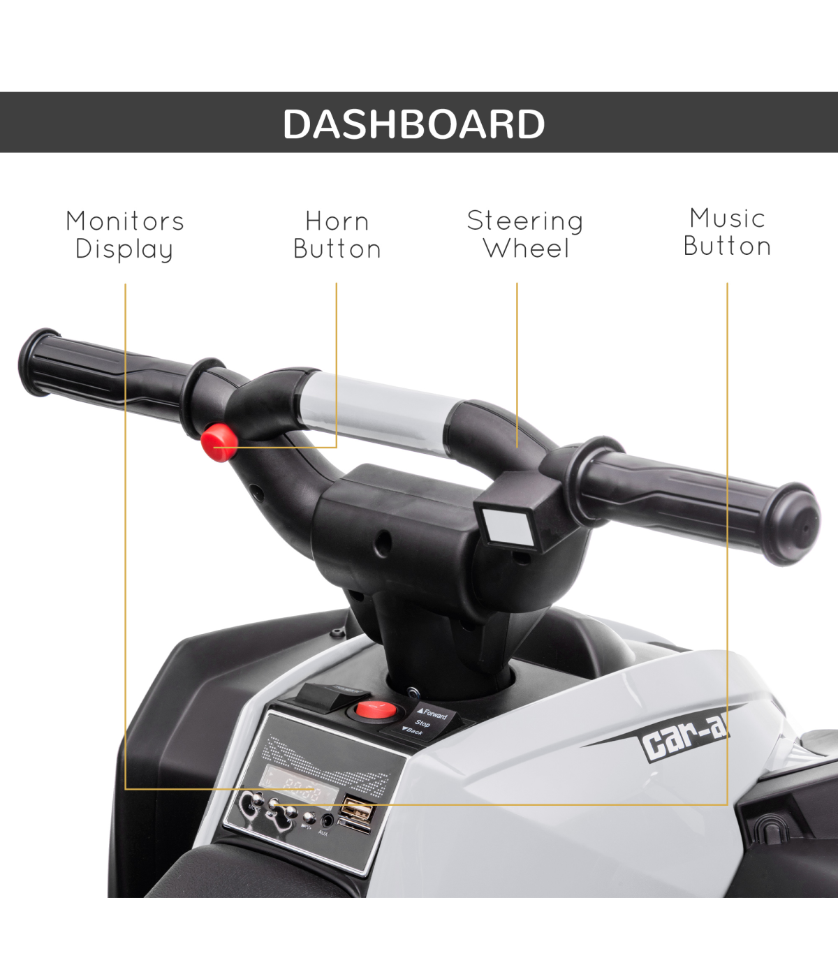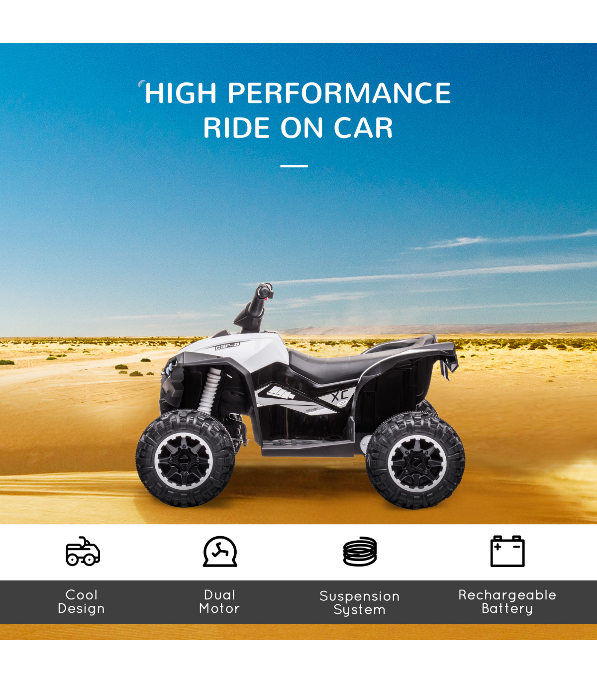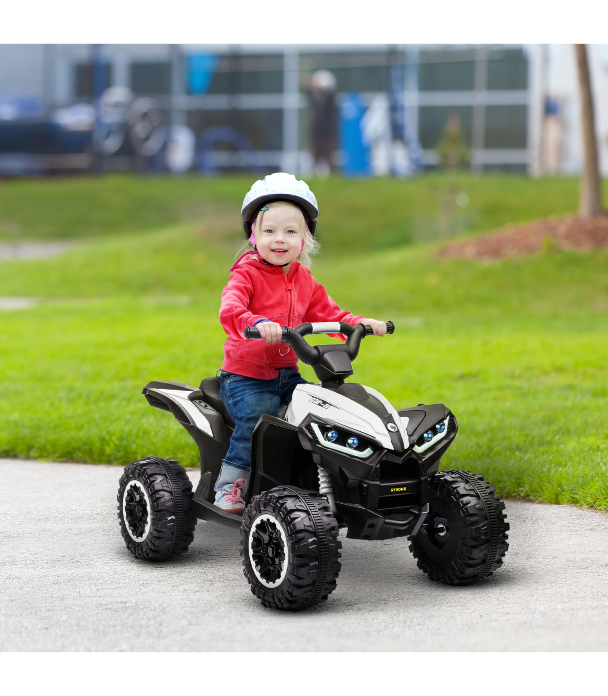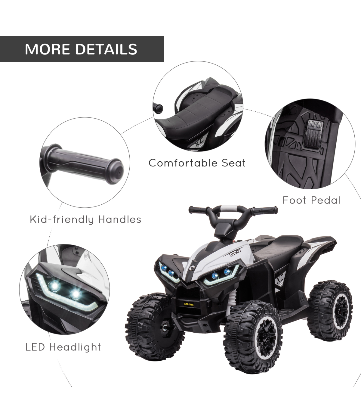 The freedom of driving a four-wheeler is like no other. Now, your child can experience the fun, thanks to this HOMCOM kids ATV. They'll beep the horn, flash the LED headlights and listen to music �C just like you would in a real vehicle. It's battery-powered, which lasts for 45 minutes on a full charge and there are two speeds �C 1.5 and 3km/h �C so they will drive at a safe pace, whilst the wide and textured tyres keep the ride smooth. A safe way to make outdoors extra enjoyable.