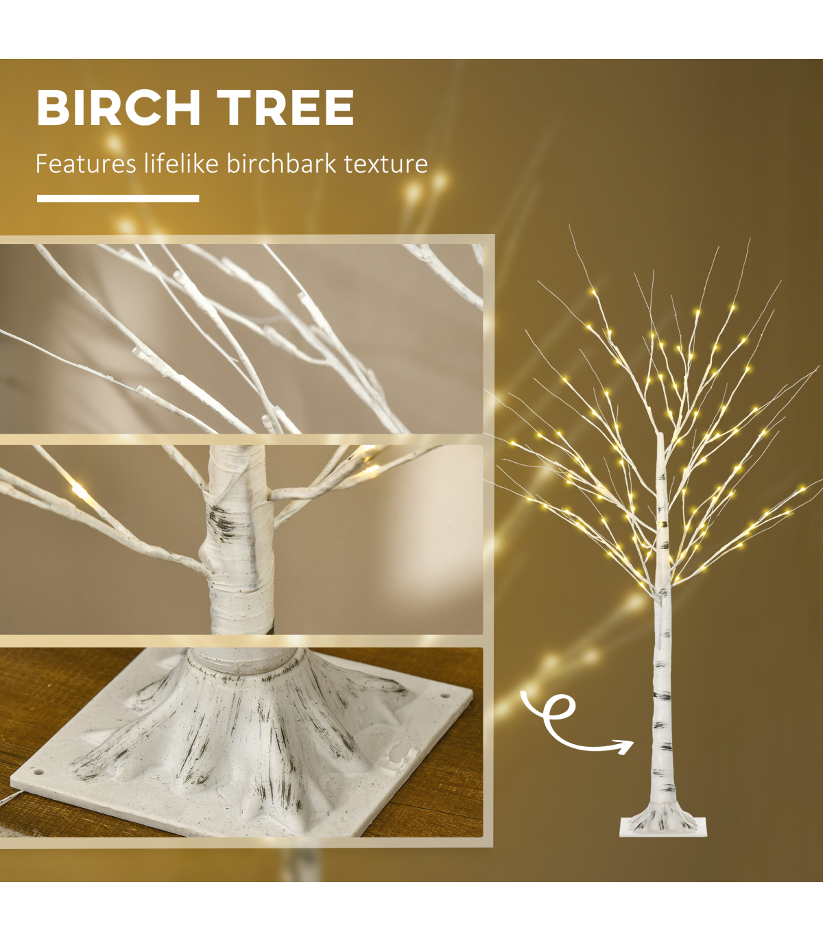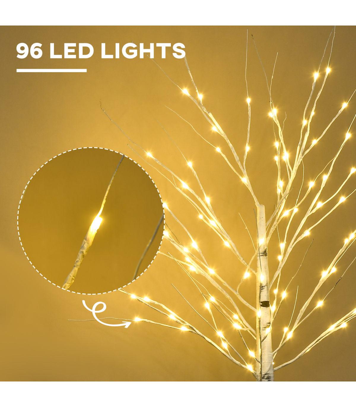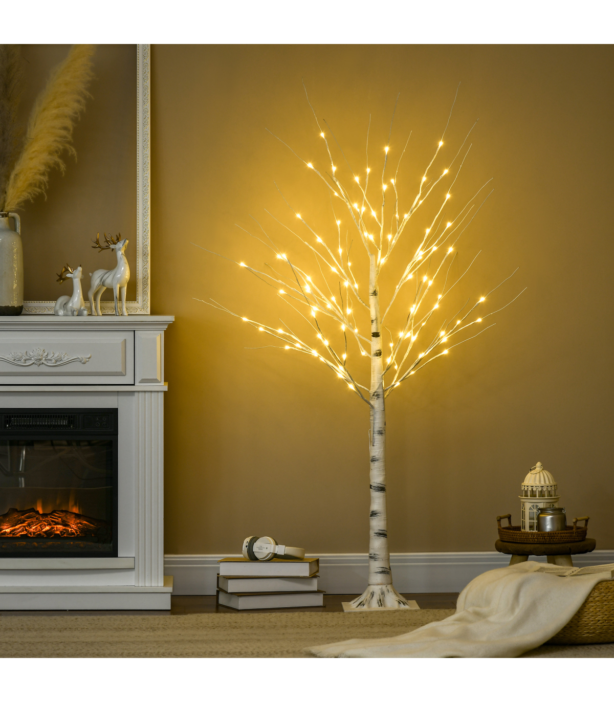 5ft Artificial White Birch Tree Light 96 Warm White Pre-Lit LED Light