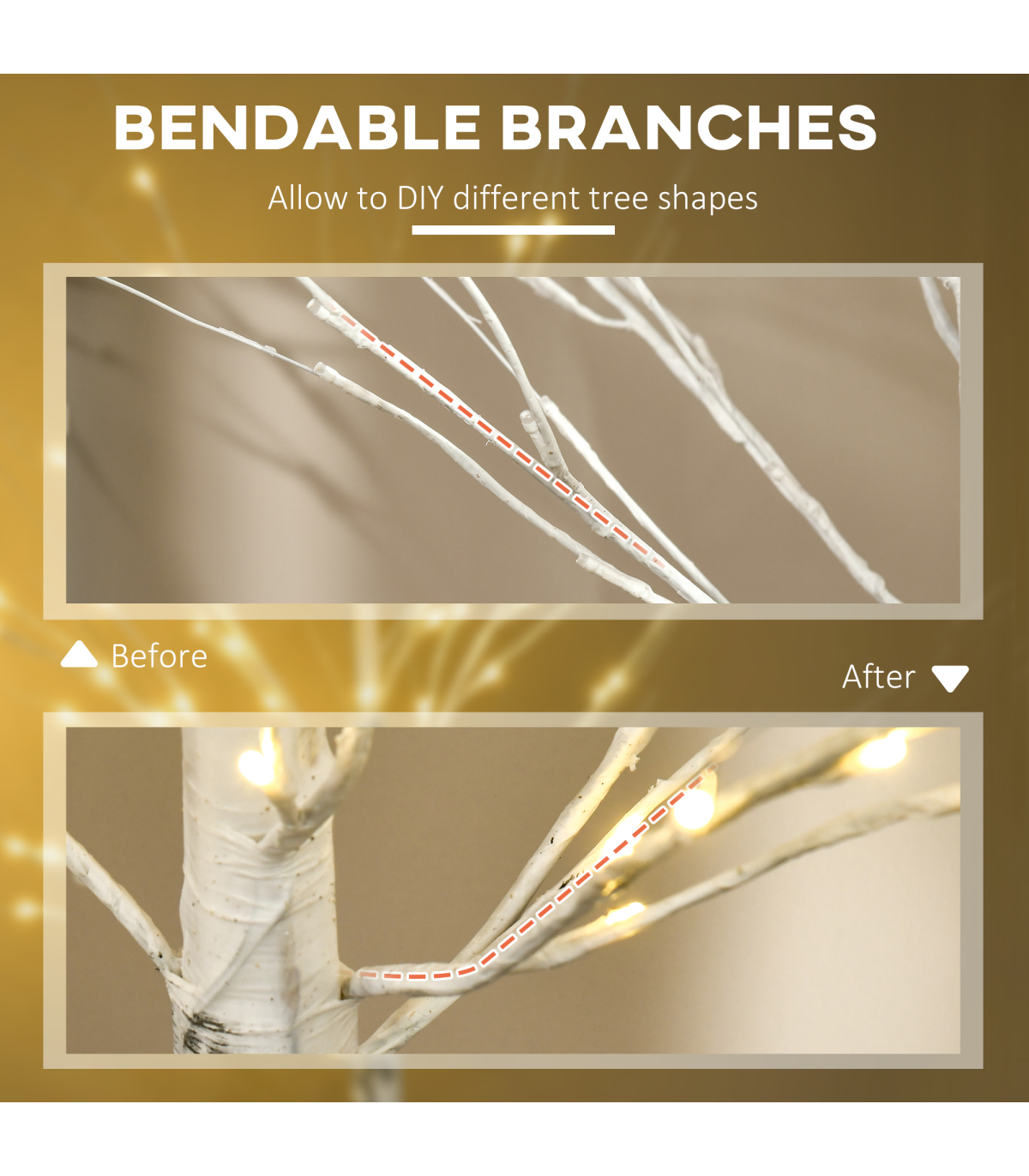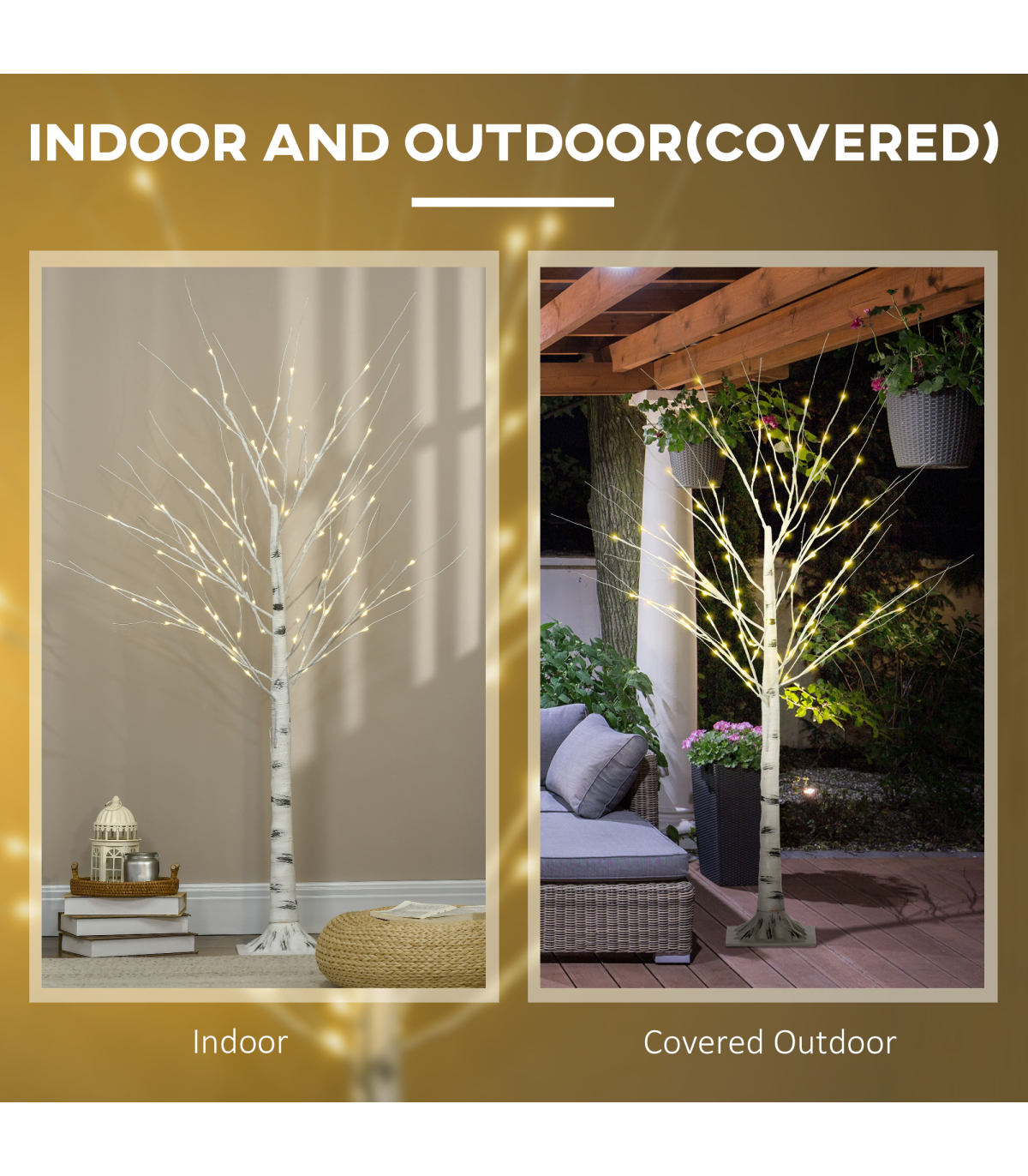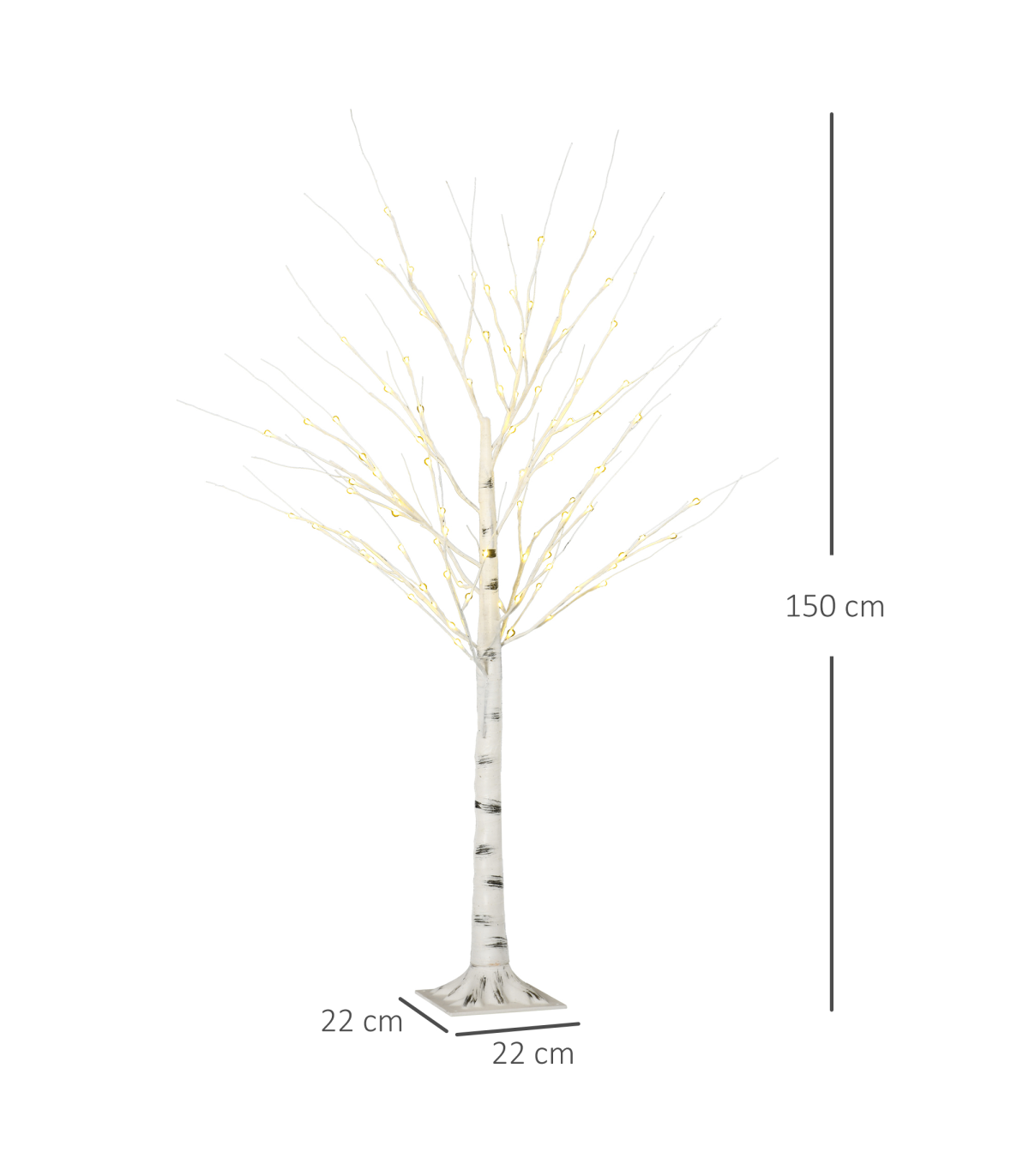 LED LIGHTS: Warm white LED lights decorate the birch tree, to brighten your living space. While LED lights consume little energy and save energy.REALISTIC LOOK: Our highly realistic birch tree with lights features lifelike birchbark texture, will introduce an irresistible sense of elegance to any setting and draw your guests' eyes with their unique charm and style.FLEXIBLE DESIGN: The bendable branches can bent into any shape you want, ideal for you to DIY natural tree shape and put ornaments on this LED tree.INDOOR AND OUTDOOR(COVERED): Made of plastic, with an IP44 water protection rating, this light tree is perfect for both indoor and outdoor(covered) displaying, including home, parties, weddings, patio, etc.PRE LIT BIRCH TREE DIMENSION: Overall Dimension: 22L x 22W x 150H cm