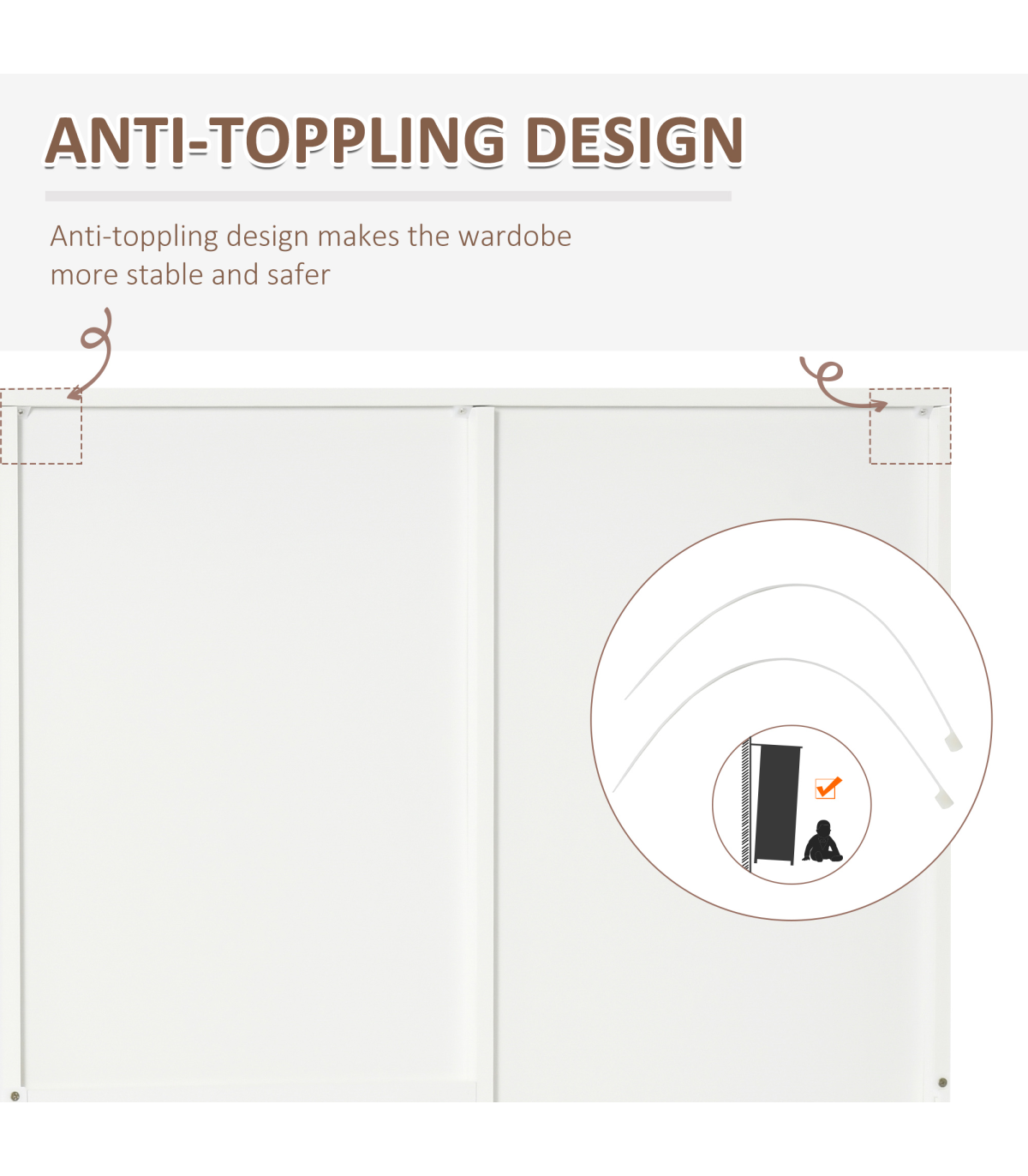 2-Door Wardrobe w/ Adjustable Shelf 3 Drawers for Bedroom, 180cm, White