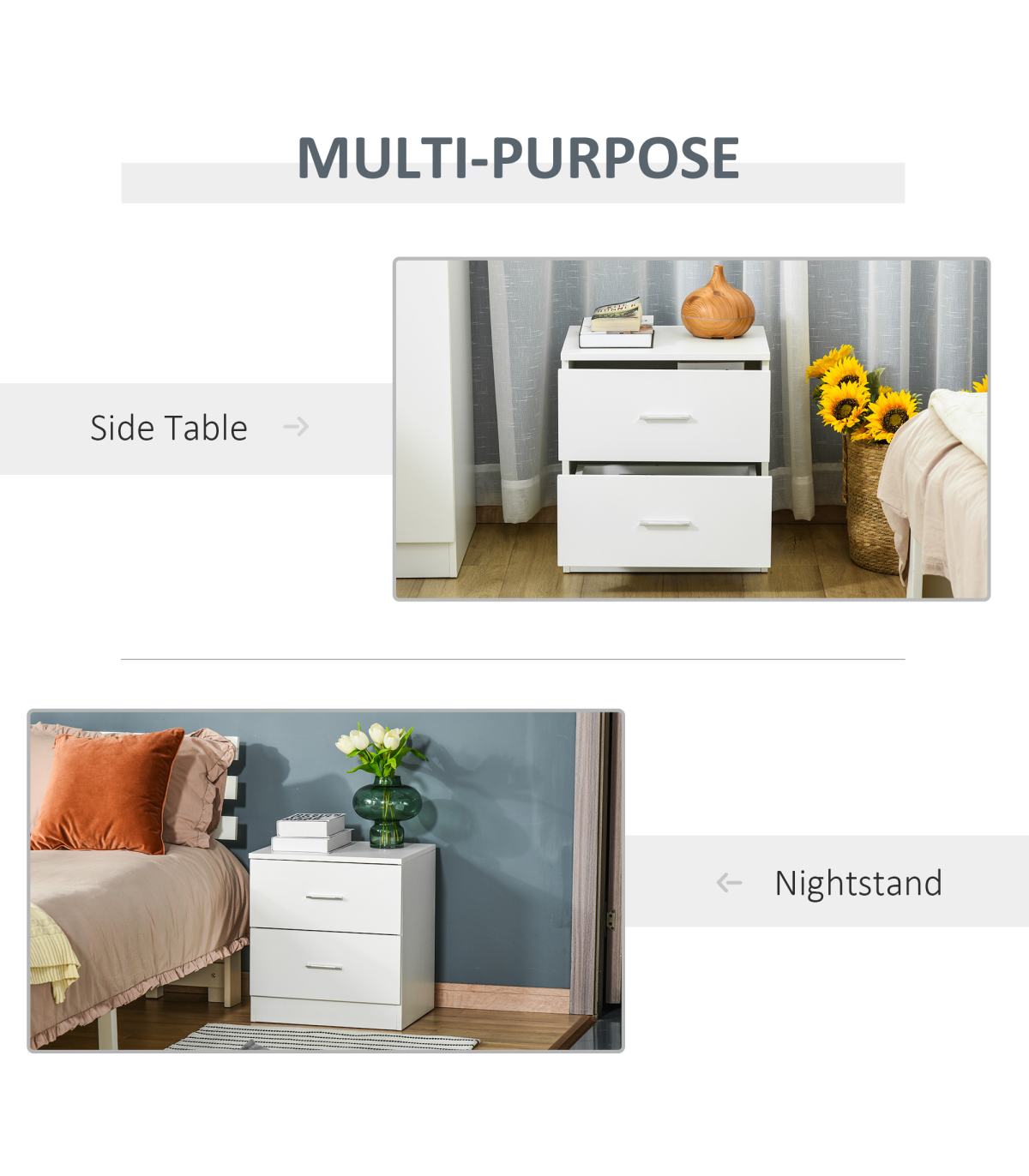 Bedside Table w/ 2 Drawers, Nightstand, Side Storage Cabinet Unit