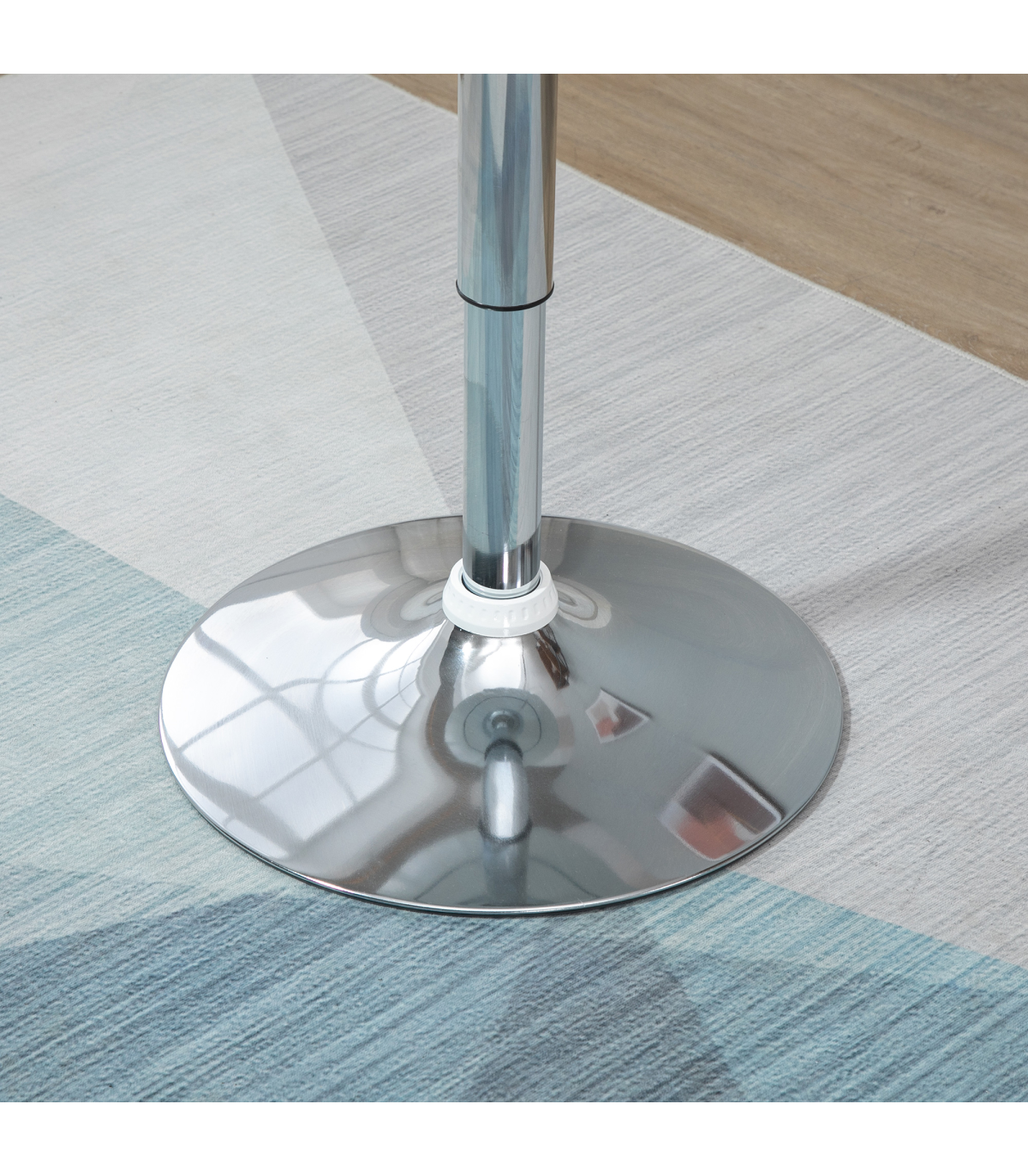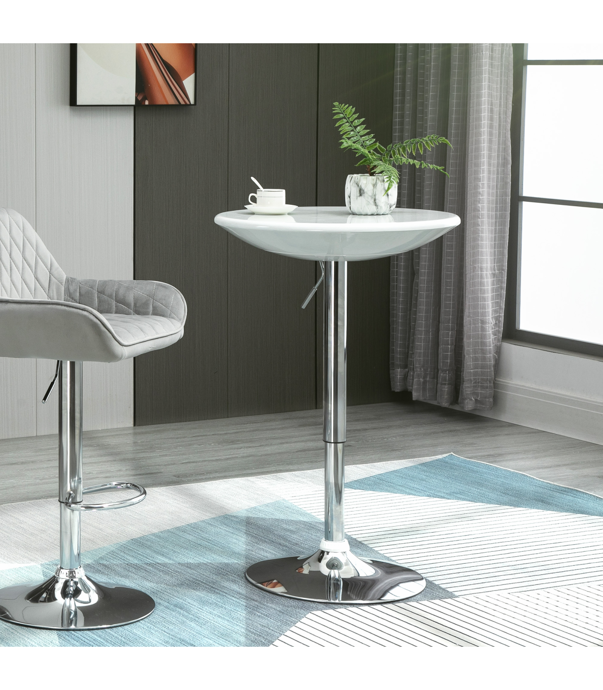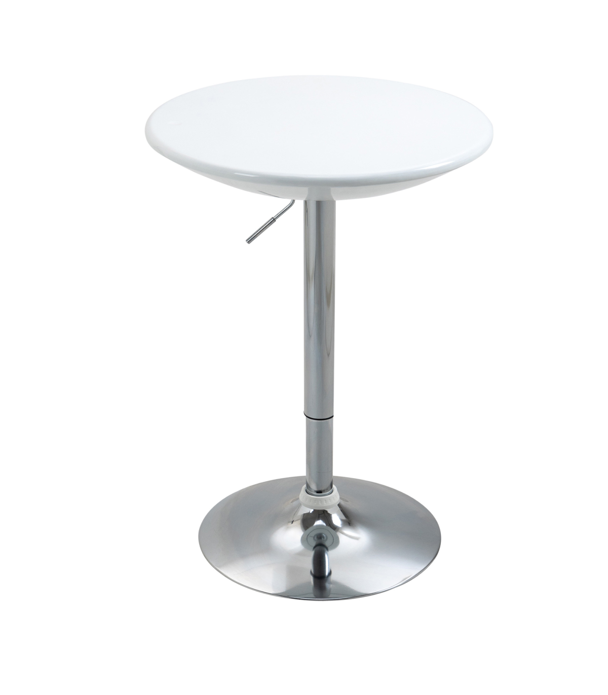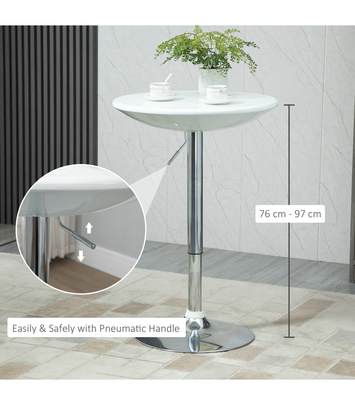 SLEEK MOD AESTHETIC: The sleek and neutral white painted tabletop with silver steel base is a perfect addition to modern home bars, patio, pubs, parties and restaurant, etc. The location maker of the handle is a convenient design.360SWIVEL TABLETOP: Swivel tabletop provides you with easy access to the foods, drinks, fruits, snack or coffee, making you enjoy the leisure time to your heart's content. ABS painted waterproof desktop can be cleaned with a wet cloth and not be easily dirtied by water or oil stains.HEIGHT ADJUSTABLE: Powered by a pneumatic gas lever, this table can be adjusted from 76 cm to 97 cm to accommodate seated or standing guests, depending on the situation and setting.STURDY STEEL BASE: Made of electroplating and steel chassis, this sturdy pub table can hold up to 80 kg.DIMENSION: Overall Dimension: 61L x 61W x 76-97H cm. Assembly Required.