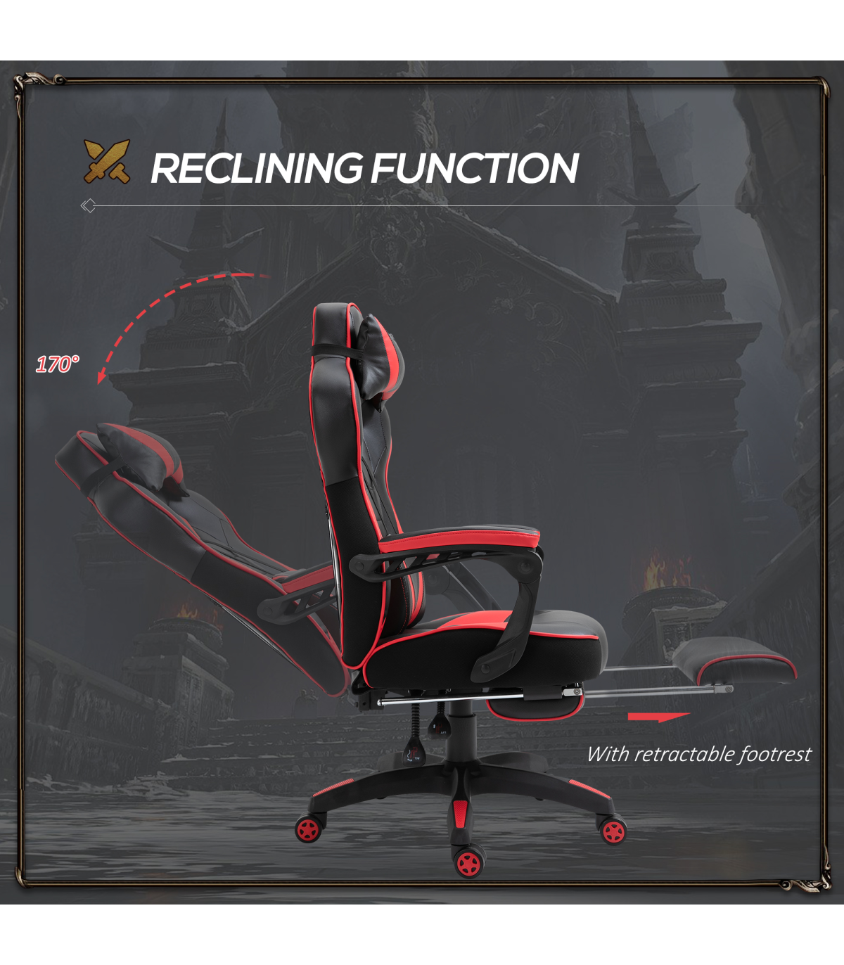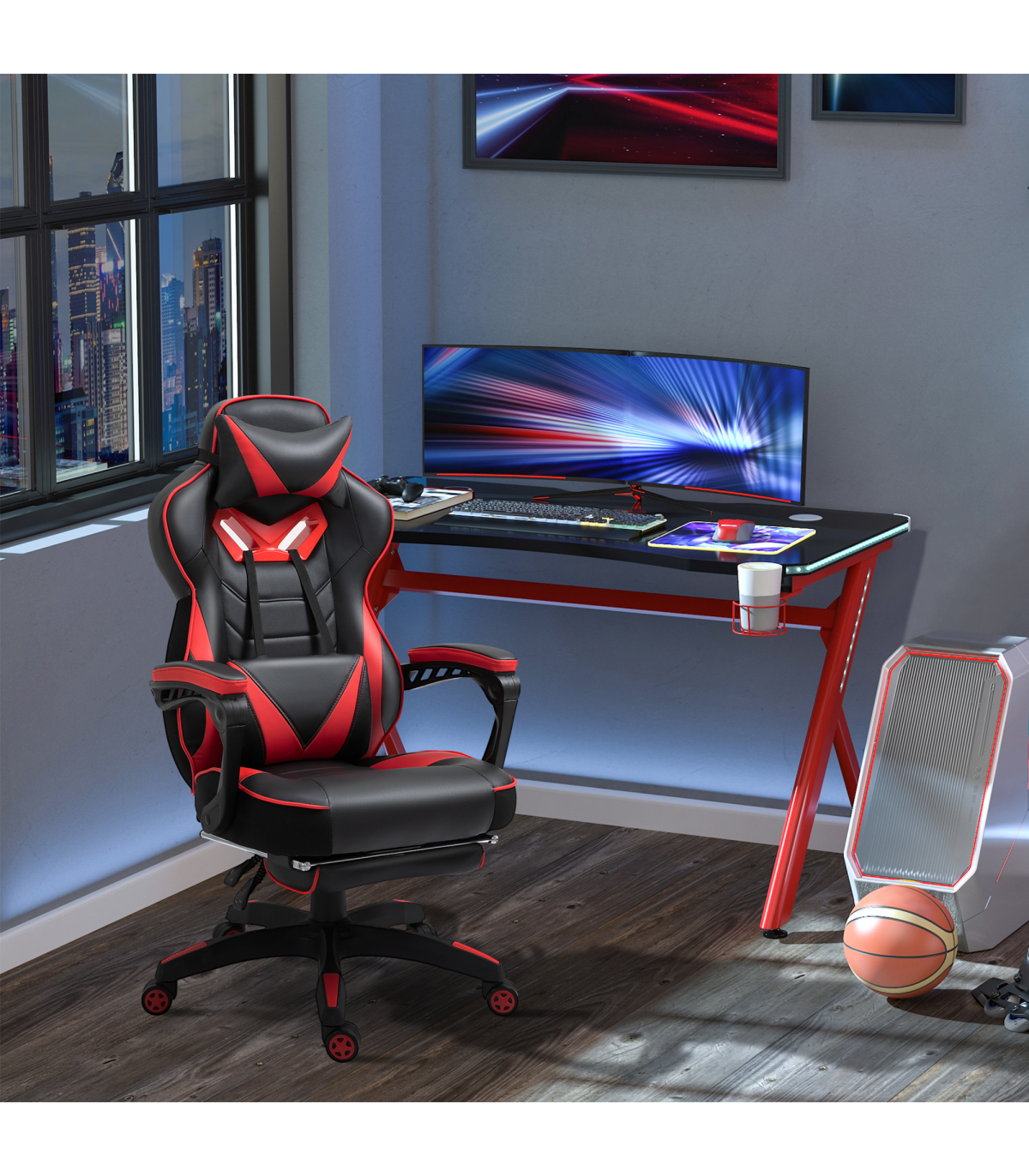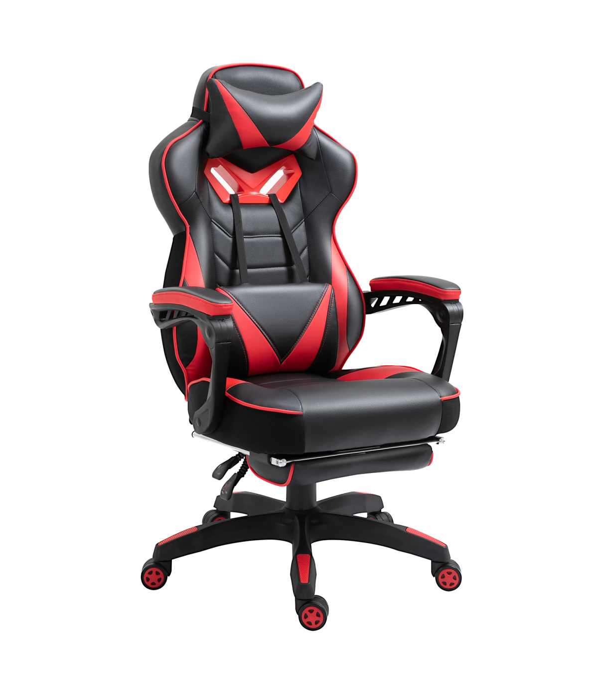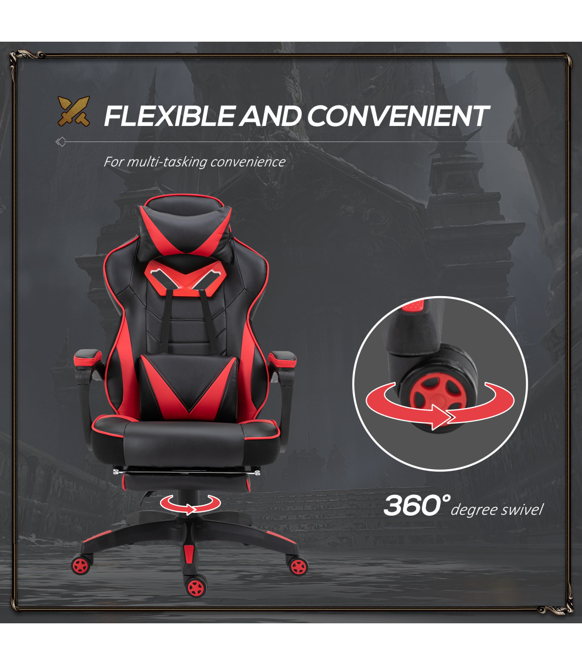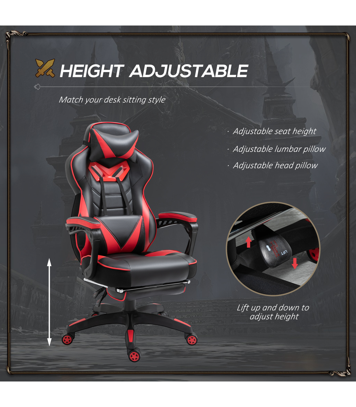Gaming Chair Ergonomic Reclining w/ Manual Footrest Wheels Stylish Office Red