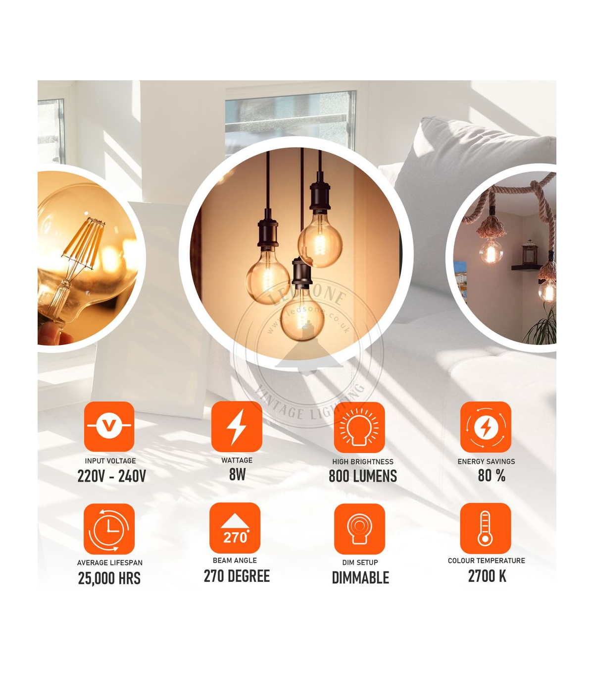 • Energetic LED vintage light bulbs are just as eye-catching when they are off as when they are on.