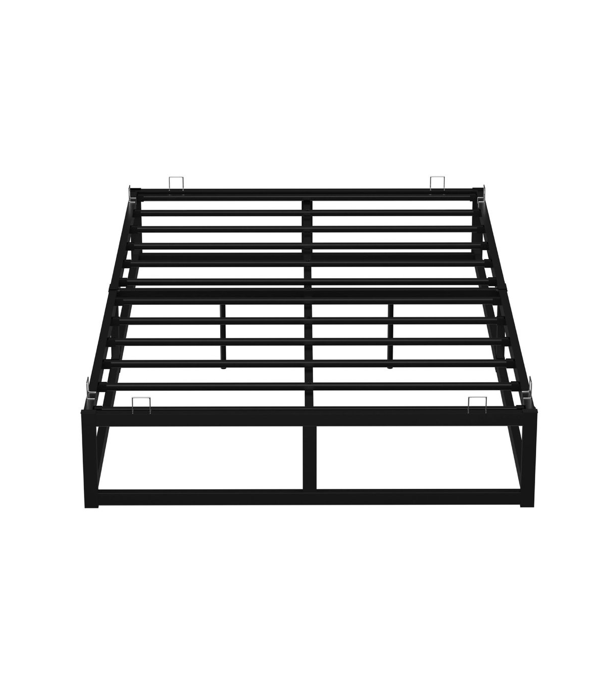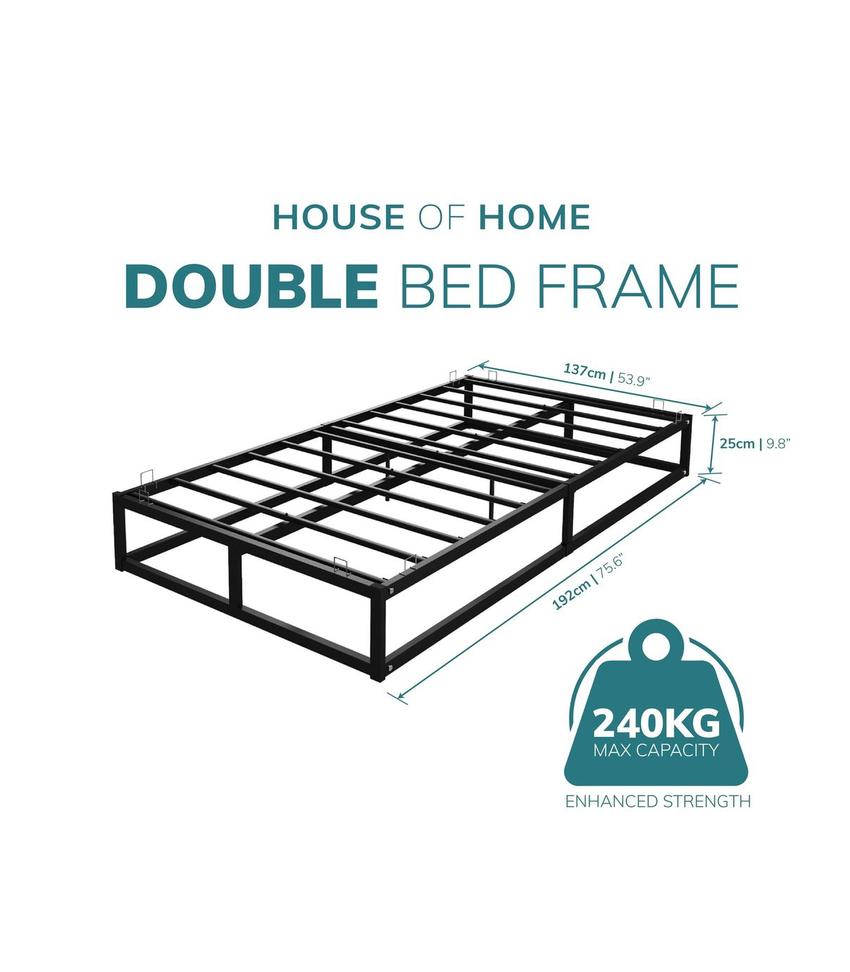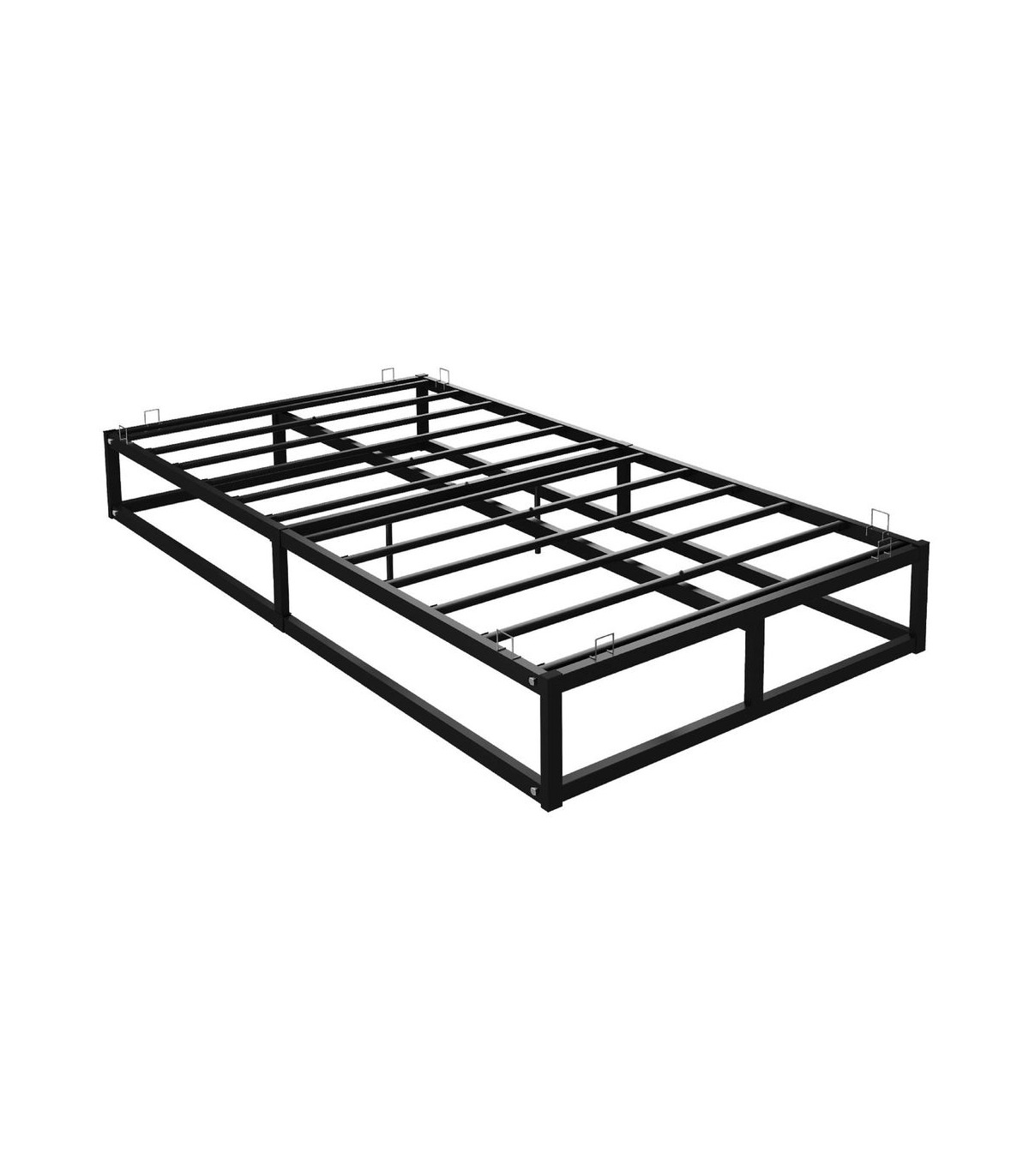 This metal platform bed is not only very strong but stylish. The metal slats have been designed for evenly distributed support. The frame of the bed is very sturdy in its construction as the bar along the floor ensures a solid finish. Finished with a black powder coating this bed would suit any bedroom décor. These beds feature mattress brackets to keep the mattress securely in position on top of the platform. These beds are supplied flat packed with easy to follow instructions, allowing them to be built quickly and effortlessly. All components for building your bed frame are included in the box Double: 190cm L x 138cm W x 25cm H