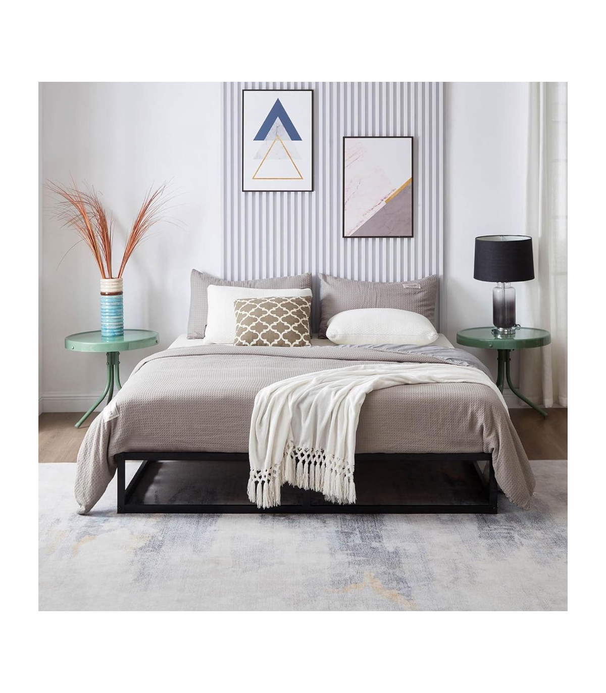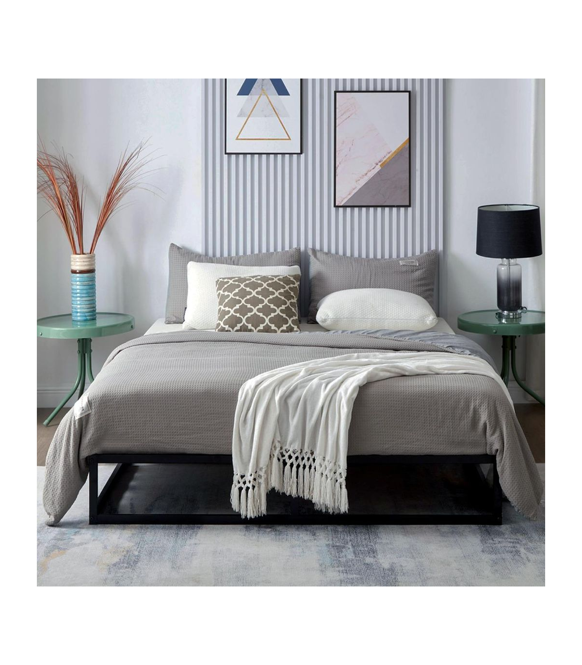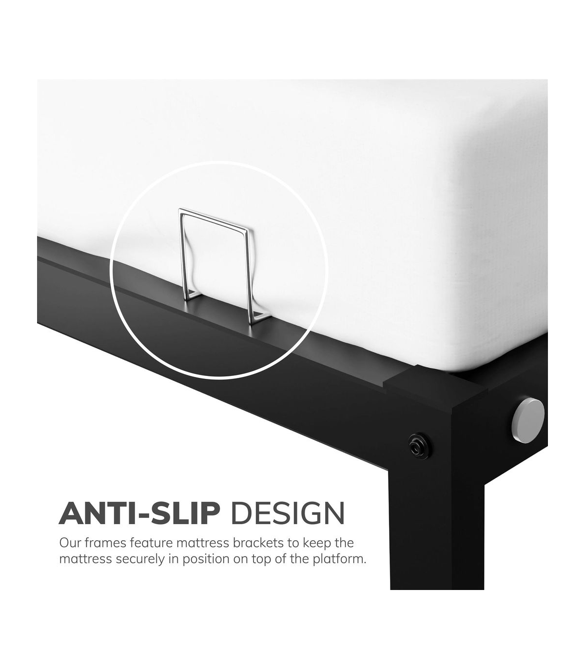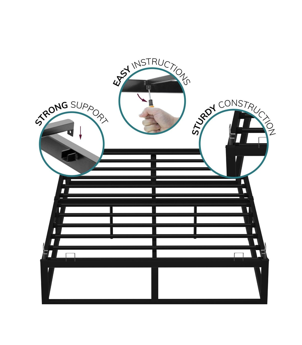 This metal platform bed is not only very strong but stylish. The metal slats have been designed for evenly distributed support. The frame of the bed is very sturdy in its construction as the bar along the floor ensures a solid finish. Finished with a black powder coating this bed would suit any bedroom décor. These beds feature mattress brackets to keep the mattress securely in position on top of the platform. These beds are supplied flat packed with easy to follow instructions, allowing them to be built quickly and effortlessly. All components for building your bed frame are included in the box Double: 190cm L x 138cm W x 25cm H