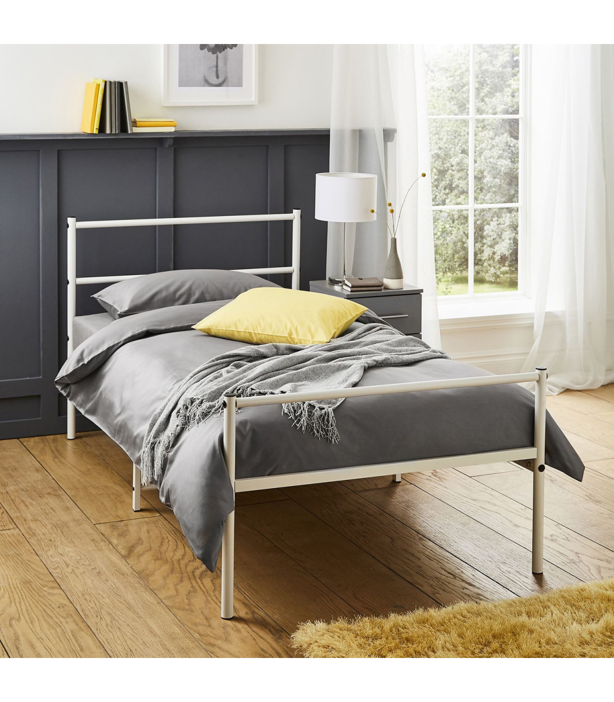 Simplistic yet elegant, these sturdy metal bed frames will add a modern touch to any bedroom. Available in a range of styles and sizes in a sleek black finish or clean contemporary white, these bed frames are perfect for a range of decors and can be dressed to suit your personal style. With strong metal tube slats and center support legs for extra strength, these bed frames are incredible value for money. Large under bed storage space perfect for storage drawers, baskets and containers to hide any bedroom clutter. Ideal for guest’s bedroom, children or your own minimalist bedroom. Fast and easy to build, your new bed frame is supplied flat-packed with simple-to-follow instructions, allowing it to be built quickly and effortlessly. All components for building your bed frame are included in the box. Single Bed Frame - 6ft x 3ft (198cm x 88cm) suitable for a standard single mattress.