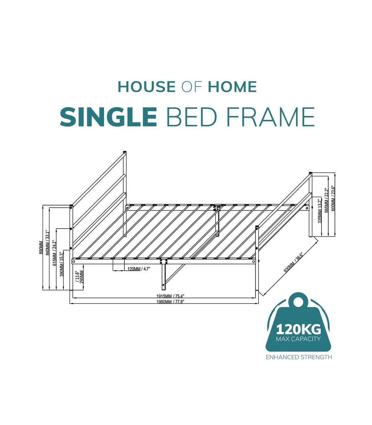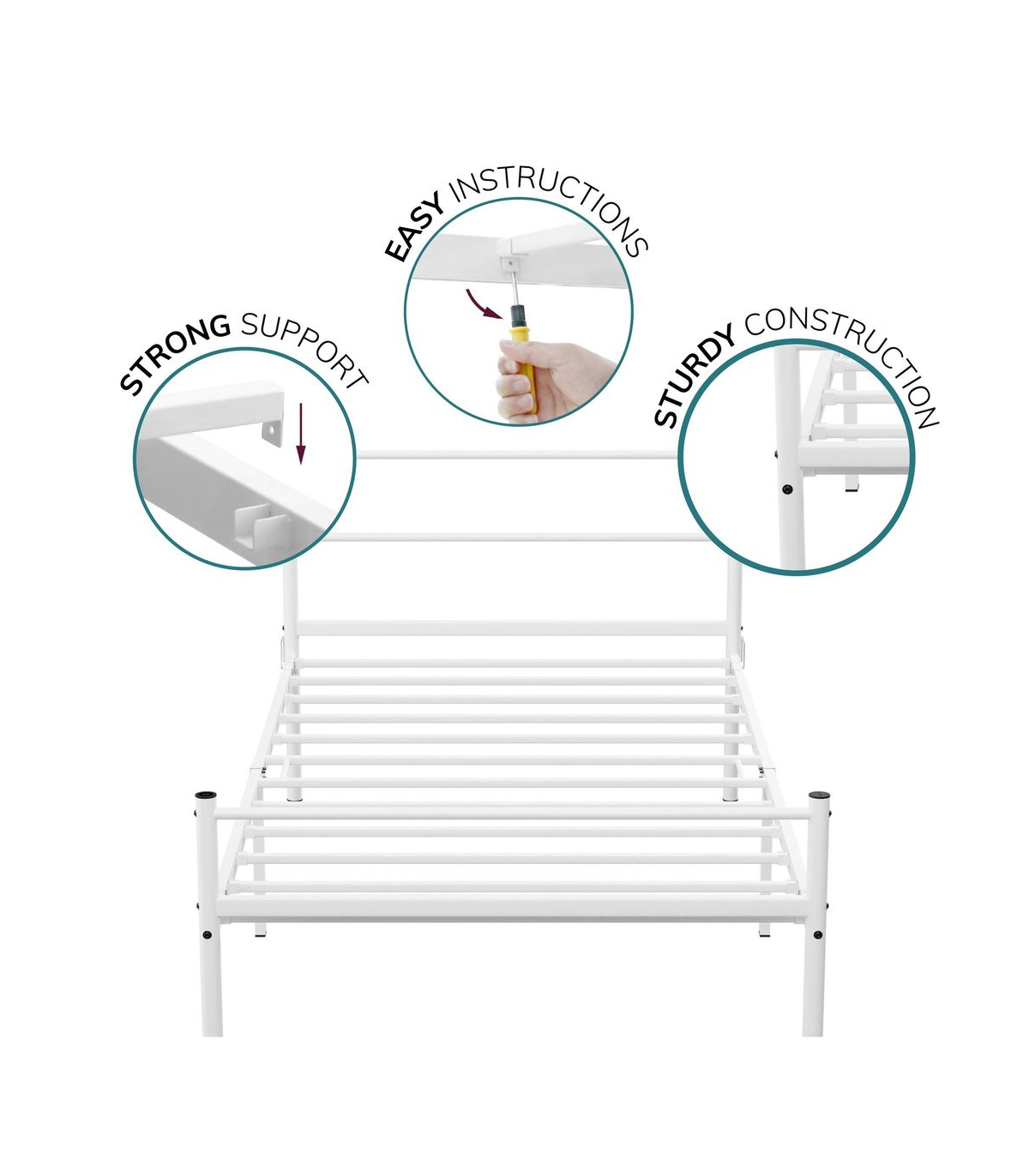 Extra Strong Single Metal Bed Frame In White - Improved