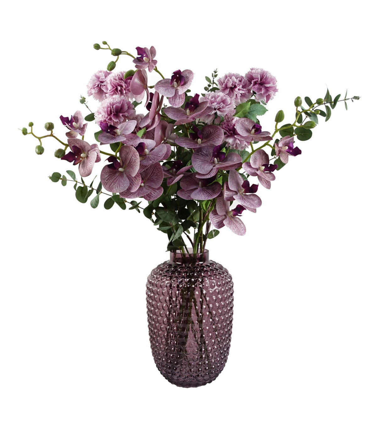 Artificial Eucalyptus foliage stem with silk leaves. Can be used to make arrangements with our other artificial flowers or as decorations on their own. Each stem measures 100cm overall height x 20cm. These are easy to cut down shorter using a pair of wire cutters if required. Some of our photos show vases to give an idea of size and possibilities for arrangement but no vases or planters are included with these ferns.