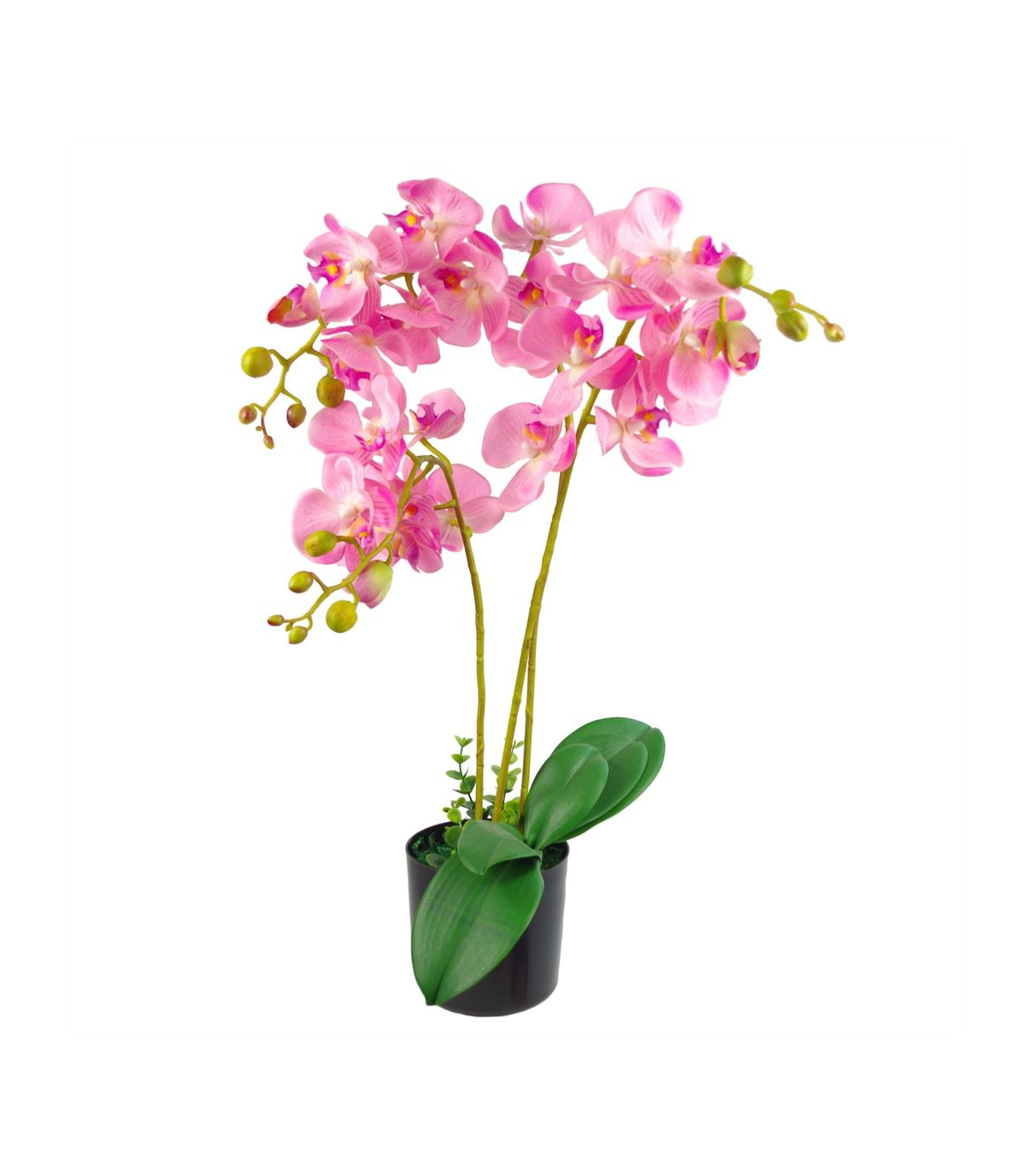 Large Artificial Orchids Display with XL Metal Bowl Planter 70x70cm