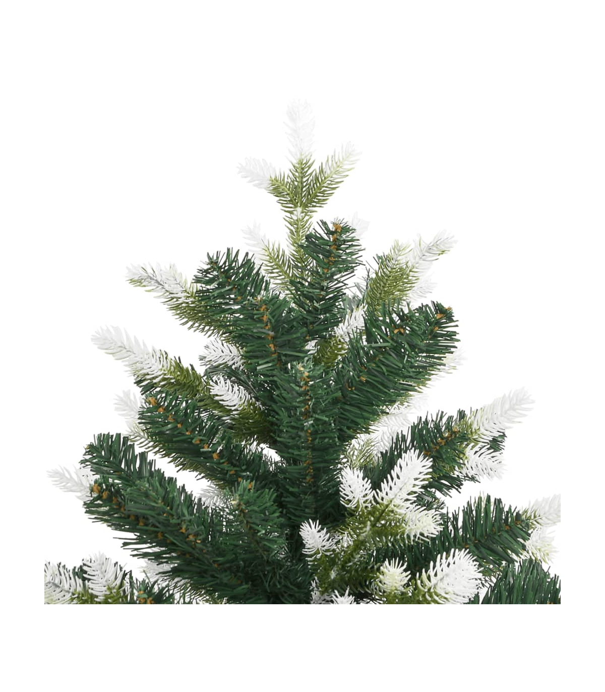 This beautiful artificial hinged Christmas tree is very lifelike in its shape and appearance and is meant to create just the right atmosphere for this Christmas. Hinged construction: The Christmas tree has a hinged construction, so the branches will automatically fold down at the right angle. This will make it much easier to put up the tree in the perfect shape and will save you time as well.Lifelike PE tips: The Christmas decoration has realistic PE tips, made by injection moulding, giving the tree a more natural appearance.Sturdy stand: The metal stand provides your artificial Christmas tree with optimal sturdiness and stability.Flocked snow design: The Xmas tree has artificial white snow on it, giving an attractive snow-flocked look.Economical choice: You can reuse the Christmas ornament every year, which is a cost-effective option compared to getting a real tree. Good to know:We recommend setting aside 30-45 minutes after assembly to properly shape the tree by peeling back the branches and pulling the tips apart to give the branches a more full-bodied look.