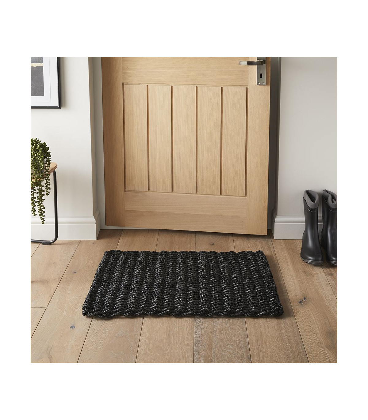 A beautiful and highly durable doormat for indoor or sheltered outdoor use. The Bestselling Didsbury Rope design is made from biodegradable, tough, twisted polypropylene cord developed for the marine industry. Designed with a raised weave structure for scraping mud. This product is mildew-resistant, free-draining, reversible, and easy to clean. When new and before weathering, Didsbury Rope mats have a surface sheen. During this time, place securely on a non-slip and non-polished surface to aid slip resistance