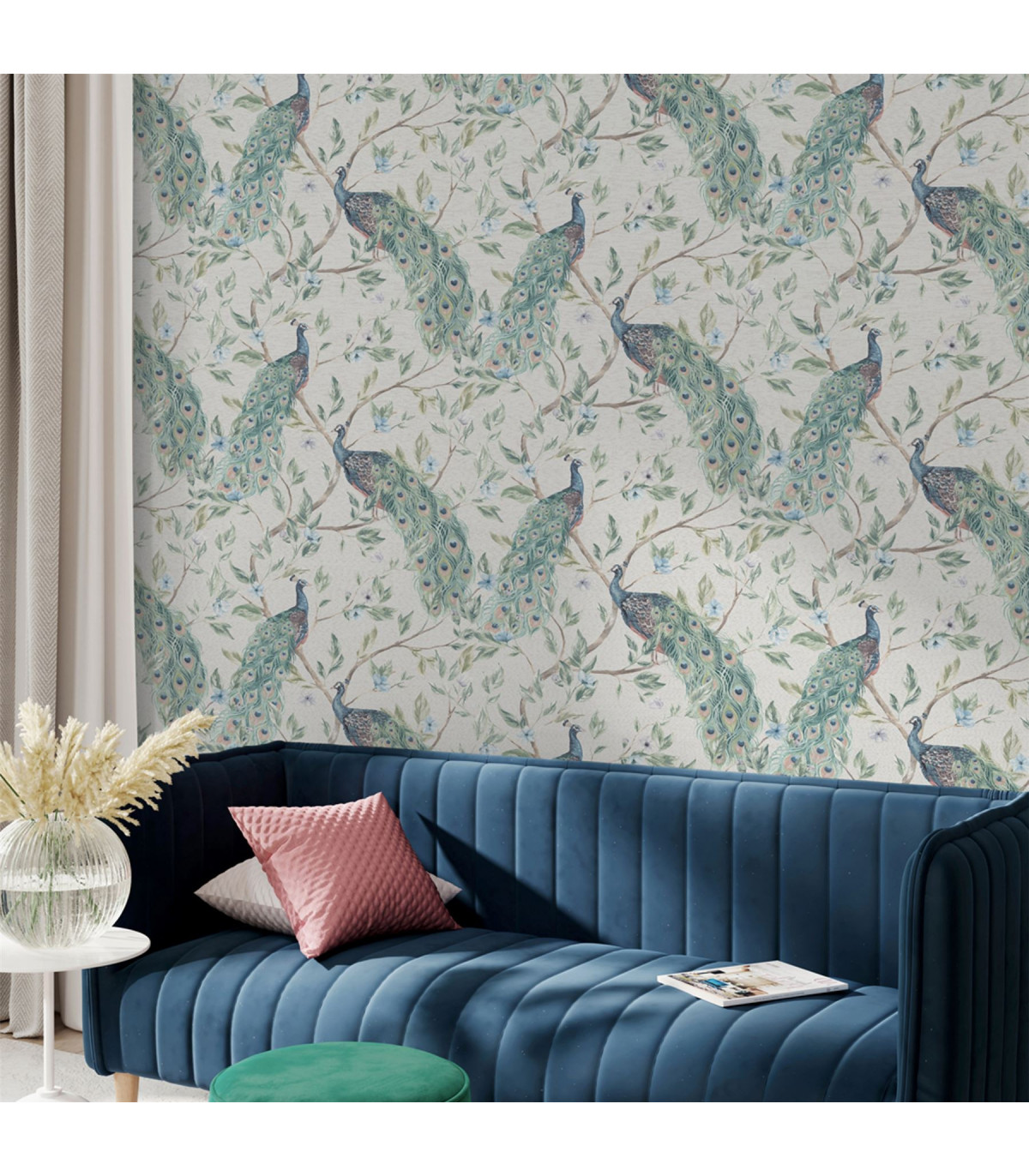 Classy and ornate design, Keeka Bird features elegant peacocks with delicately designed feathers, intertwined with timeless florals. The wallpaper design is set on a fashionable neutral cream and the peacocks have metallic highlights to really lift the design. A great wallpaper that will look perfect as a feature wall or on all four walls, hung in any room it will surely make a statement. Hanging Method: Paste the Paper Pattern Match: Off set 26.5cm Pattern Repeat: 53cm
