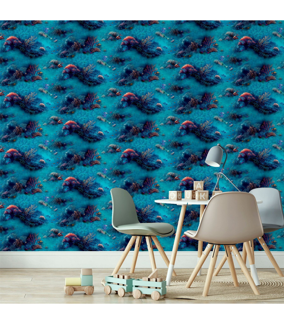 Dive into a great design with our Under the Sea wallpaper! This fantasy-style wallpaper is perfect for your kids room and features colourful fish and intricate corals in tropical colour tones on a blue background. Hanging Method: Paste the Paper Pattern Match: Off Set 26.5cm Pattern Repeat: 53cm