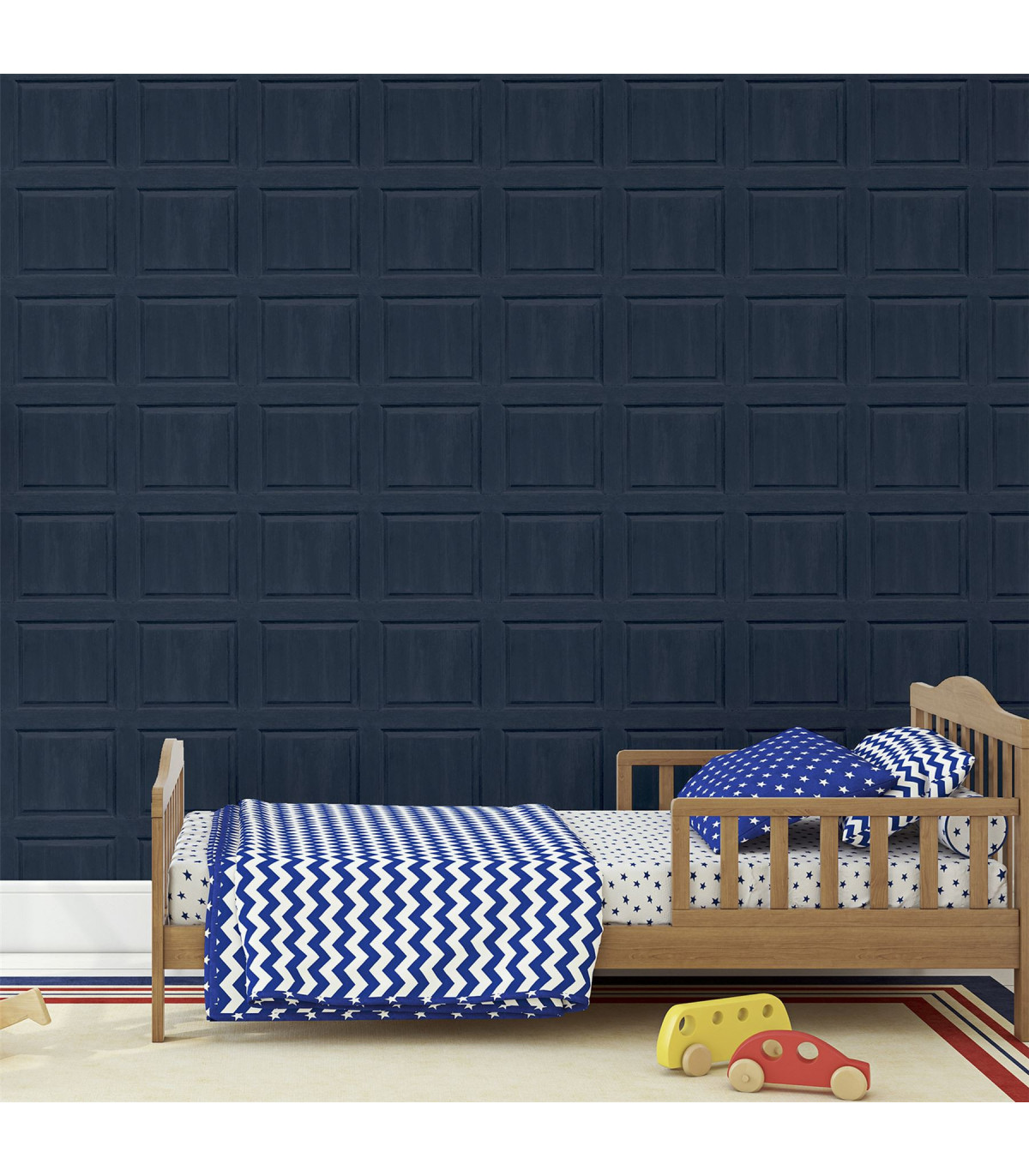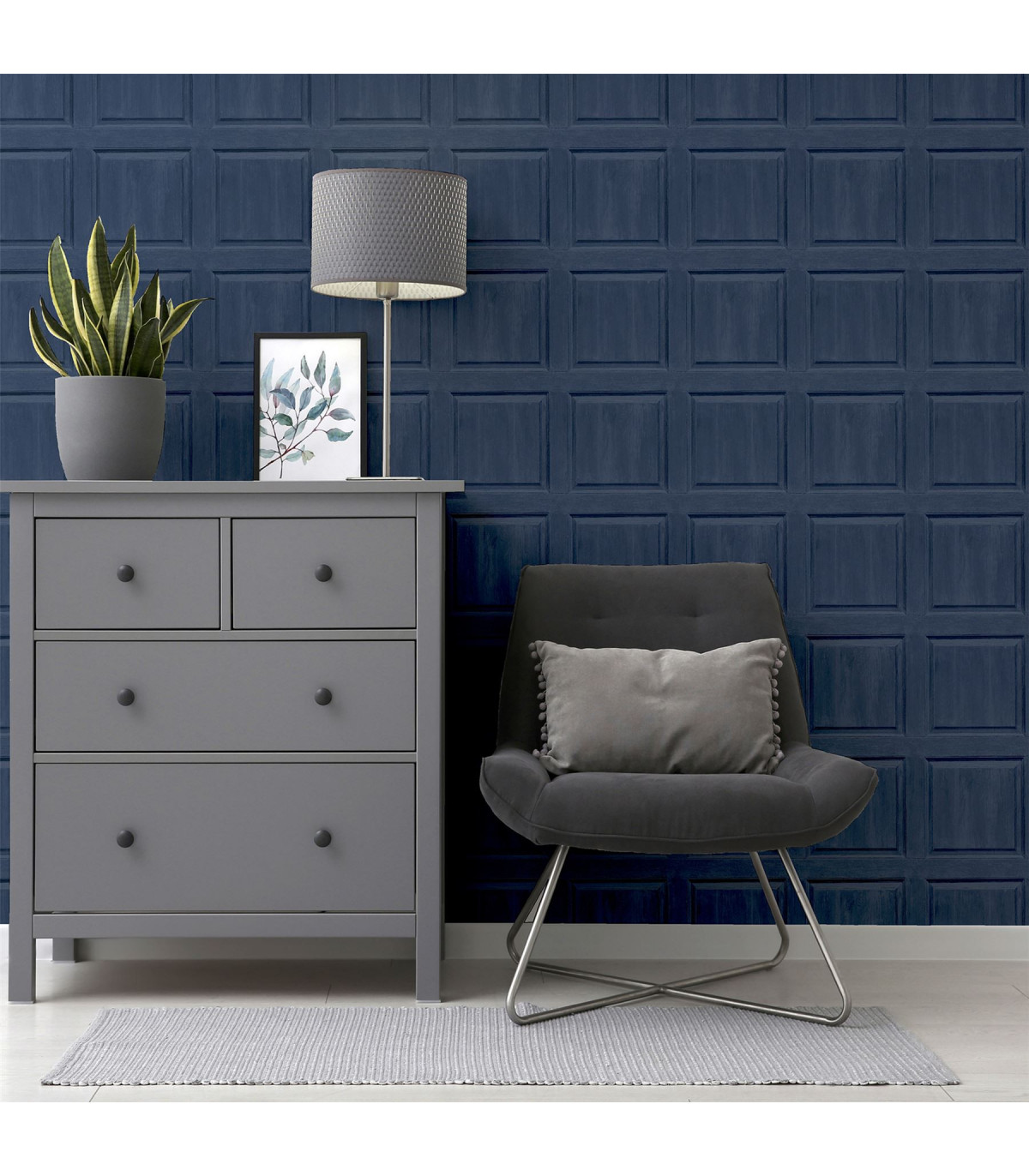 Boast a sense of opulence in your home with decorative panelling wallpaper for a classy and classic look. The faux panelling wallpaper has the added touch of visible wood grain which adds to the finished effect and the dark Navy colour is very on trend. The wallpaper is perfect for feature walls or a whole room and is suitable for most rooms except high moisture environments. Hanging Method: Paste the Paper Pattern Match: Straight Match Pattern Repeat: 53cm