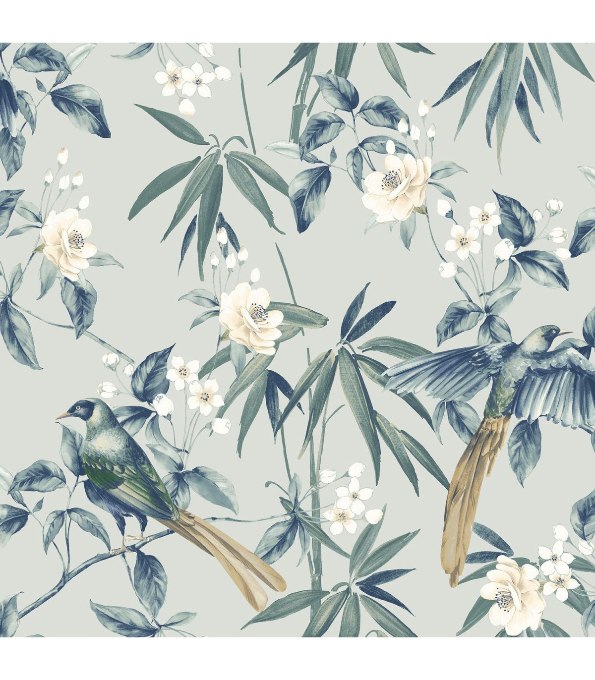Oriental Floral Birds Grey/Blue sw12