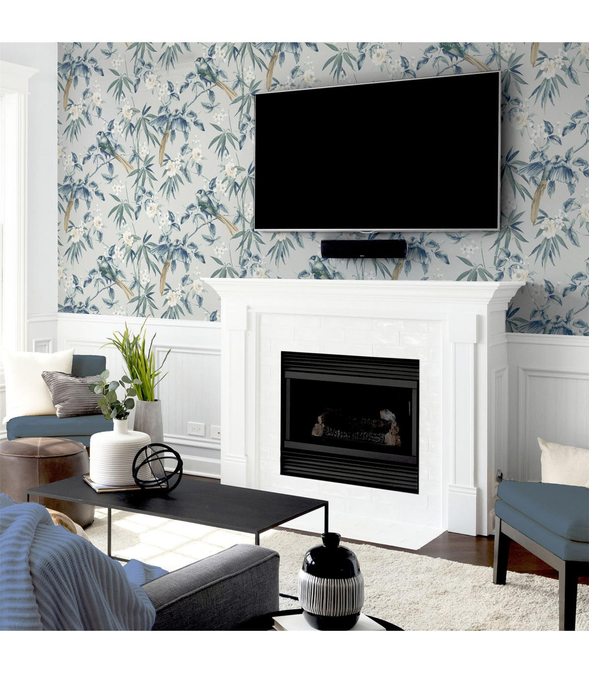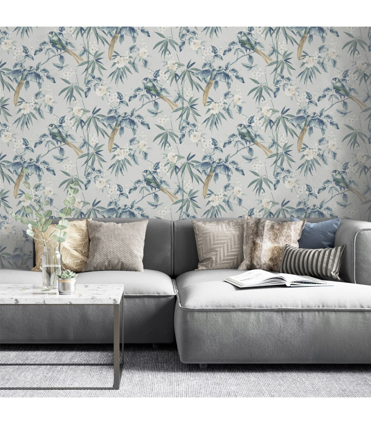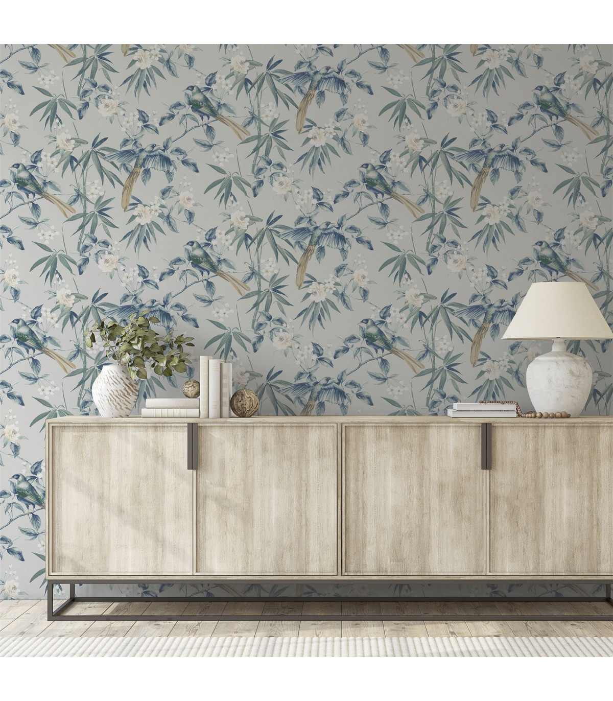 This Oriental Floral wallpaper design is the perfect combination for adding a delicate and natural look within any room of your home. This design features beautiful blossom flowers intertwined with bamboo-like plants, which has gorgeous birds perched on or in flight. A lovely wallpaper in a modern blue and grey colourway that will look great when used to decorate a whole room or to create a feature wall. Hanging Method: Paste the Paper Pattern Match: Off Set 32cm Pattern Repeat: 64cm