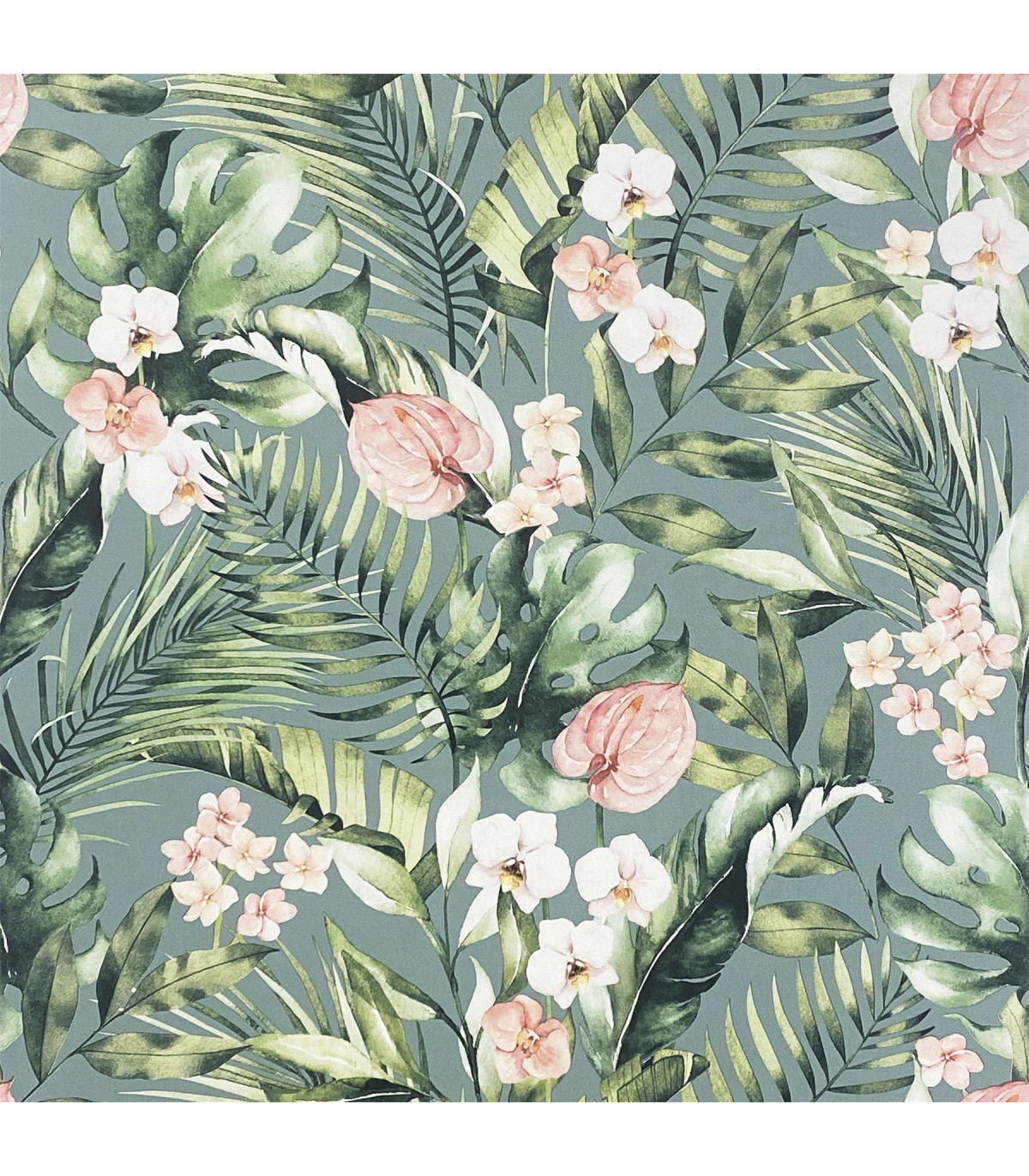 Touch up your wall with this stunnign tropical wallpaper design, the perfect option for a dramatic and contemporary interior. With a sea blue background colour, layered with pretty pink florals and gorgeous green palm leaves. This paper makes an ideal choice for a feature wall in an open plan living room or for a bedroom. Hanging Method: Paste the Paper Pattern Match: Straight Match Pattern Repeat: 53cm