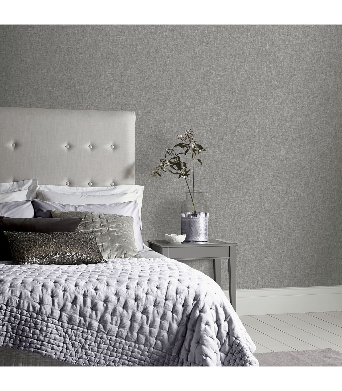 This linen-effect textured wallpaper is the perfect choice if you want to bring a room up to date in an understated way. With a subtle lustre to catch the light, it comes in an on-trend mid grey colour which is wonderfully versatile and will go with so many colours schemes. Team this paper with painted walls or a bold patterned wallpaper to suit your style. It's a great choice for papering a whole room but can also be used on a feature wall or chimney breast. Suitable for most rooms except high moisture environments, like bathrooms. Hanging Method: Paste the Paper Pattern Match: Free Match Pattern Repeat: N/A
