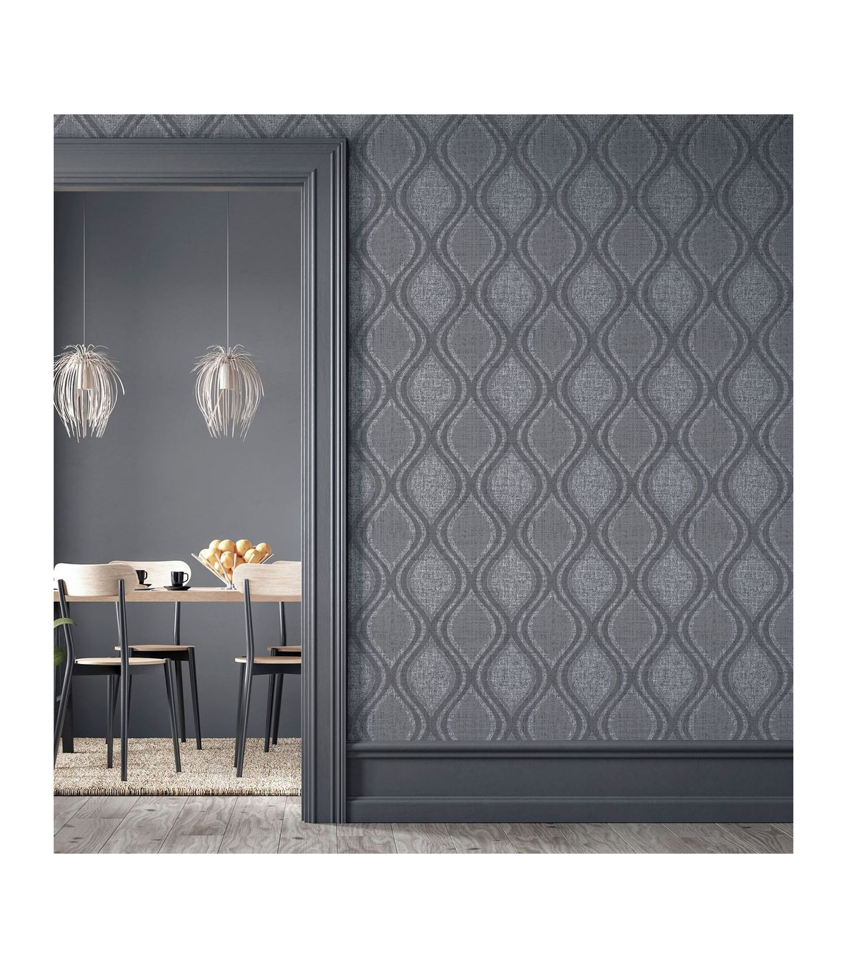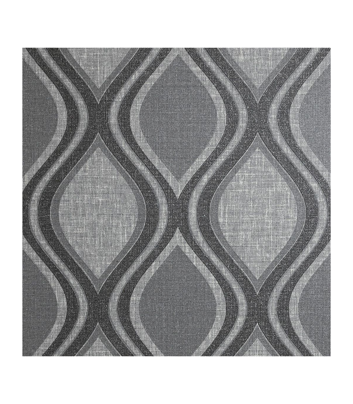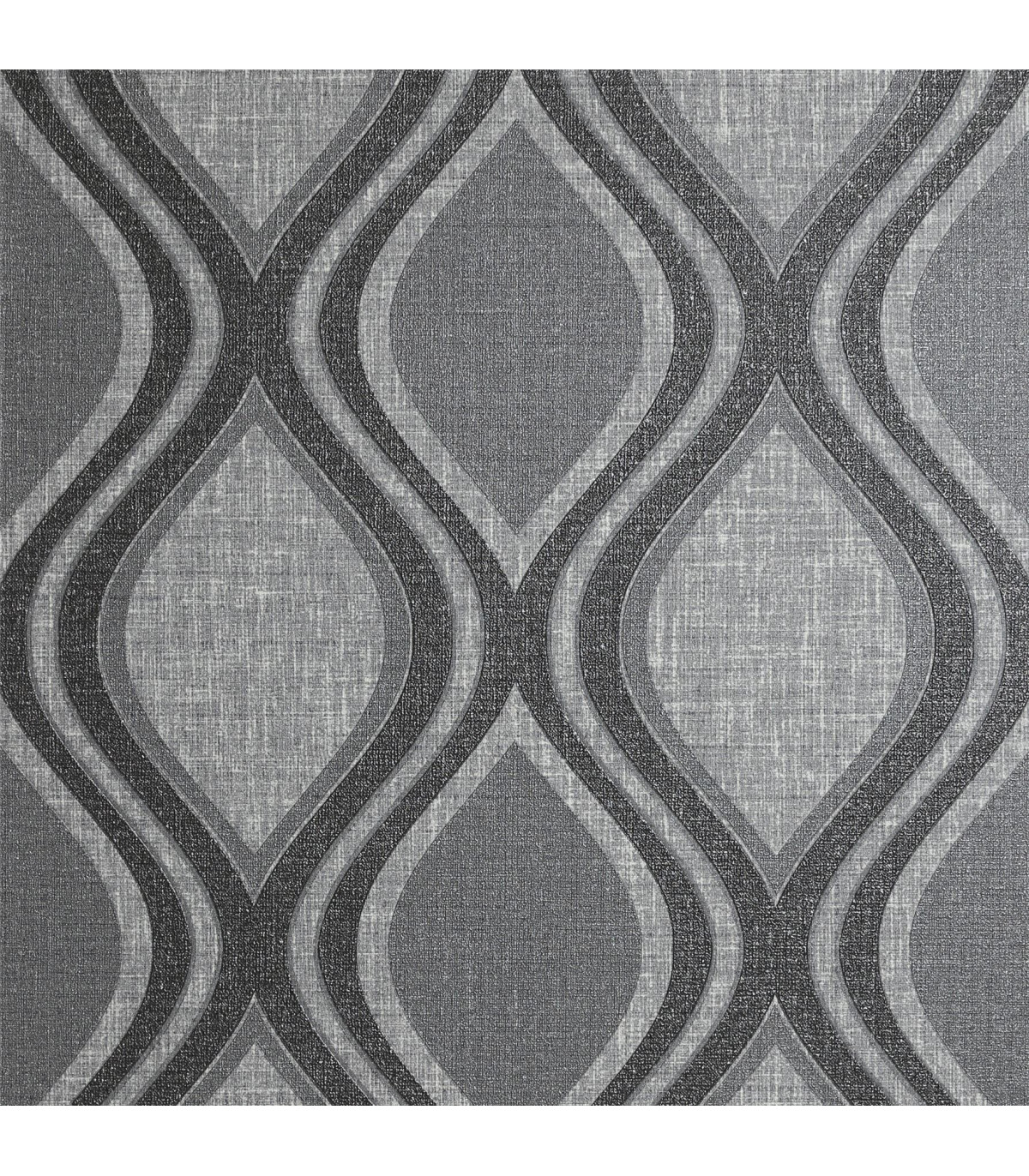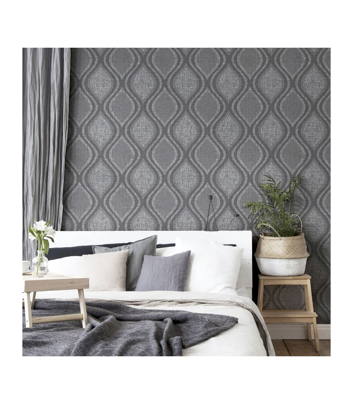 Introducing our new Curve in Charcoal, featuring a trio of greys including rich charcoals and finished with a high luxe metallic shimmer. A teardrop curve design entwines and overlaps from ceiling to floor to create a luxurious backdrop for any room in the home. Choose as a feature wall or paper the whole area for extra luxe. The Curve Collection is part of our heavy weight vinyl range which is ideal for high traffic areas entranceways as it features a heavy-duty textured finish. So be sure to create a lasting first impression and place this beautiful design in your hallway. When you're ready for a freshen up, the strippable design means you can easily peel the paper away. Hanging Method: Paste the Wall Pattern Match: Straight Match Pattern Repeat: 64cm