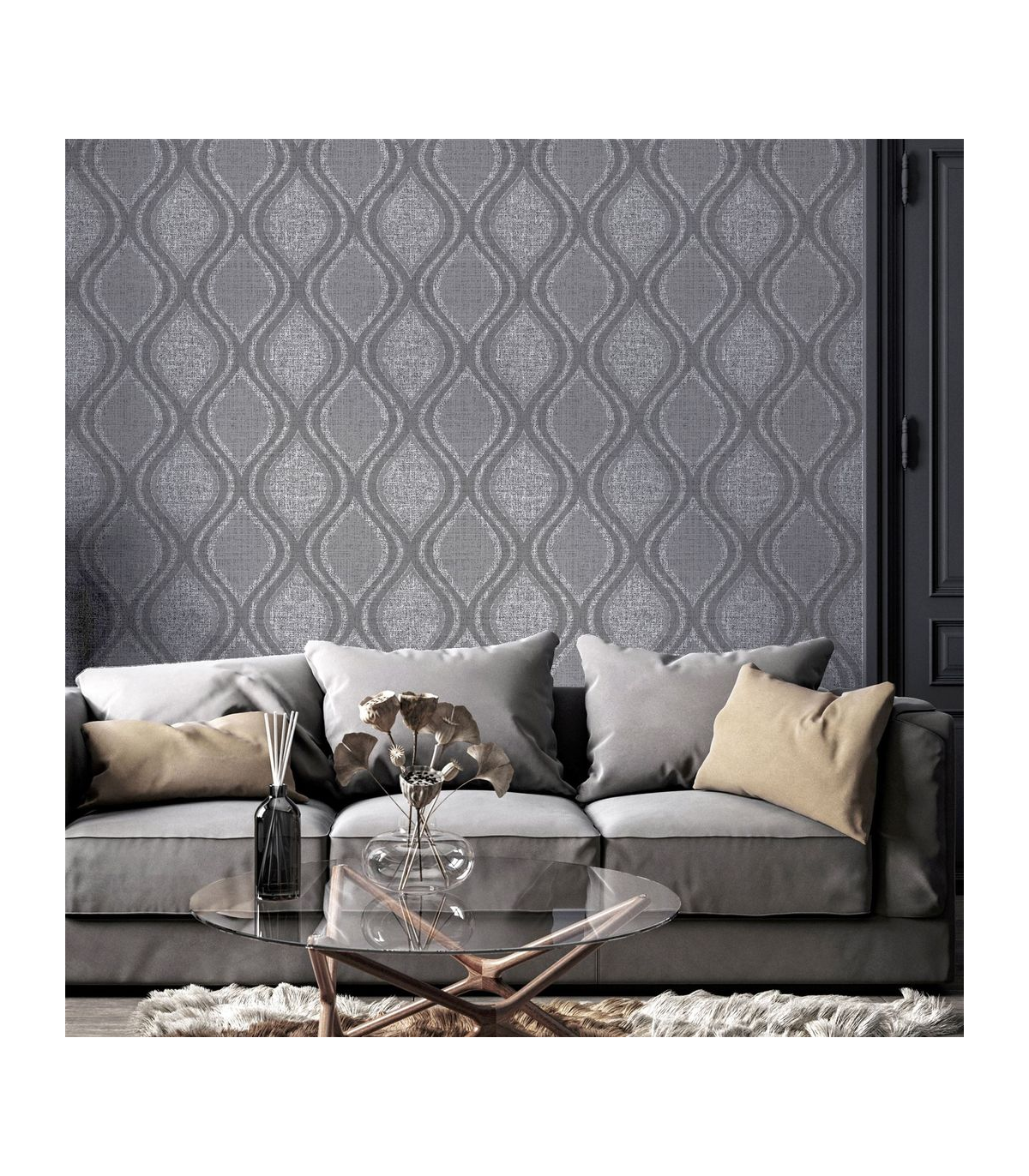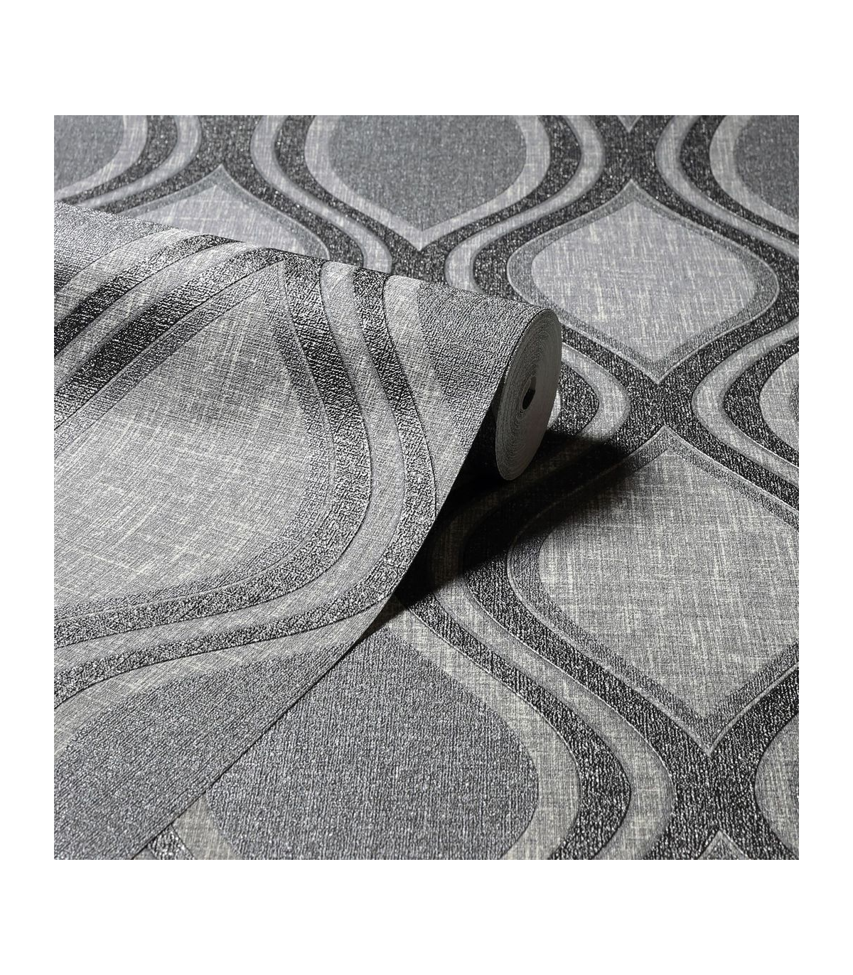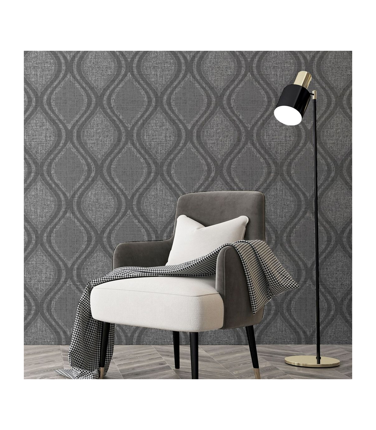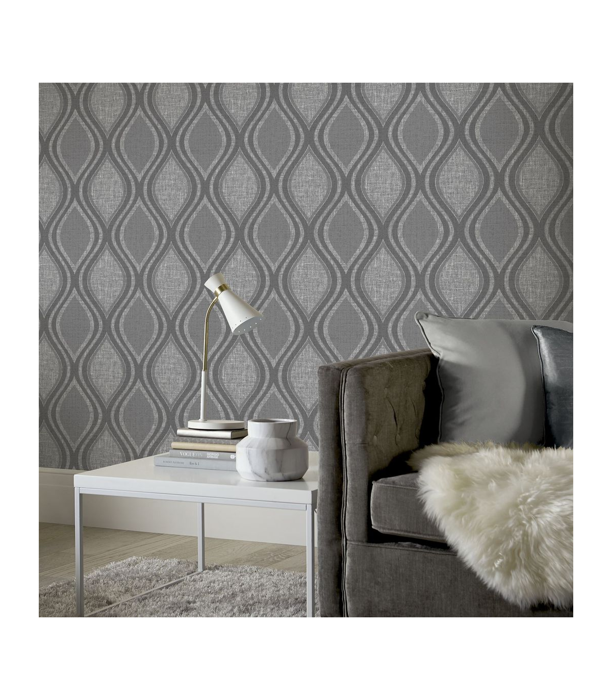 Introducing our new Curve in Charcoal, featuring a trio of greys including rich charcoals and finished with a high luxe metallic shimmer. A teardrop curve design entwines and overlaps from ceiling to floor to create a luxurious backdrop for any room in the home. Choose as a feature wall or paper the whole area for extra luxe. The Curve Collection is part of our heavy weight vinyl range which is ideal for high traffic areas entranceways as it features a heavy-duty textured finish. So be sure to create a lasting first impression and place this beautiful design in your hallway. When you're ready for a freshen up, the strippable design means you can easily peel the paper away. Hanging Method: Paste the Wall Pattern Match: Straight Match Pattern Repeat: 64cm