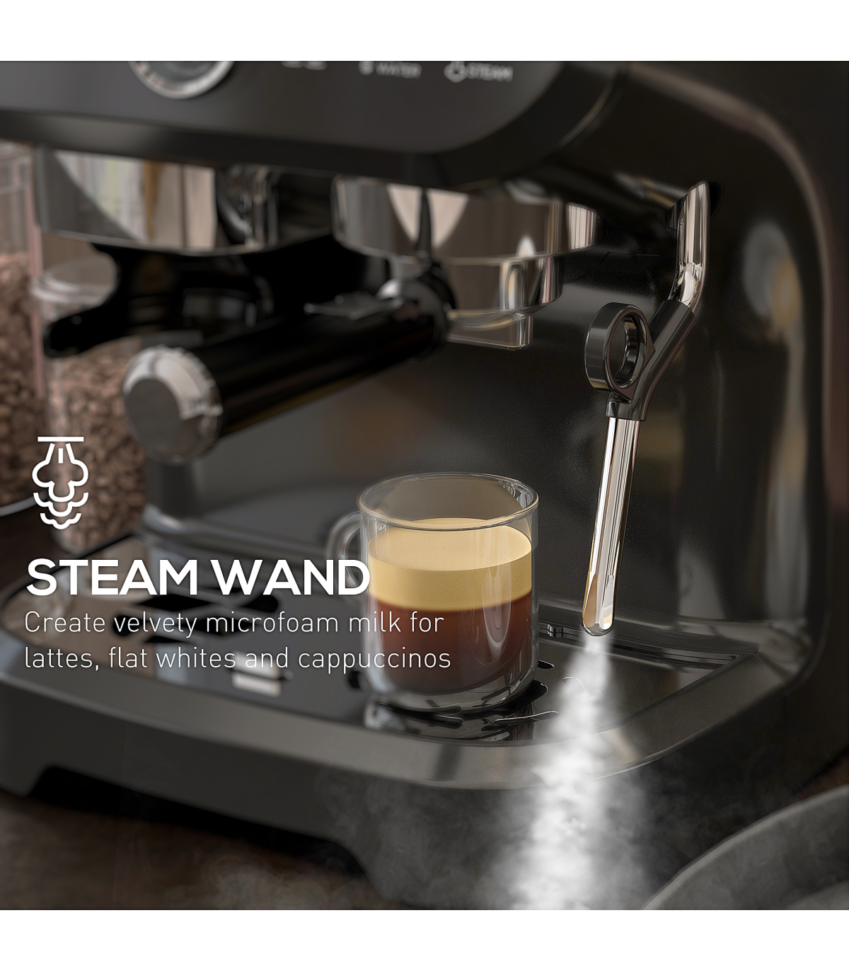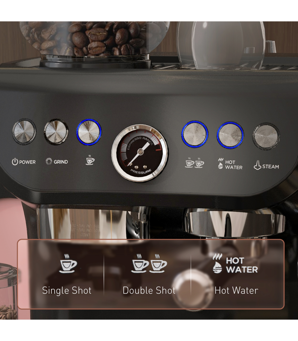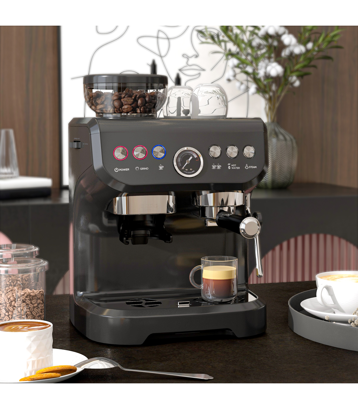Espresso Coffee Machine w/ Integrated Bean Grinder & Steam Wand 15 Bar Pressure