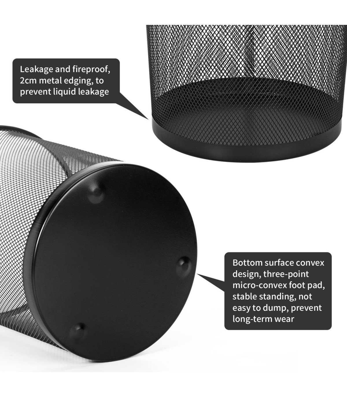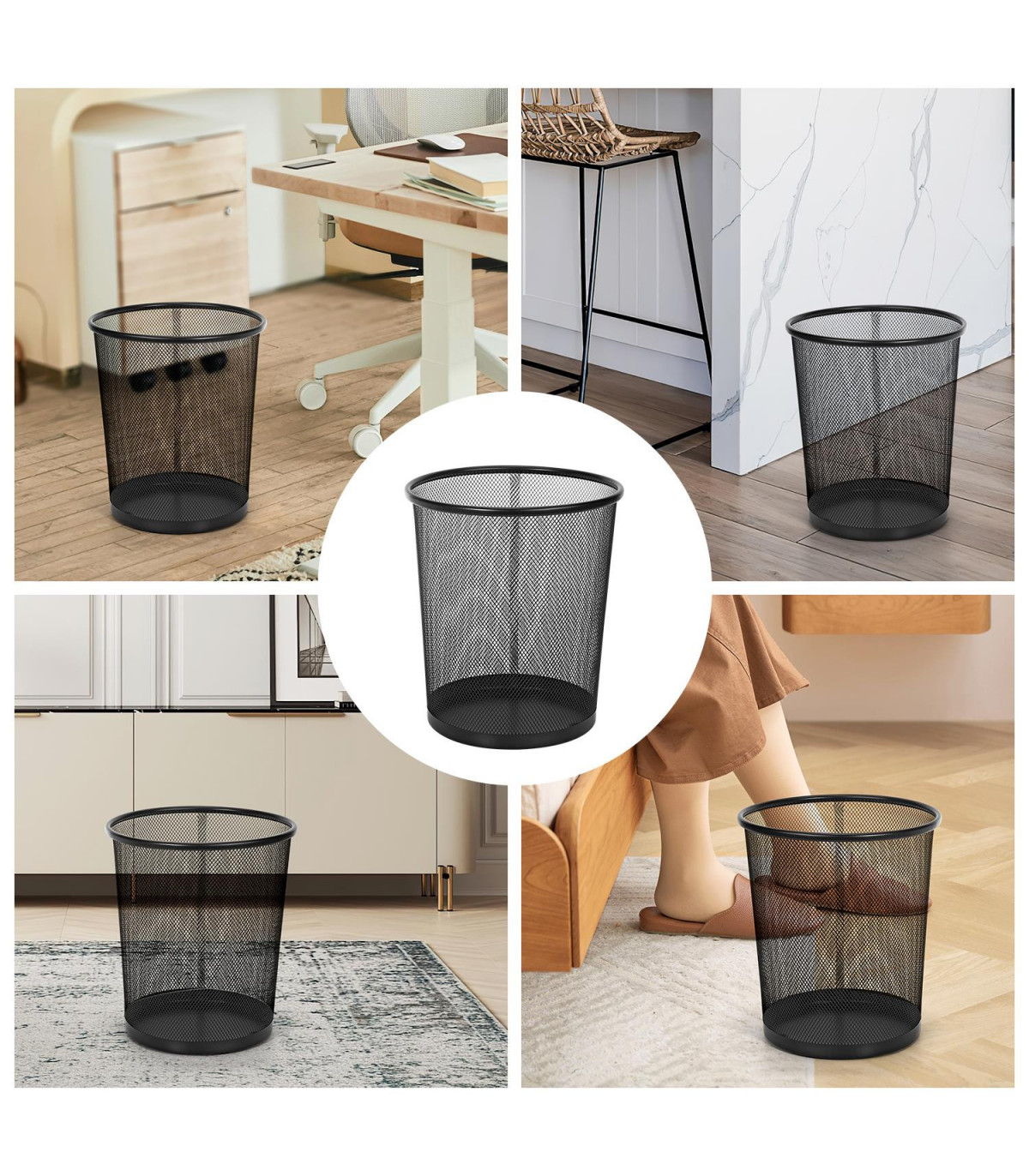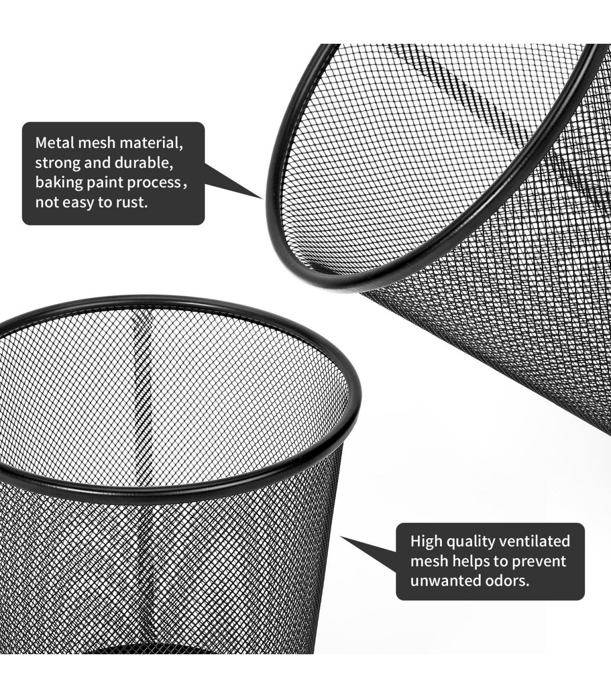 MINIMALIST DESIGN: The Vinsani Round Mesh Trash Can comes in a 2-pack, offering a minimalist, stylish, and modern design. These lightweight metal waste baskets are perfect for various settings, including offices, dorm rooms, bedrooms, kitchens, living roo