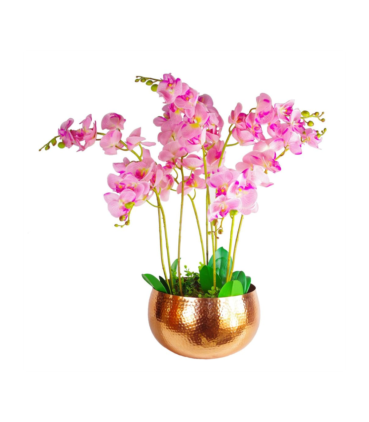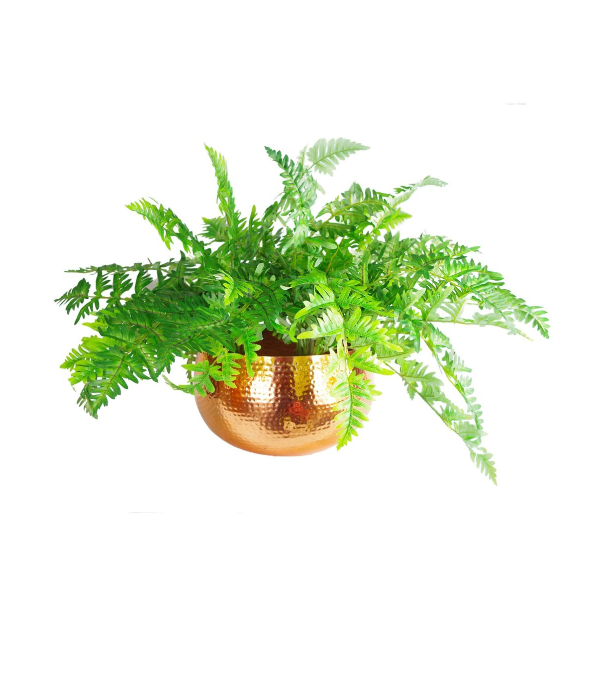 This exquisite metal planter boasts dimensions of 32cm in width and 20cm in height. Crafted from metal with a stunning hammered finish, its inner diameter of 30cm ensures a perfect fit for any plants, making it a magnificent centerpiece when adorned with multiple plants. Handmade with a rustic finish, each planter showcases intentional minor imperfections, adding to its charm and uniqueness. Due to the handmade nature, slight variations may be present from one planter to another, making each piece slightly distinct. The price indicated is for the planter alone, however, we have included images displaying how it would appear with a selection of our plants to provide a sense of scale (plants featured are available for purchase separately). Available in an array of colors and sizes, this style of planter can also be acquired with a smooth or curved top edge to suit your preference. Designed for indoor use exclusively.