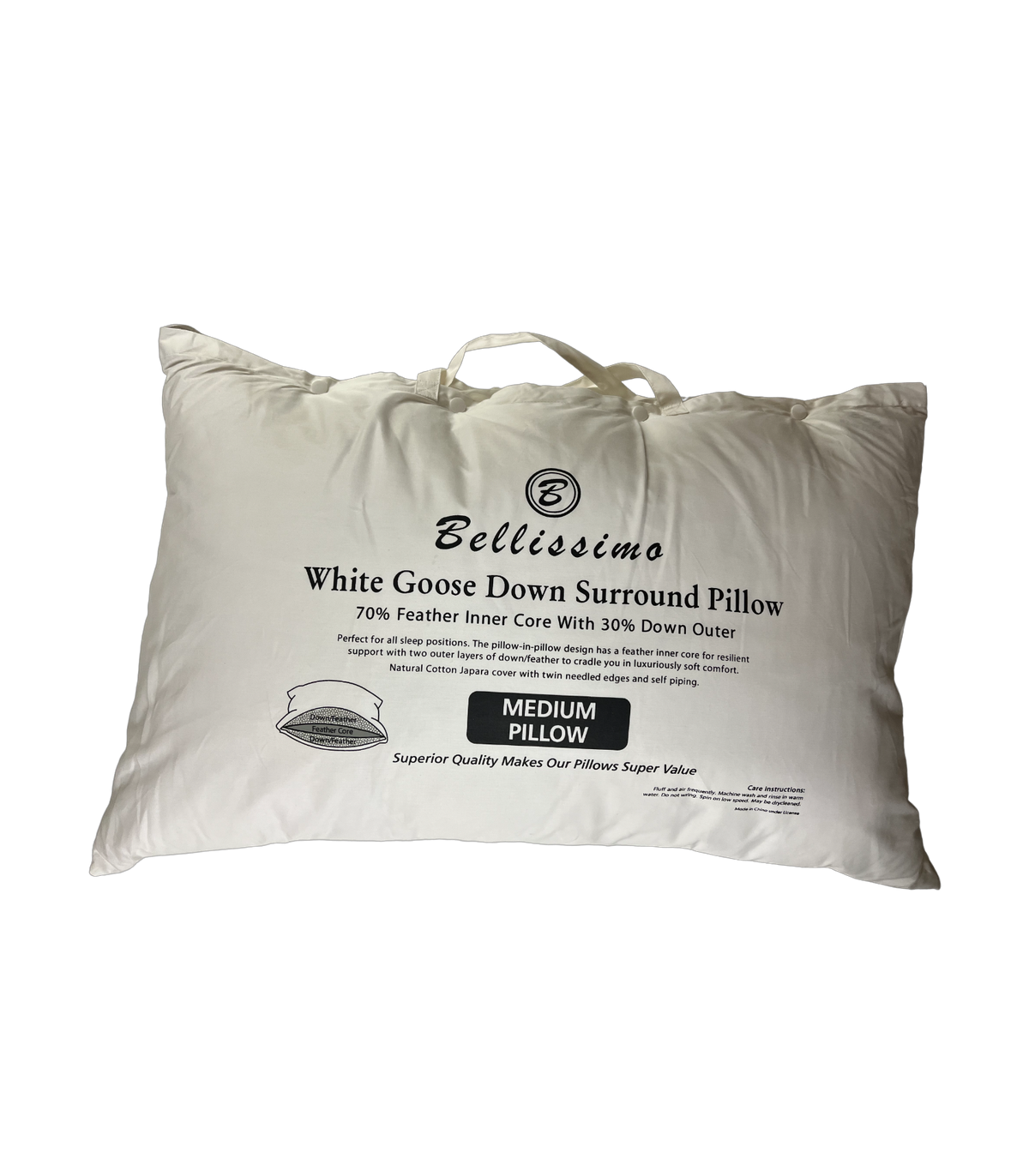 A cotton cased pillow which has a firmer centre of feather sorrounded by a softer down outer.