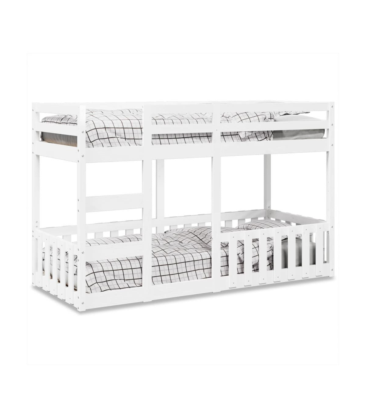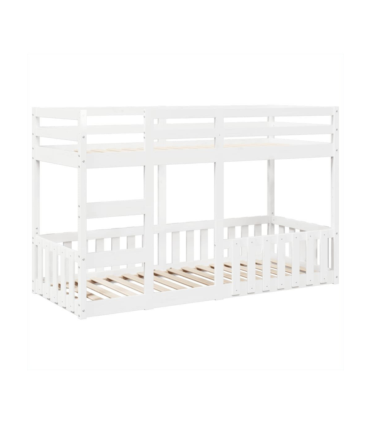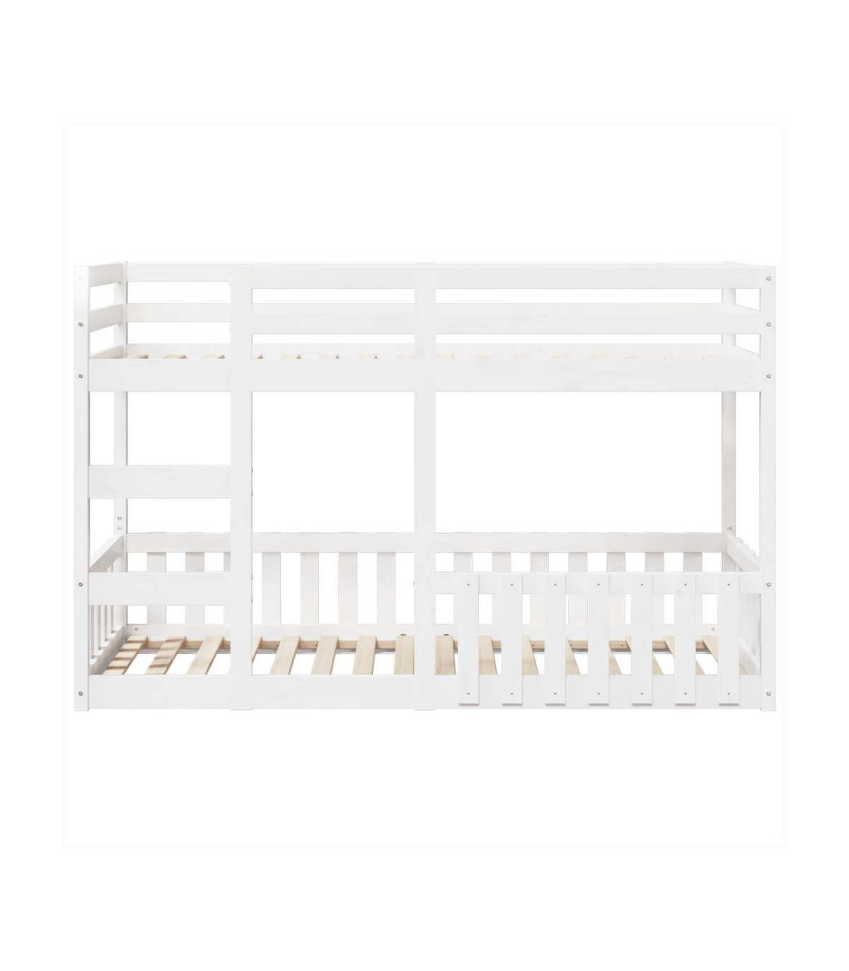 This bunk bed frame is a space-saving solution with two beds in one, making it ideal for accommodating guests, sleepovers, and families with multiple children. Stable and long-lasting frame: Solid pinewood is known for its strength and durability. Its straight grains and distinctive knots contribute to its rustic charm. Maximise space utilisation: This bunk bed frame cleverly combines two single beds into one, offering a space-saving solution for accommodating guests, sleepovers, and families with multiple children. Easy to climb up and down: This bed frame features a built-in ladder, providing convenient access for users to climb up and down. Guardrails for enhanced safety: This bed frame is equipped with guardrails to prevent you from falling out of bed while sleeping. Low floor bed: The bed frame below is specifically designed to be low to the ground, making it safer and more accessible for your child to move around and get in and out of bed independently. Warning: To prevent it from tipping over, this product must be used with the provided wall attachment device. Good to know: The mattresses are not included with this bed. We do offer a various selection of mattresses. You can check our shop for a matching mattress. Screws and plugs for inside the wall are not included. We advise to find and use screws and plugs suitable specifically for your walls. If you're not sure, you can consult with a professional. Please read and follow each step of the instructions.