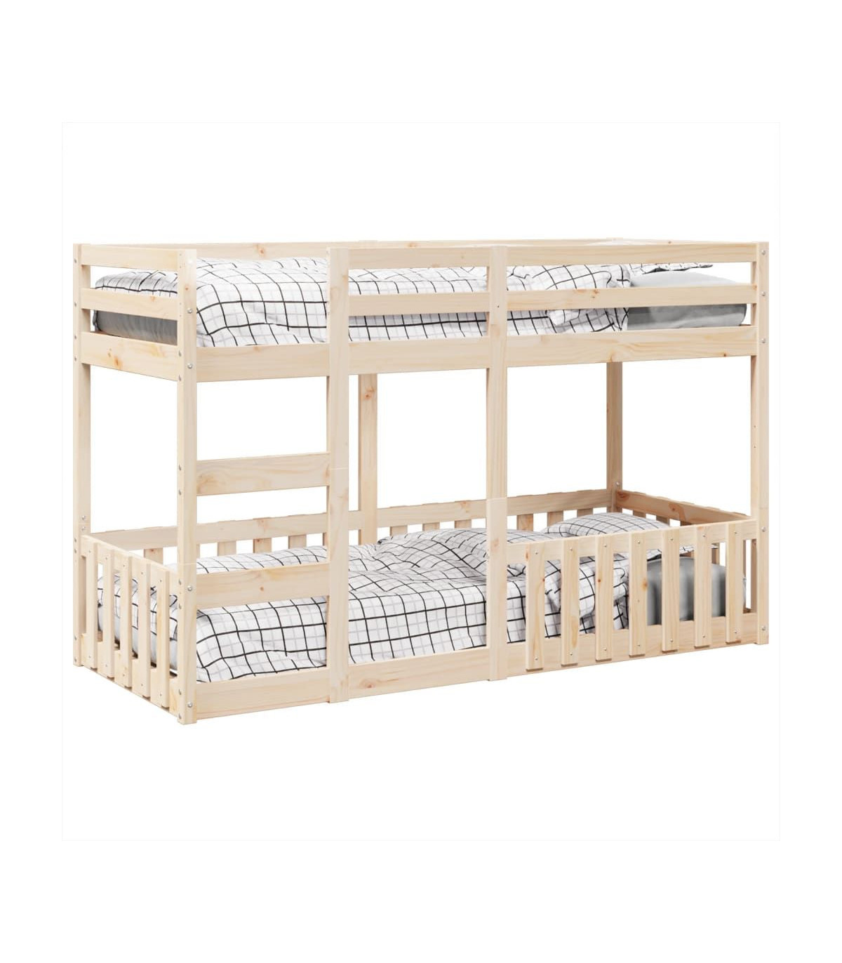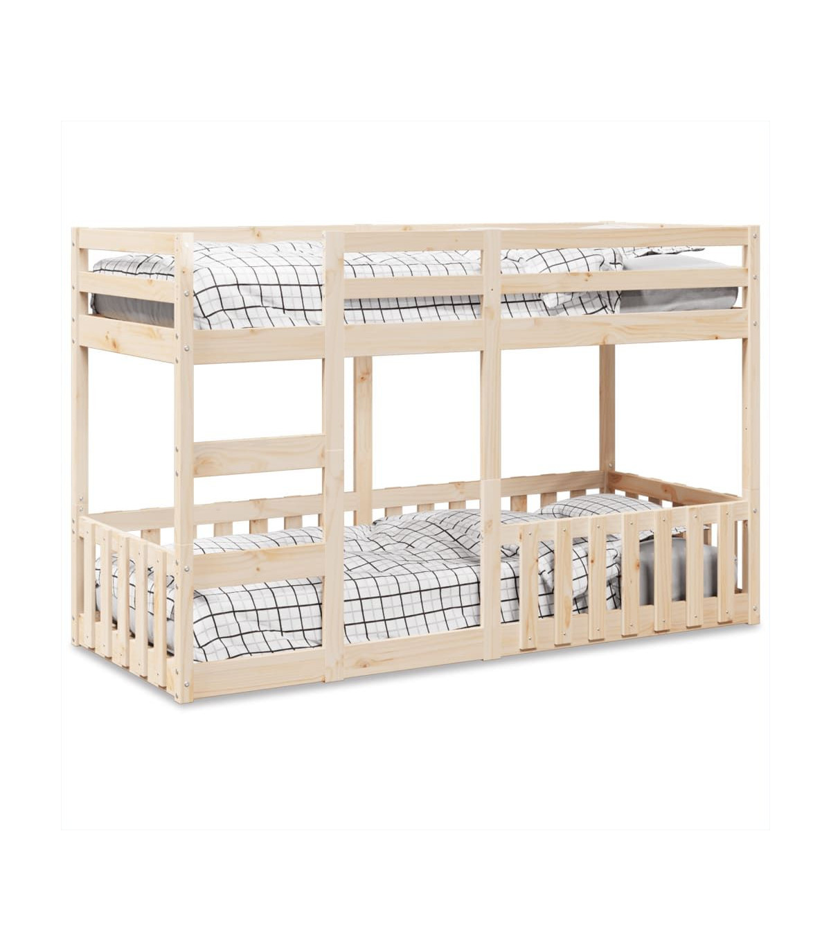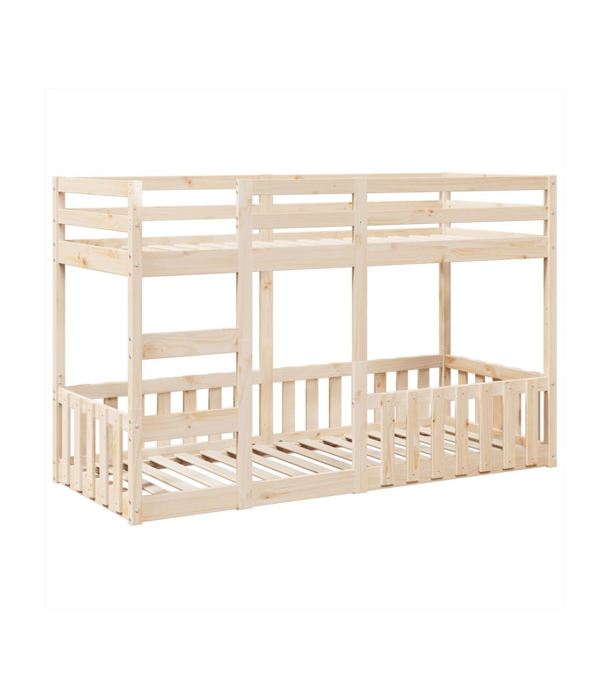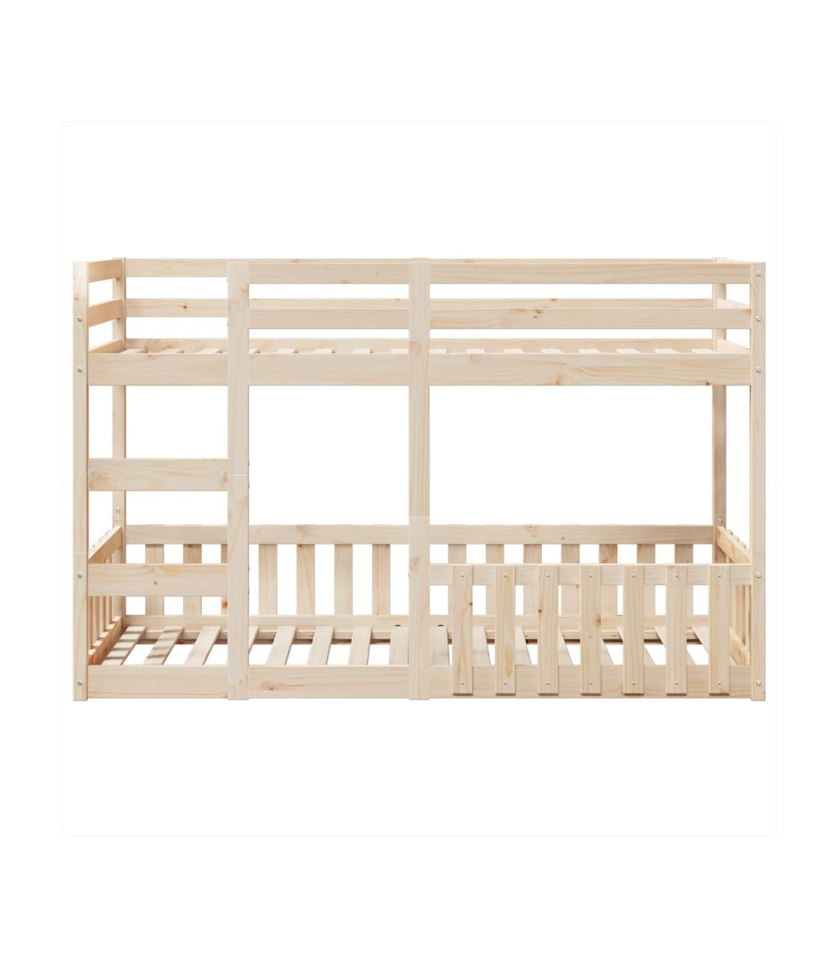 This bunk bed frame is a space-saving solution with two beds in one, making it ideal for accommodating guests, sleepovers, and families with multiple children. Stable and long-lasting frame: Solid pinewood is known for its strength and durability. Its straight grains and distinctive knots contribute to its rustic charm. Maximise space utilisation: This bunk bed frame cleverly combines two single beds into one, offering a space-saving solution for accommodating guests, sleepovers, and families with multiple children. Easy to climb up and down: This bed frame features a built-in ladder, providing convenient access for users to climb up and down. Guardrails for enhanced safety: This bed frame is equipped with guardrails to prevent you from falling out of bed while sleeping. Low floor bed: The bed frame below is specifically designed to be low to the ground, making it safer and more accessible for your child to move around and get in and out of bed independently. Warning: To prevent it from tipping over, this product must be used with the provided wall attachment device. Good to know: The mattresses are not included with this bed. We do offer a various selection of mattresses. You can check our shop for a matching mattress. Screws and plugs for inside the wall are not included. We advise to find and use screws and plugs suitable specifically for your walls. If you're not sure, you can consult with a professional. Please read and follow each step of the instructions.