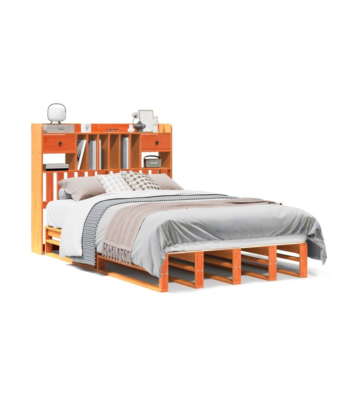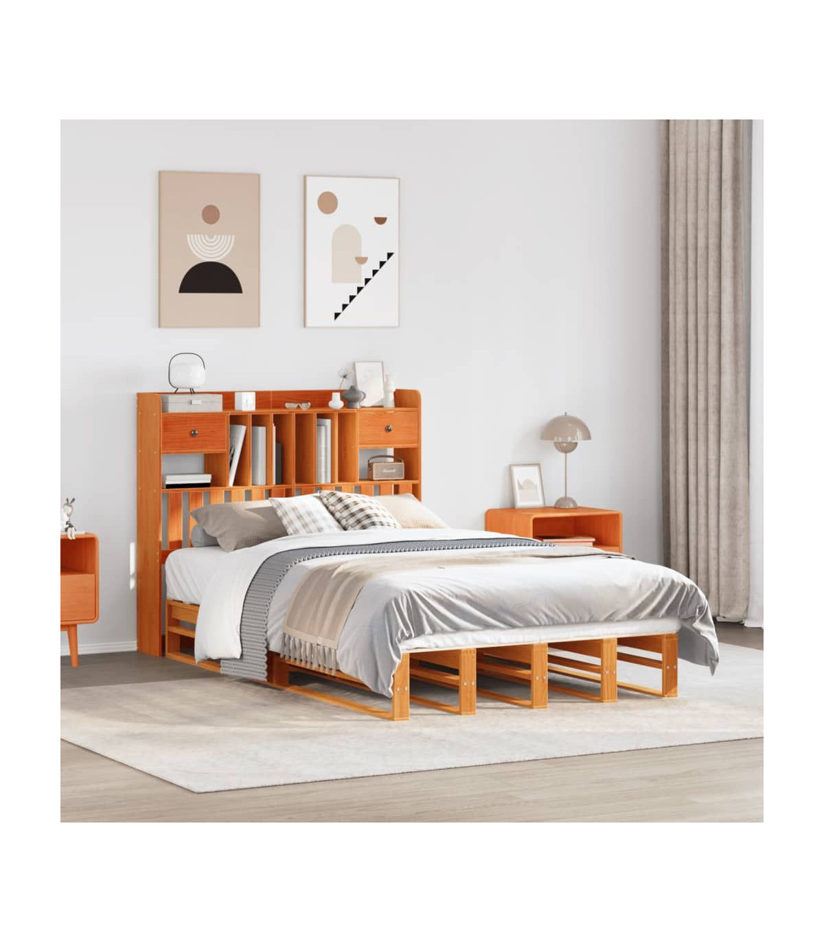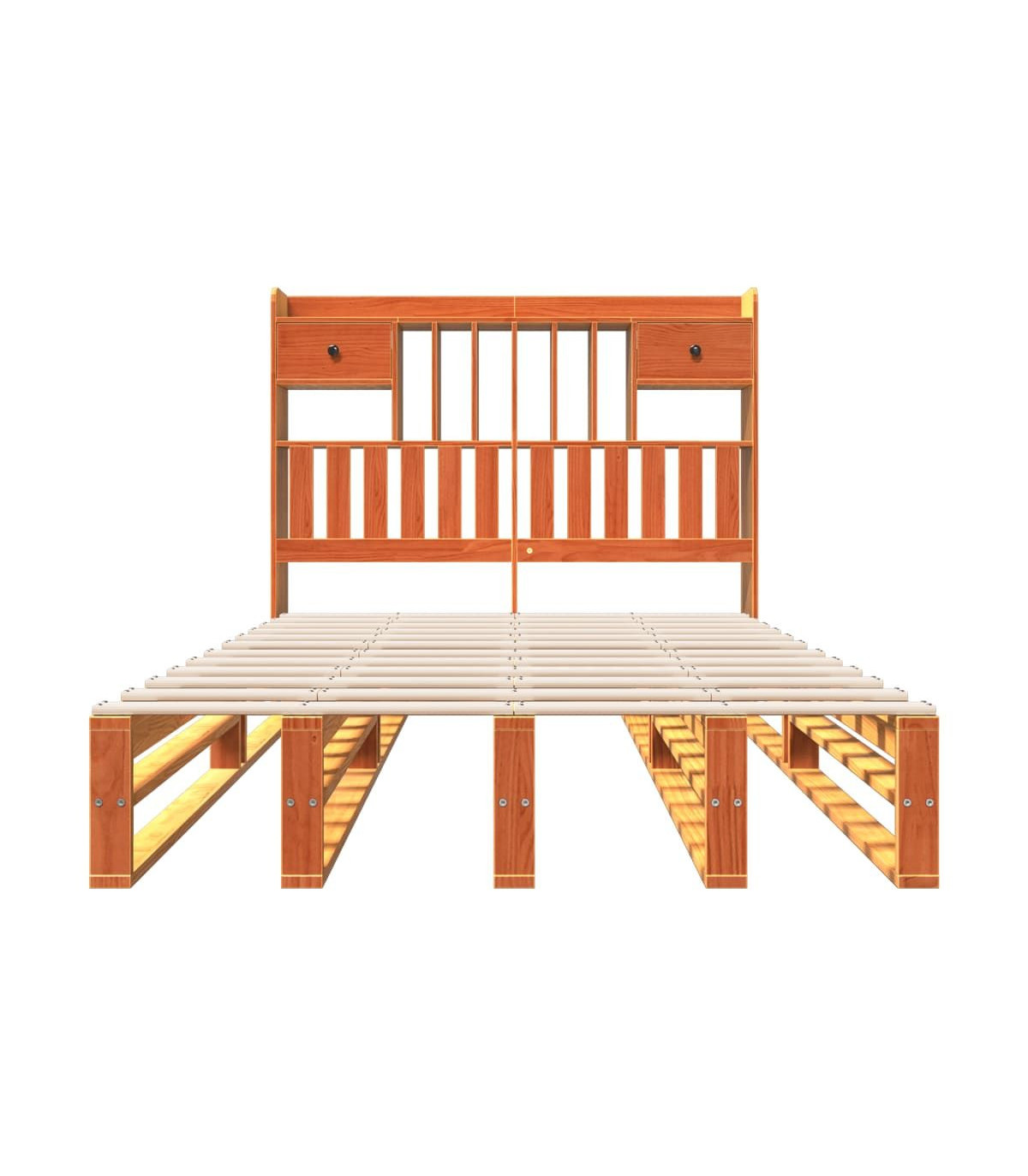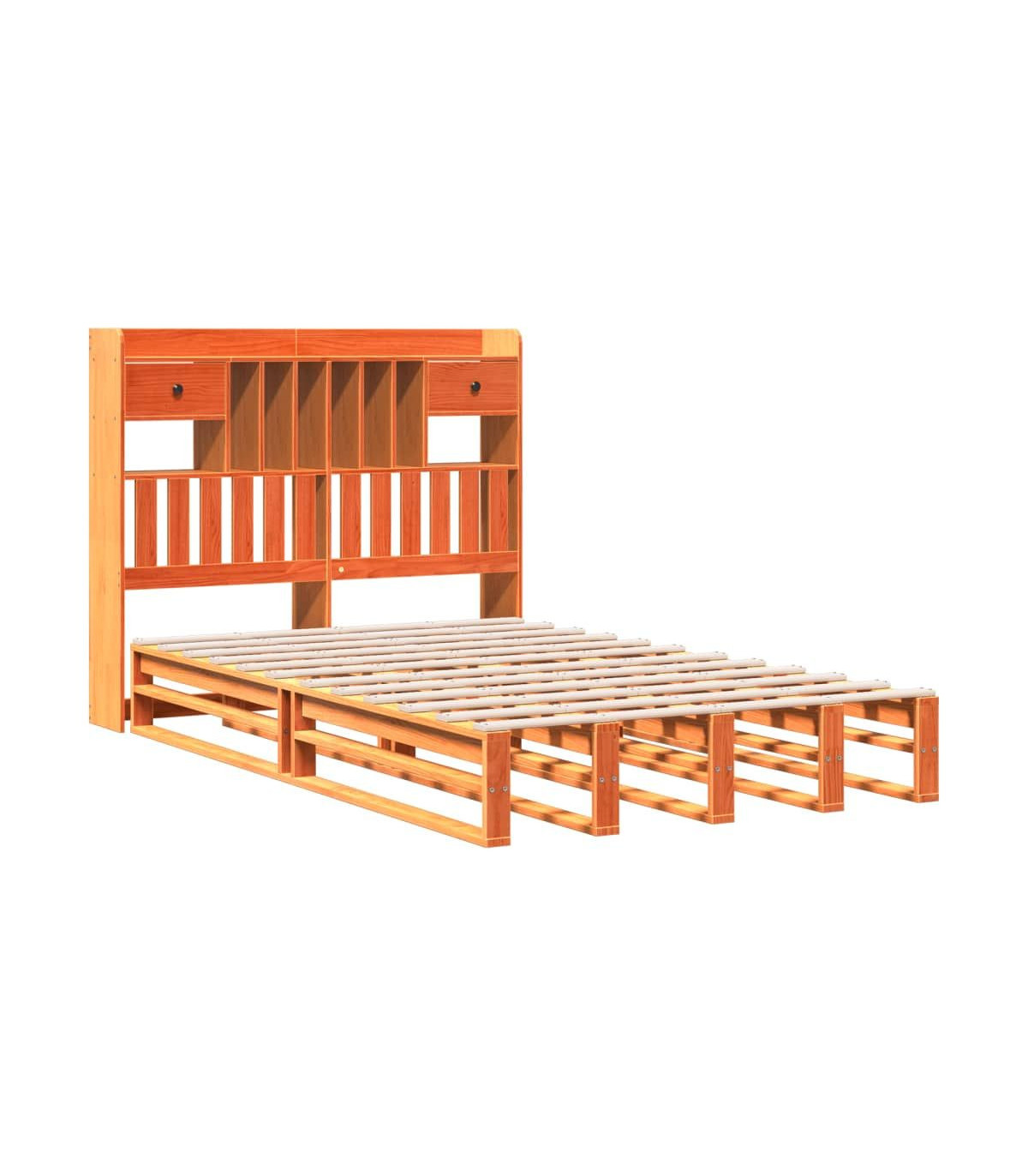 vidaXL Bookcase Bed without Mattress Wax Brown 135x190 cm Double Solid Wood Pine