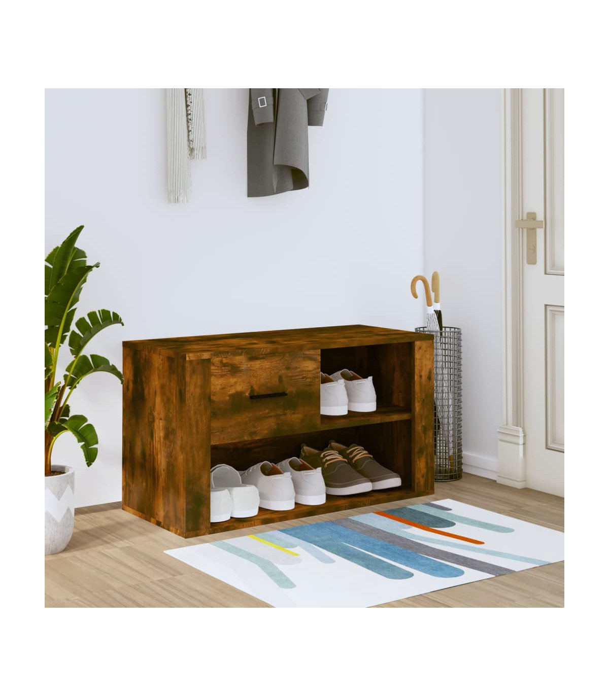 Shoe Cabinet Smoked Oak 80x35x45 cm Engineered Wood
