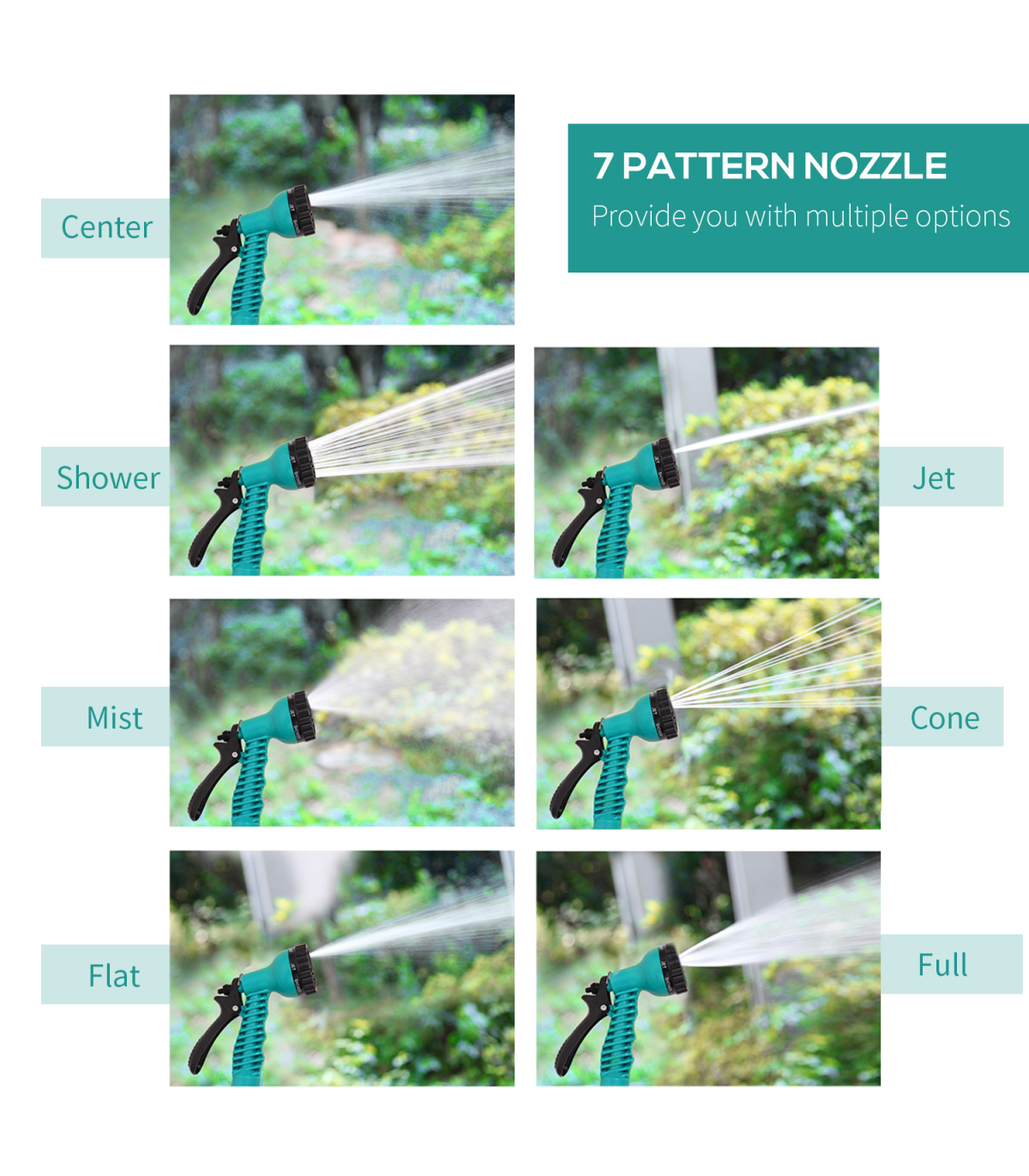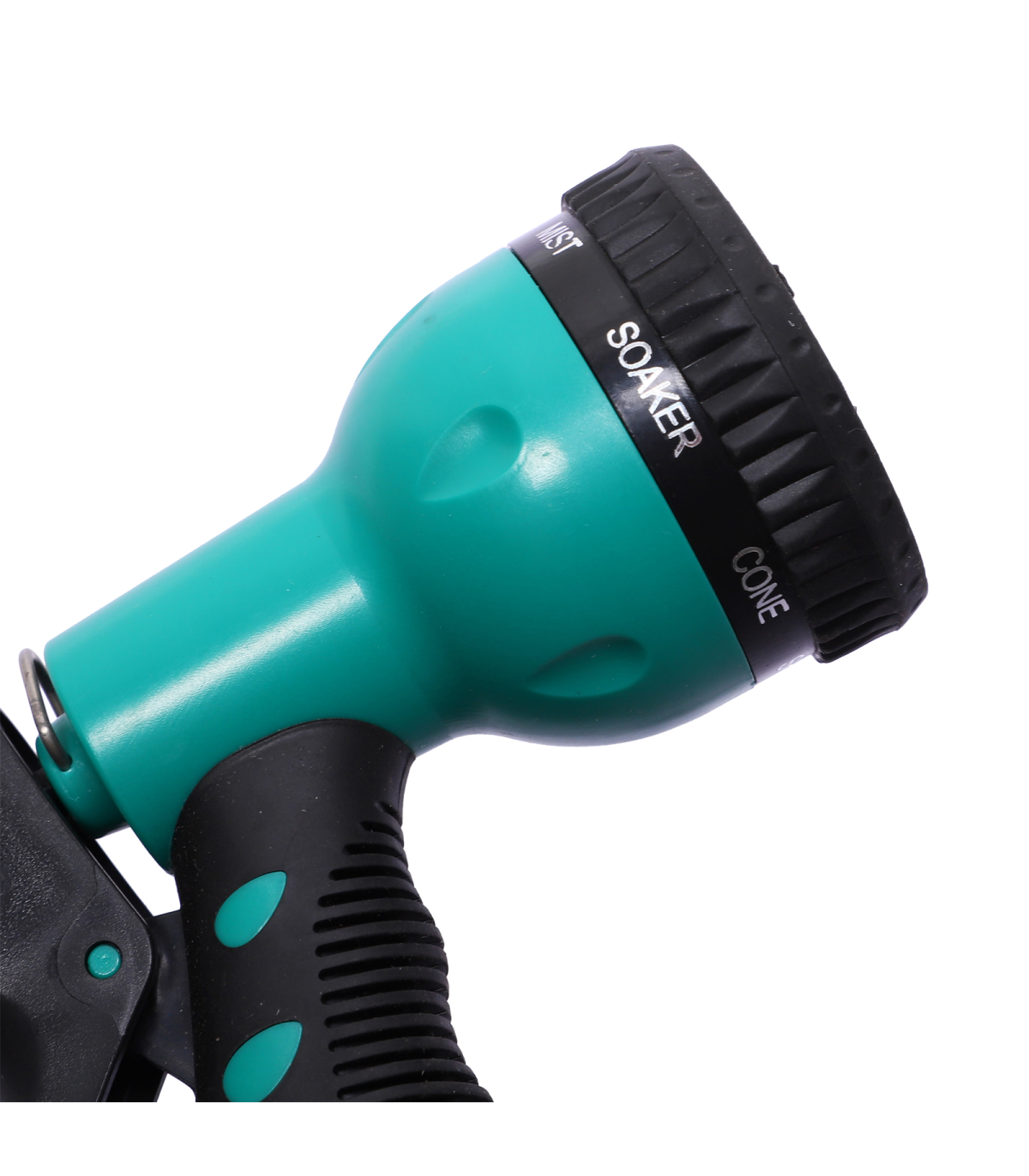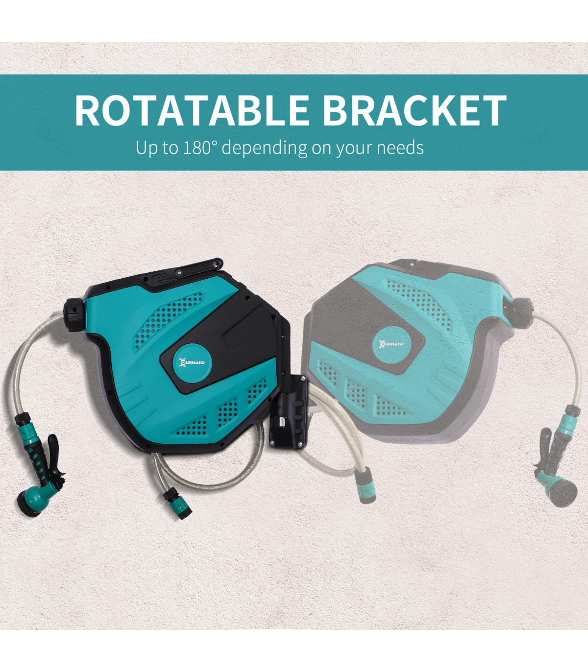 - DURHAND 15m Water Hose Reel-Black/Green - Description: - 15m water hose perfect for home and commercial use - High quality and impact resistant plastic construction to provide years of use - Auto guide rewind system for smooth and easy retraction - Seven different watering patterns and lockable hose for complete control - Ready assembled with a 180-degree swivel mounting bracket and accessories - Great for watering gardens, front lawns, patios and more.