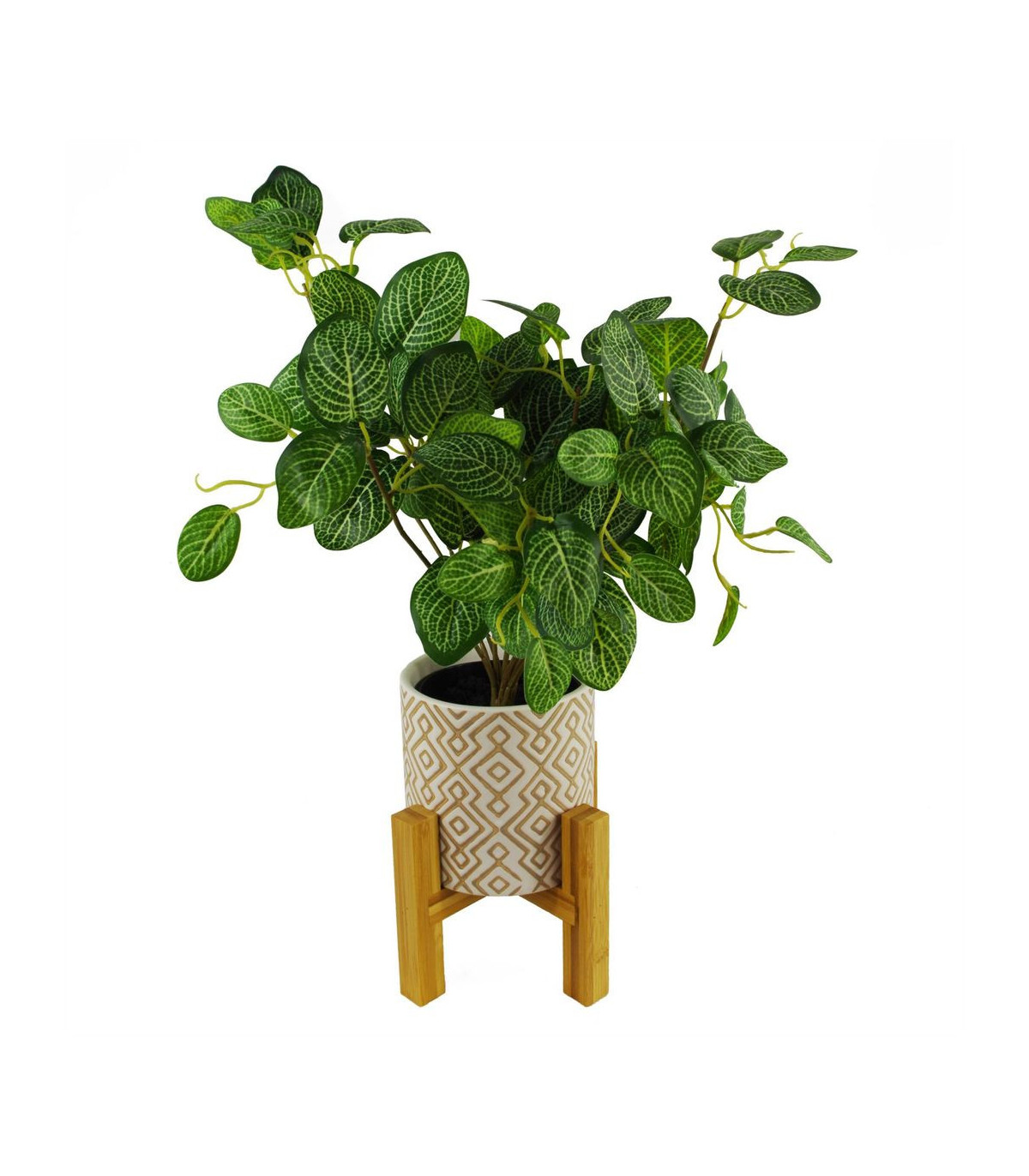 40cm Artificial Variegated Pothos Plant. This comes potted in a small black plastic pot (10cm x 10cm)- ready to display - just arrange the wired stems. Overall measurements when arranged as our pictures show are 40 x 30 x 30cm. These look great when combined with our ceramic planters (available separately). Artificial plant by Leaf Design UK - part of our range of realistic plants and trees.