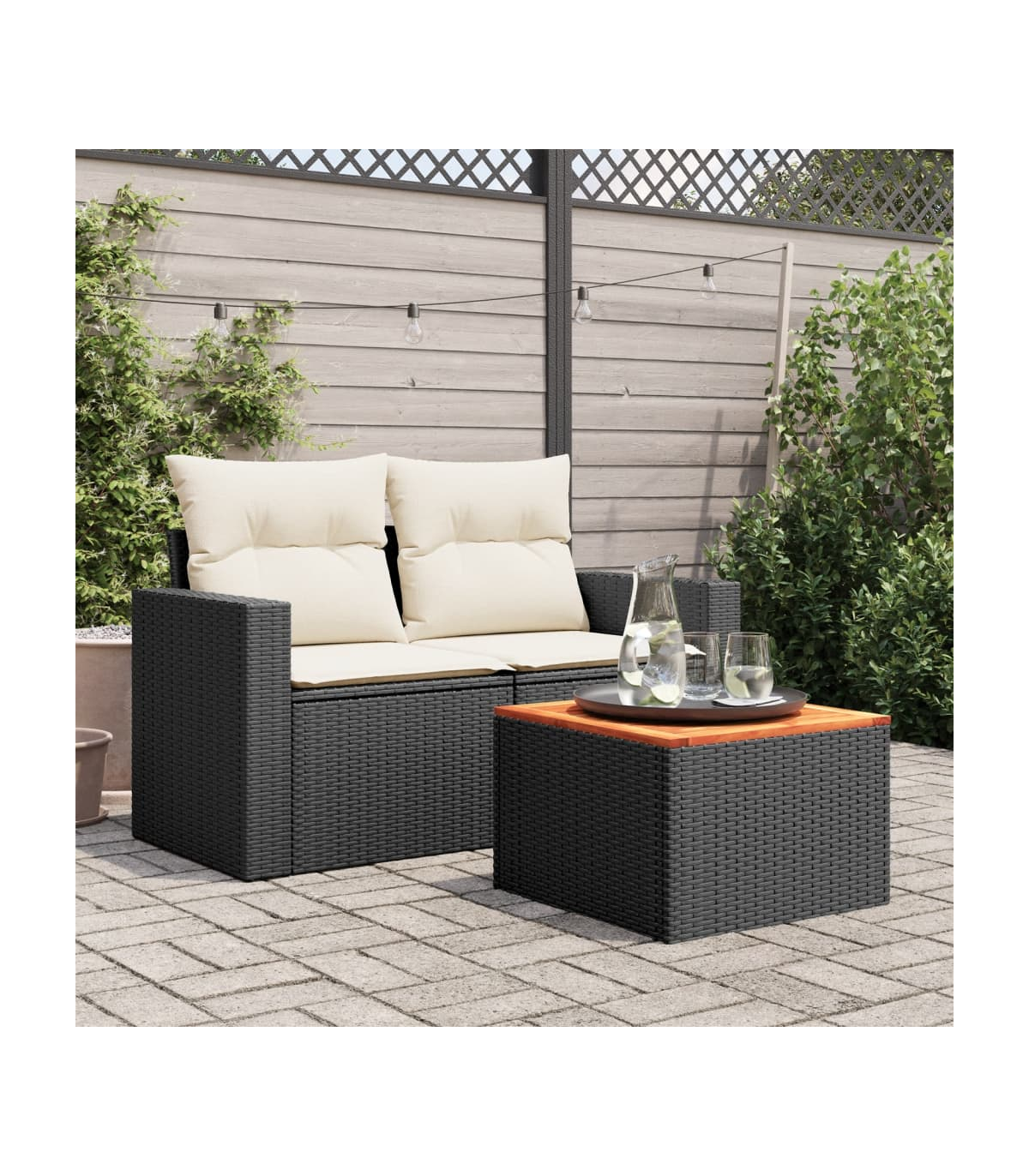 - Material: PE rattan, powder-coated steel, solid acacia wood with an oil finish