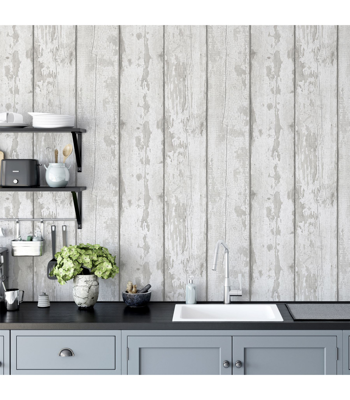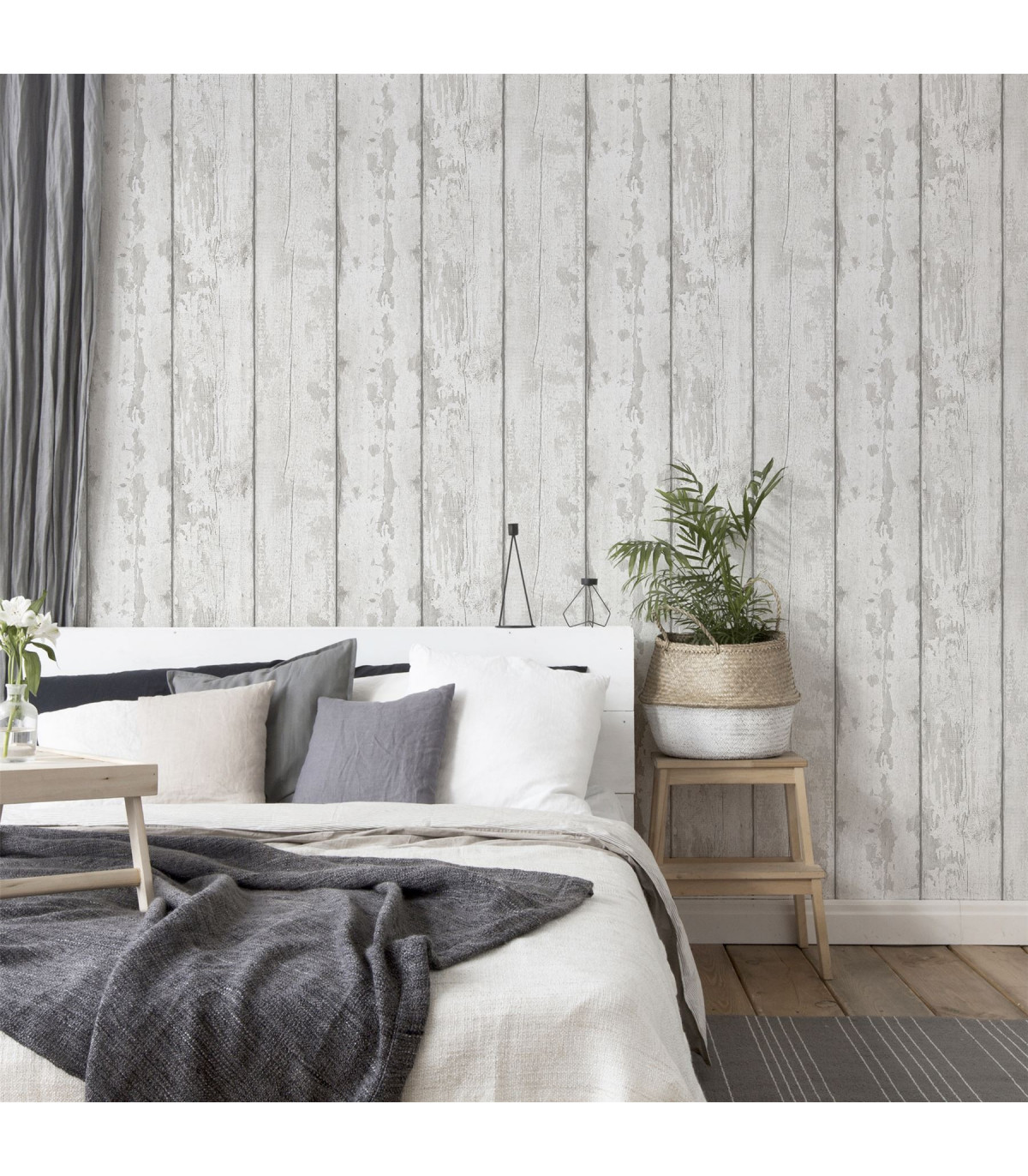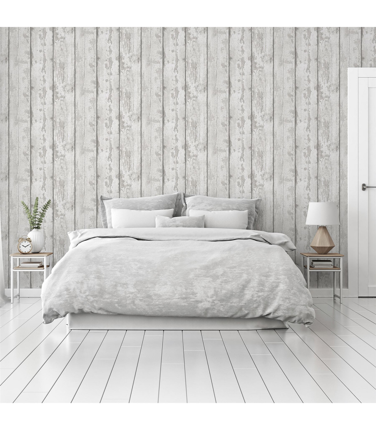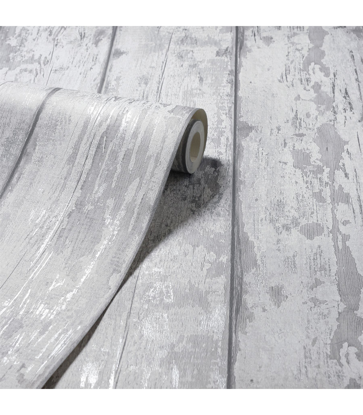Ideal for introducing a natural look to your walls effortlessly, this pale grey washed wood wallpaper with silver metallic highlights will also ensure the sense of space is maximised. A great look for homes of all styles, including rustic country cottages and contemporary spaces. Hang this paper on a feature wall, chimney breast or throughout a room to get the look you're after. Ideal for a kitchen, garden room, dining room or hallway. Suitable for most rooms except high moisture environments, like bathrooms. Hanging Method: Paste the Paper Pattern Match: Free Match Pattern Repeat: 53cm
