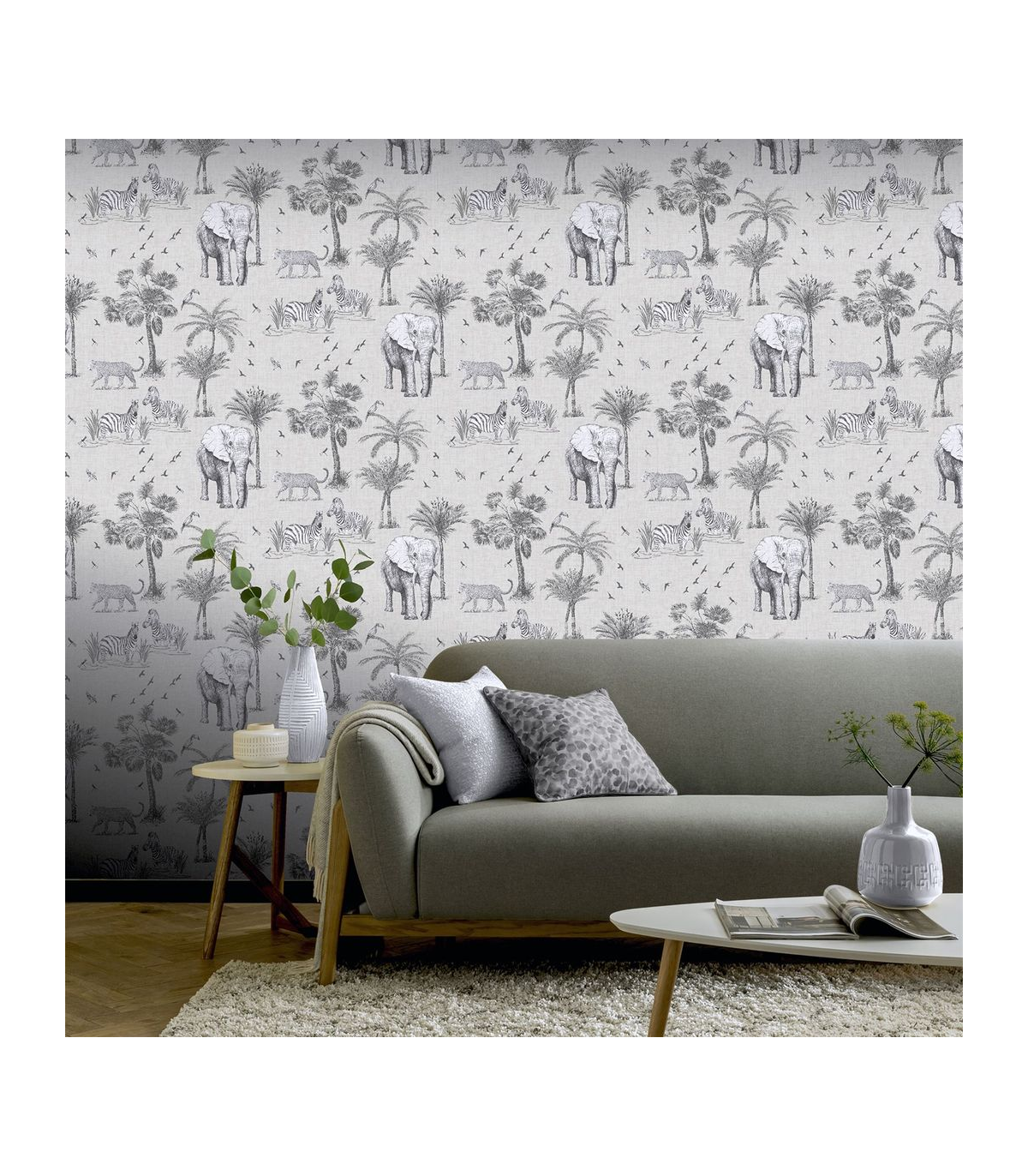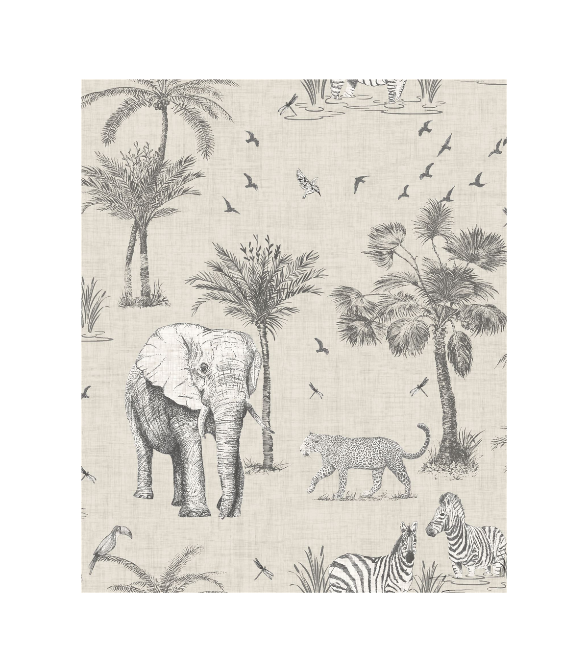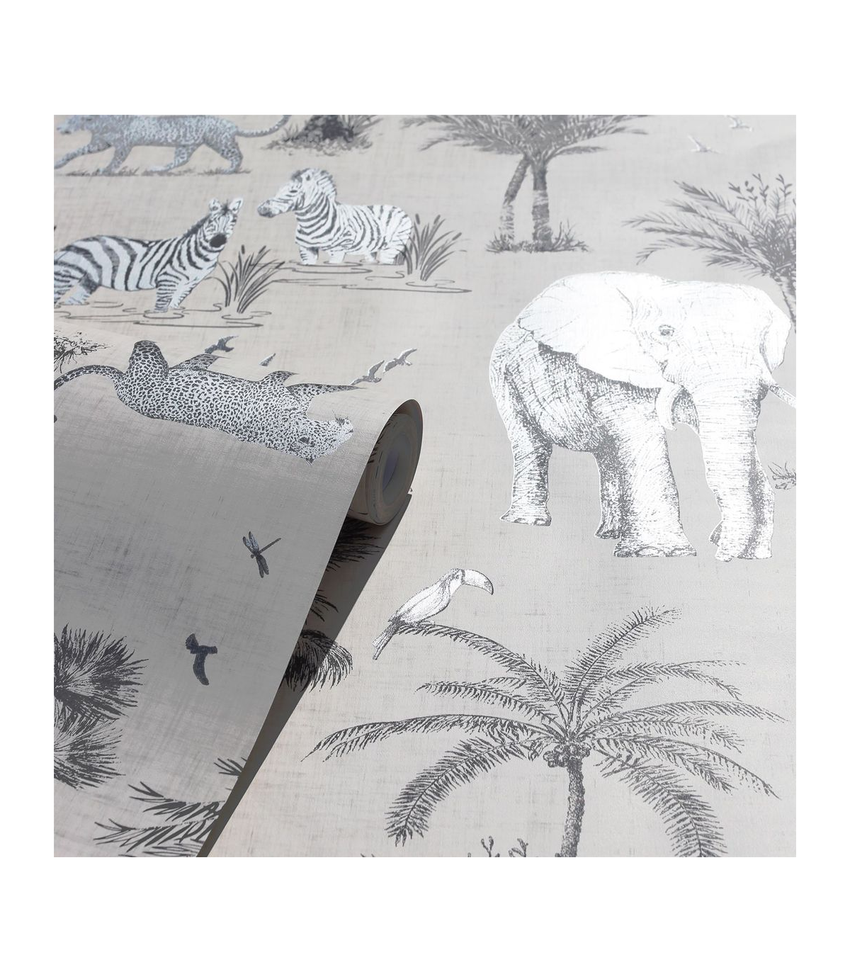 Hand-drawn by our talented designers at Arthouse, this exotic wallpaper featuring beautiful safari animals and on-trend palm trees will bring an indulgent, high-end feel to your home. With a neutral linen-look background it's an easy living wallpaper with endless possibilities! A fresh design that will maximise the light in your room, it's a great option for a feature wall in an open plan living area, bedroom, kitchen or playroom whatever the style of your home. Hanging Method: Paste the Paper Pattern Match: Off Set 32cm Pattern Repeat: 64cm