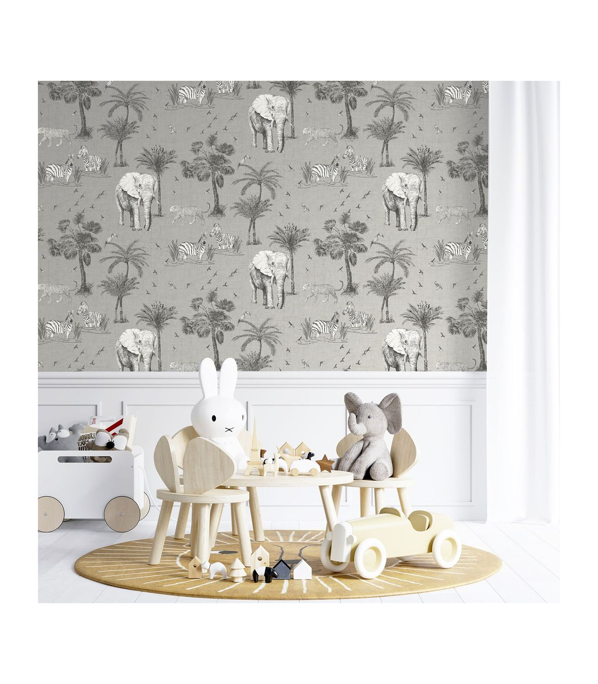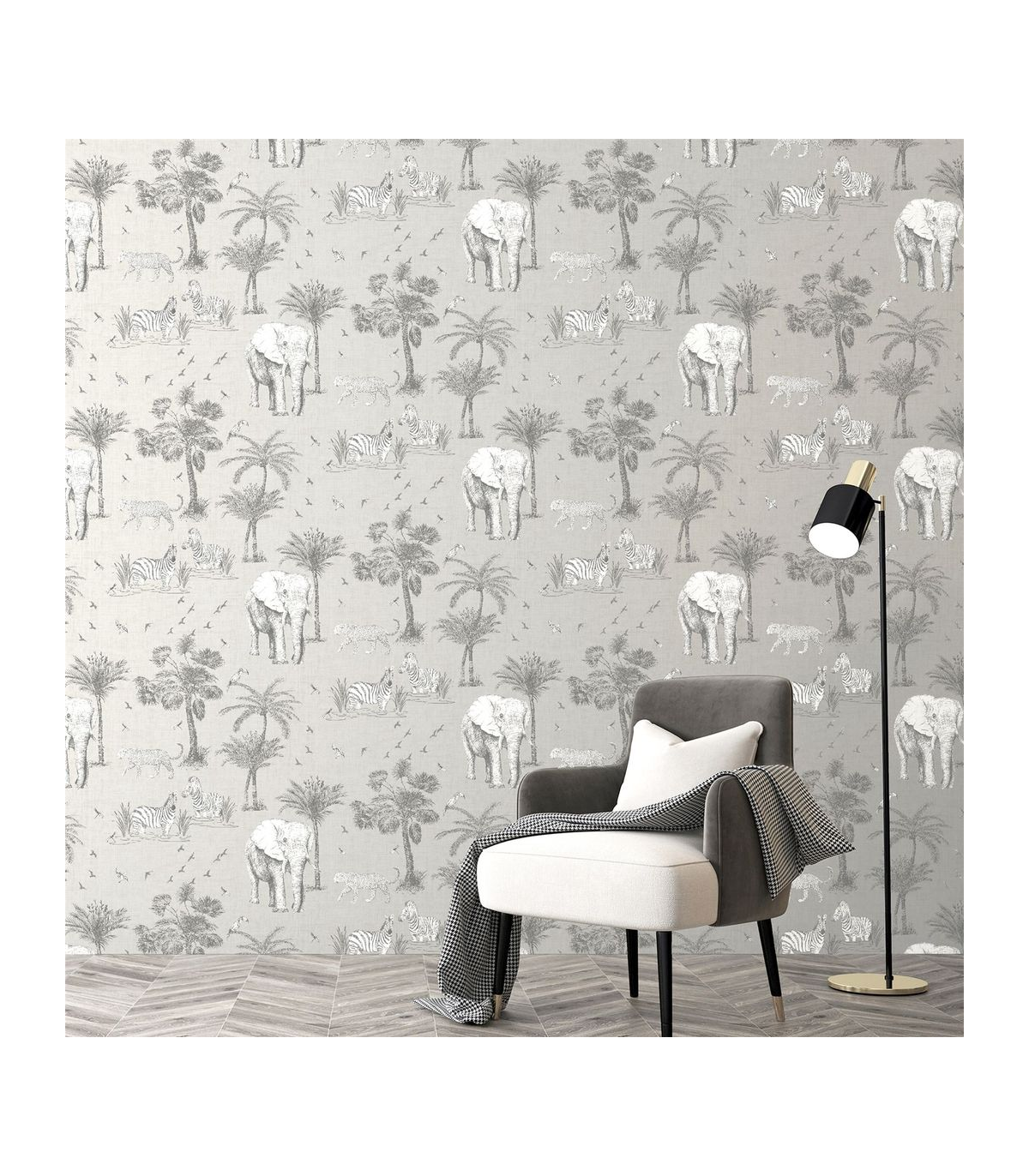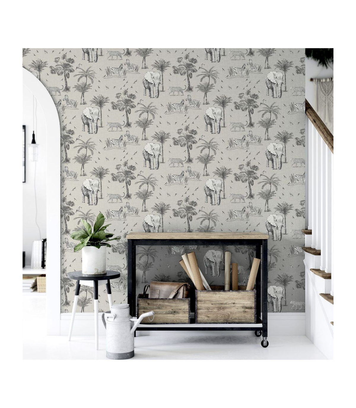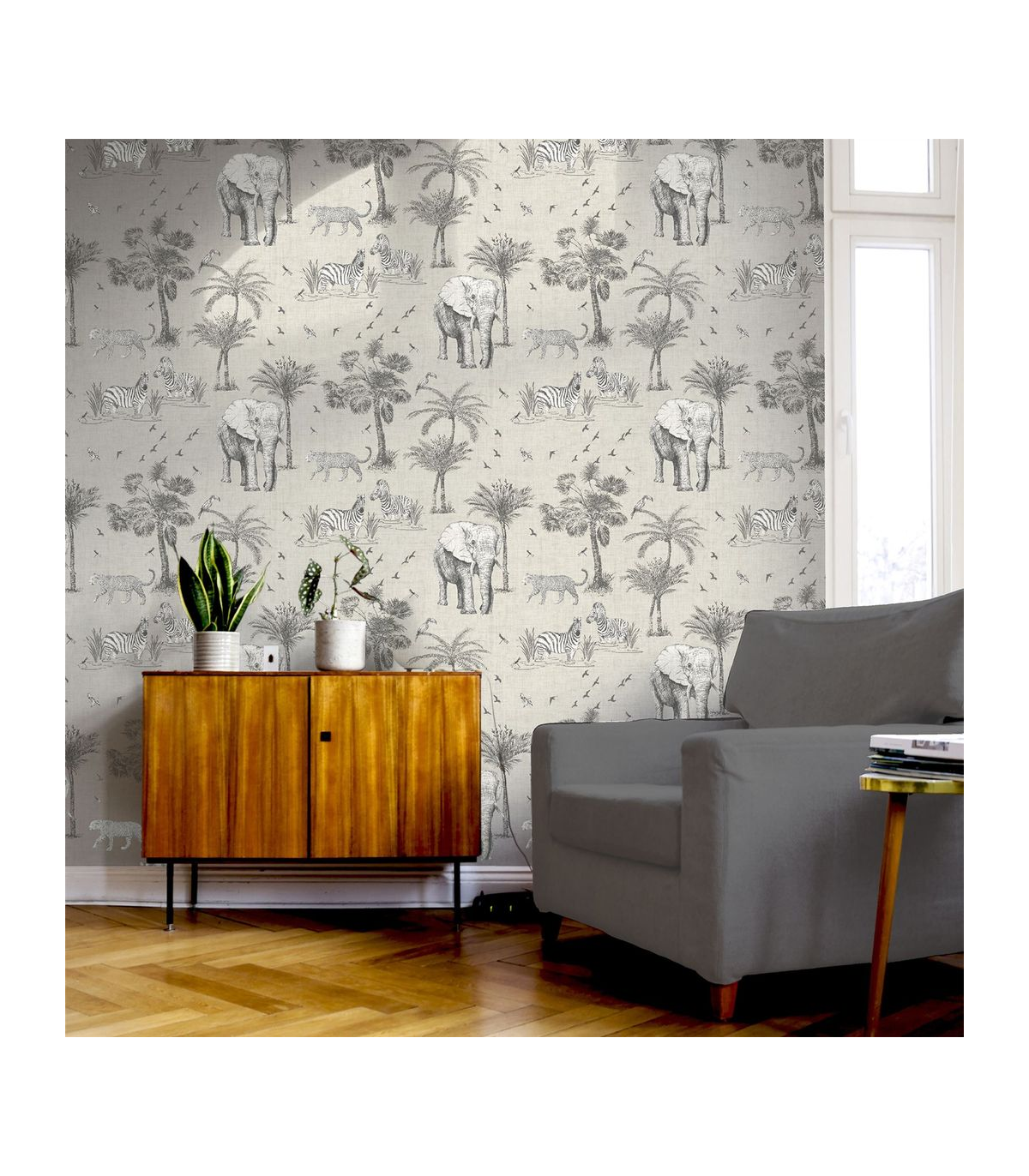 Hand-drawn by our talented designers at Arthouse, this exotic wallpaper featuring beautiful safari animals and on-trend palm trees will bring an indulgent, high-end feel to your home. With a neutral linen-look background it's an easy living wallpaper with endless possibilities! A fresh design that will maximise the light in your room, it's a great option for a feature wall in an open plan living area, bedroom, kitchen or playroom whatever the style of your home. Hanging Method: Paste the Paper Pattern Match: Off Set 32cm Pattern Repeat: 64cm