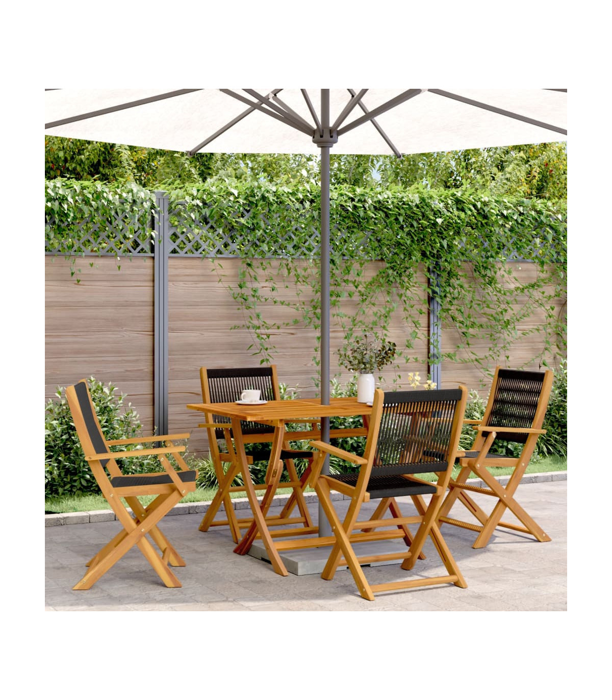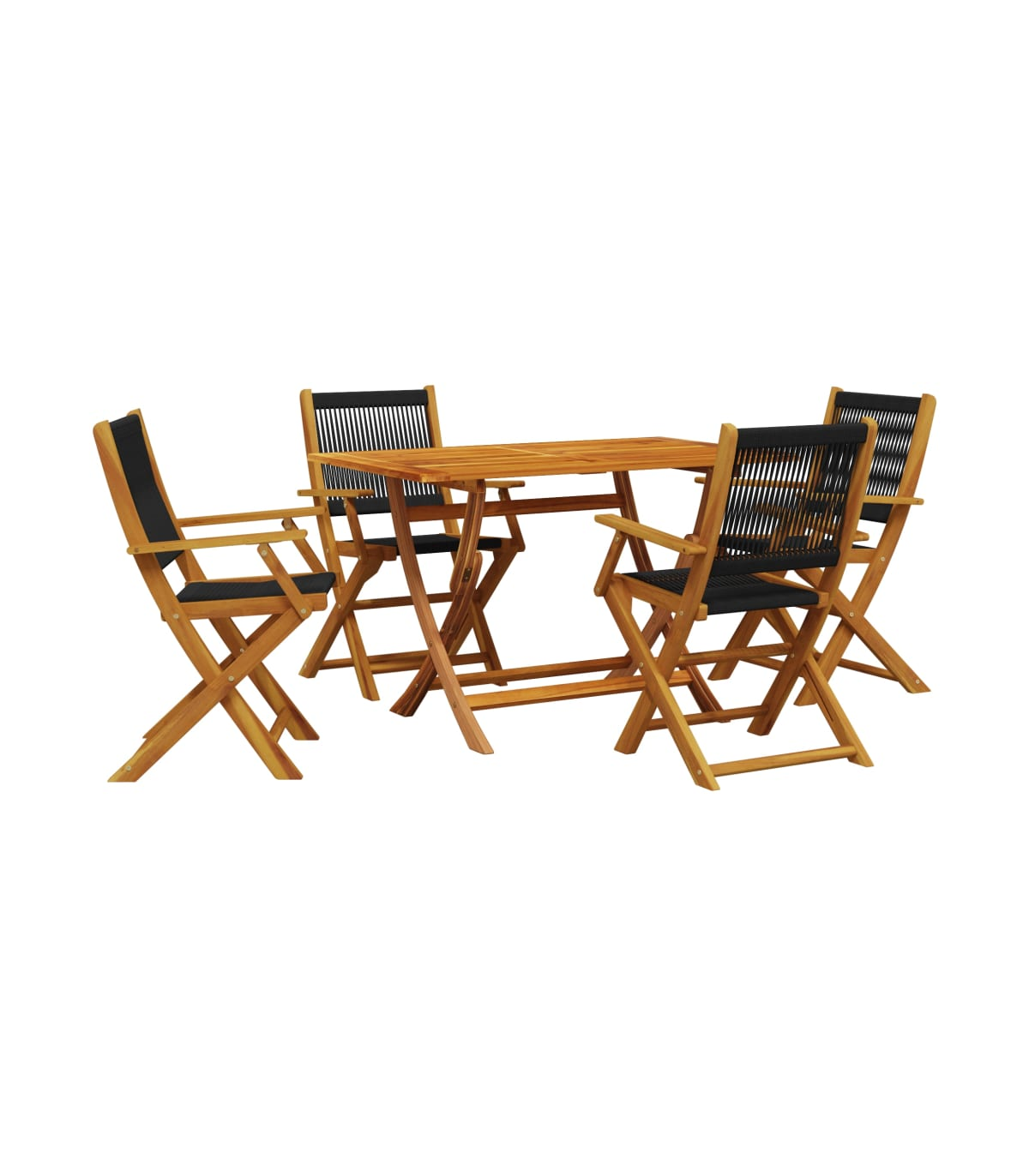 This garden dining set is a great choice for al fresco dining or just relaxing in the garden, backyard, or on the patio. Solid acacia wood is known for its strength and durability. Its diverse colours and unique grain patterns give it an attractive appearance. With good stability and resistance to weathering, it is ideal for crafting indoor and outdoor furniture.Practical design: The practical and flat wooden handrail allows you to rest your hands on it while enjoying your outdoor time.Sturdy tabletop: The outdoor table offers excellent support for holding your drinks, snacks, fruit baskets, and your favourite decorations.Foldable design: The outdoor dining table and chairs can be easily folded away when not in use, for easy storage and transportation. Good to know:To make sure your outdoor furniture stays beautiful, we recommend protecting it with a waterproof cover.