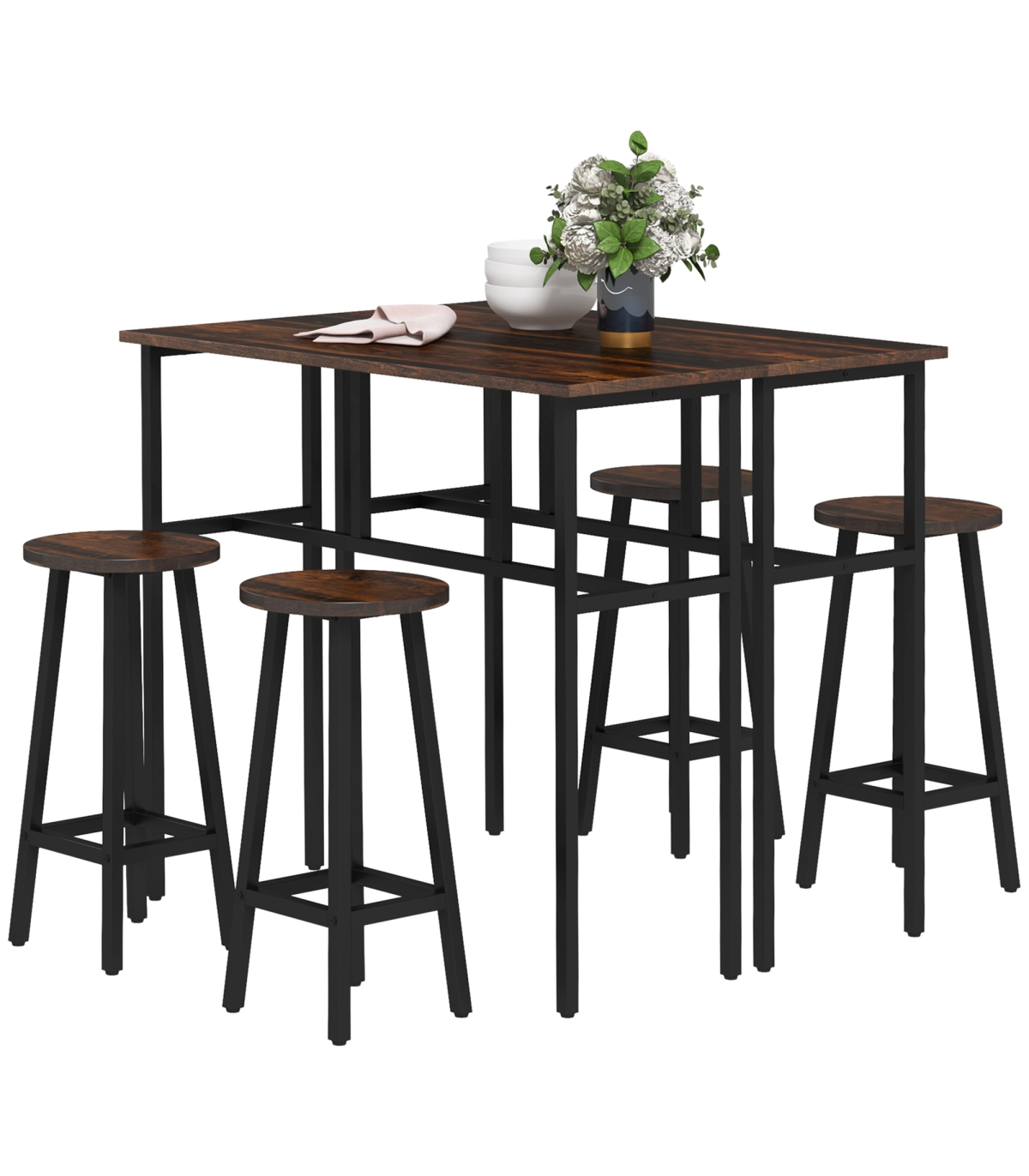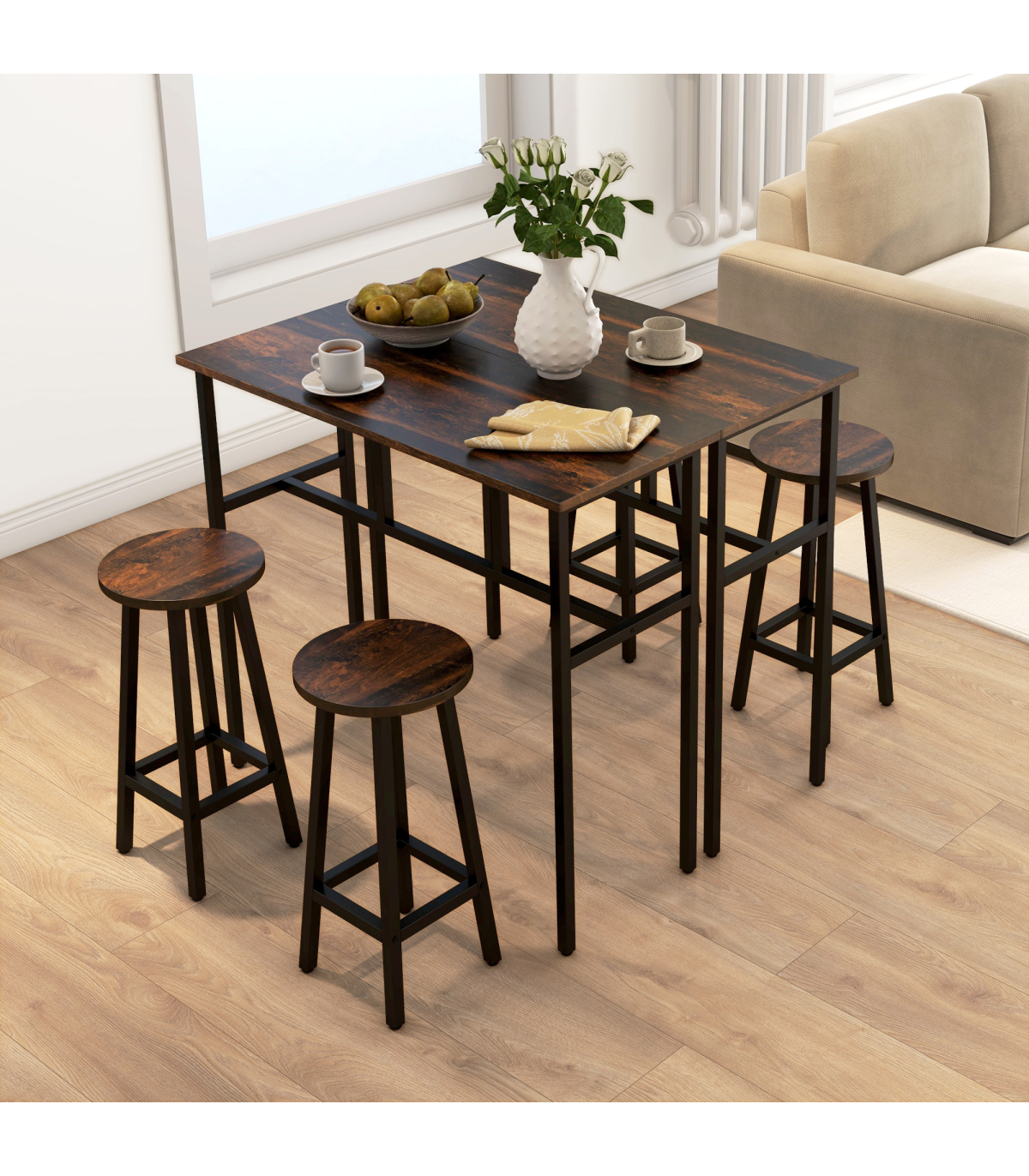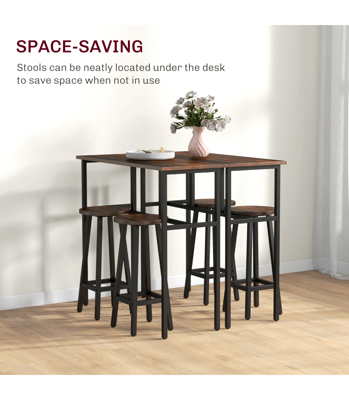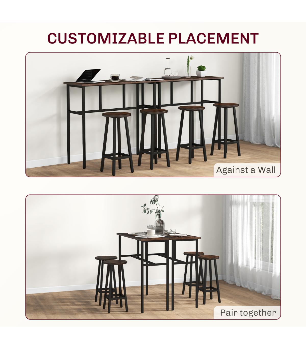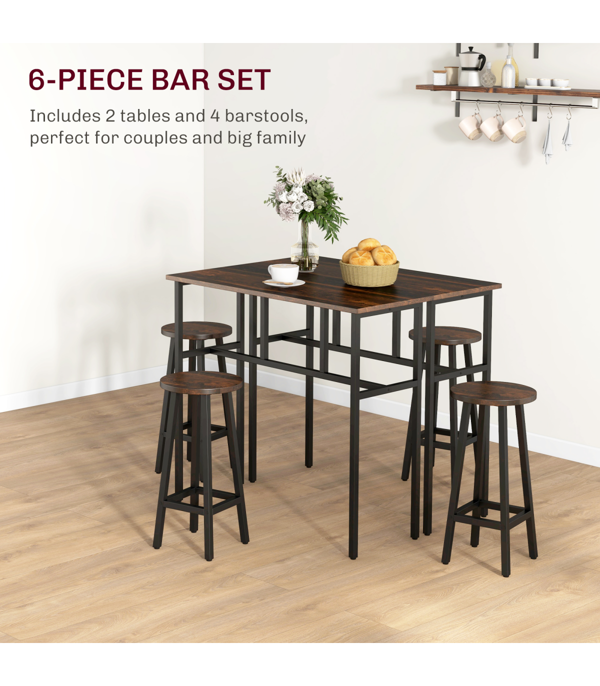 HOMCOM 6-Piece Industrial Bar Table Set, 2 Kitchen Tables with 4 Stools, Brown