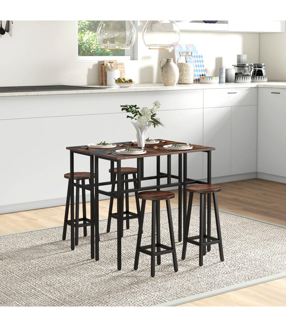 Turn a small space into an inviting dining room. With HOMCOM 6-piece bar table and stools, you can create a cozy spot to share everyday meals with your friends. The kitchen tables can be placed against a wall or can even be paired together to seat guests around and break out a deck of cards for a fun evening. Tuck the chairs, easily make your space look larger in a small footprint.