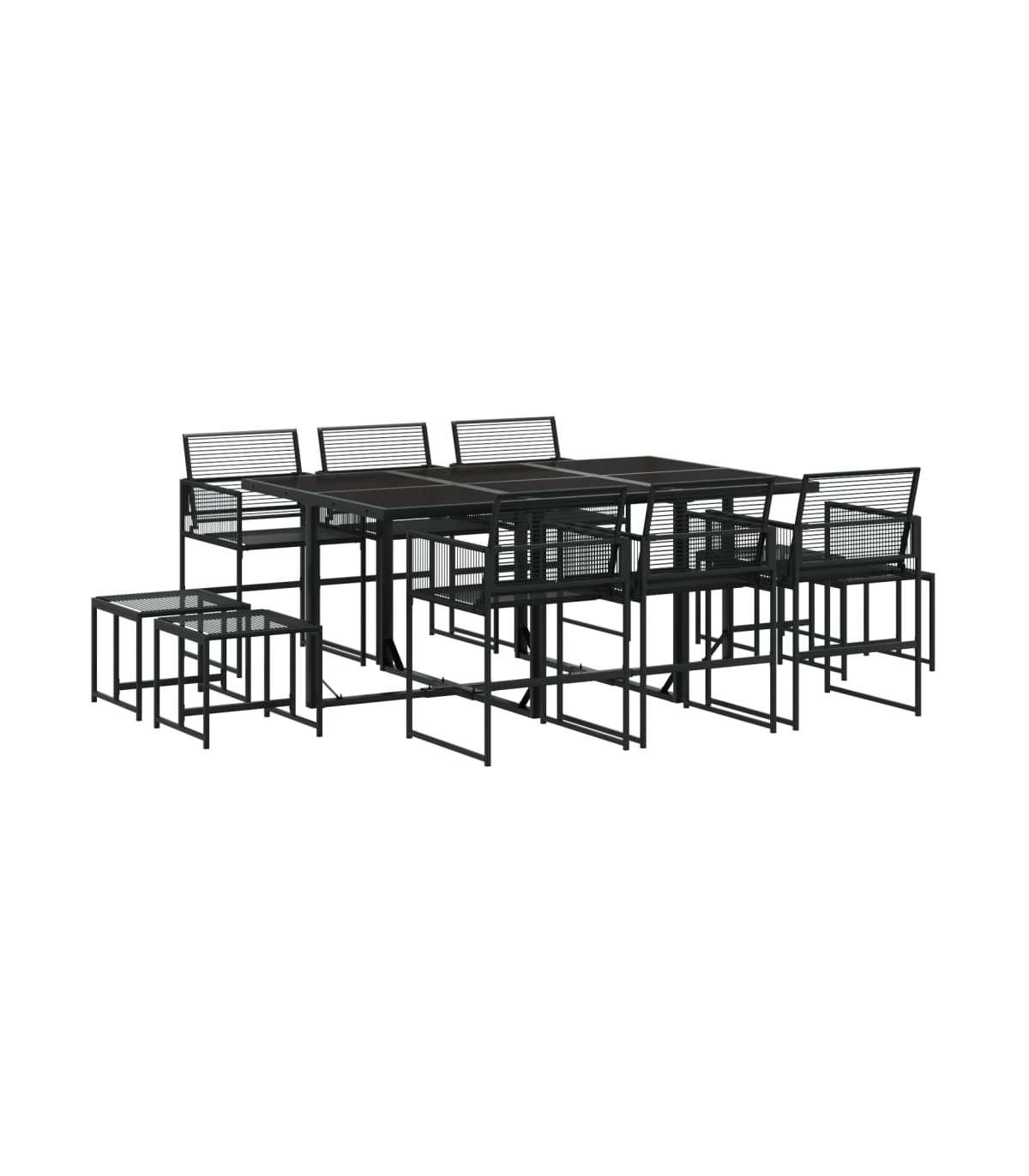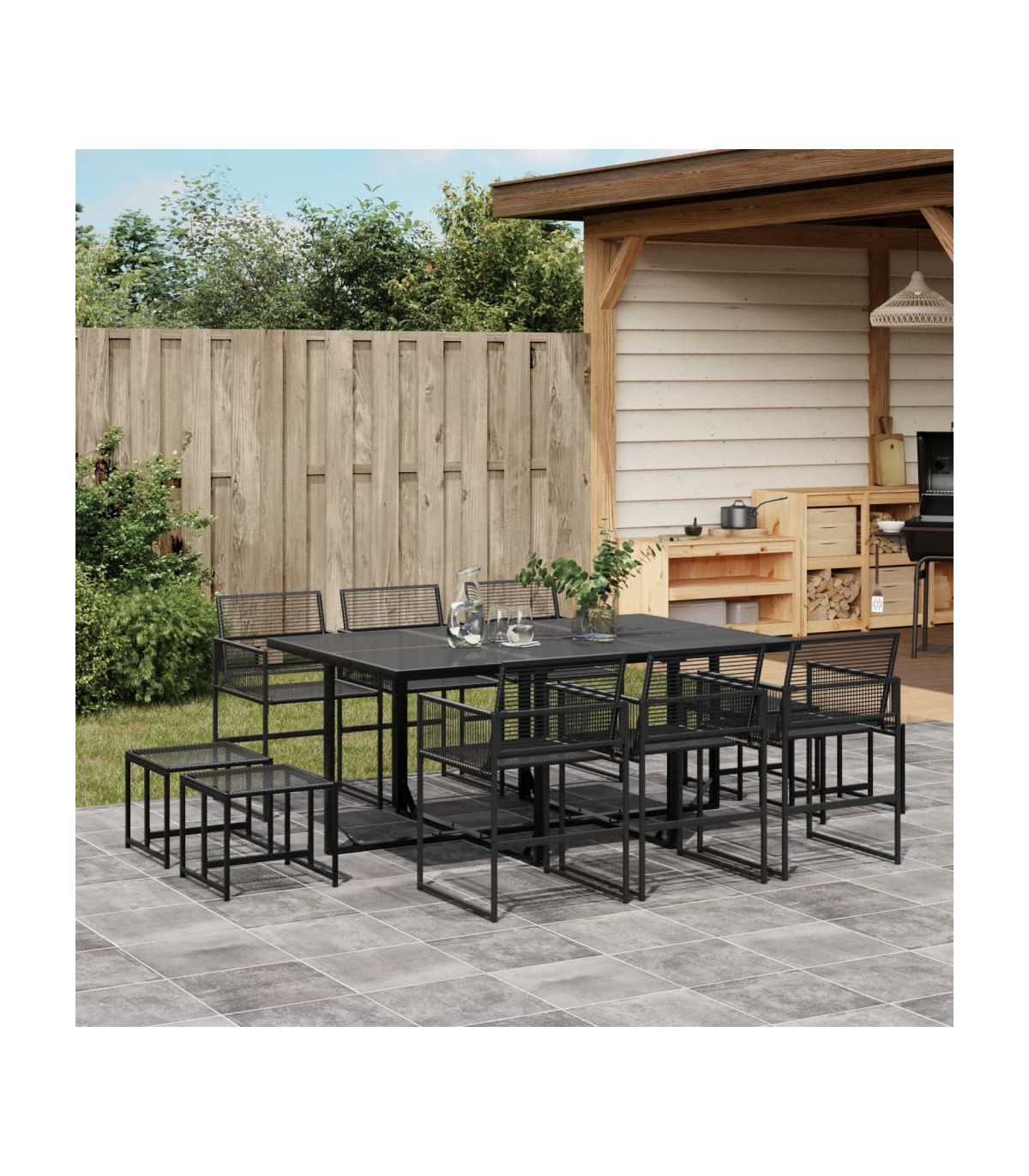 vidaXL 11 Piece Garden Dining Set Black Poly Rattan