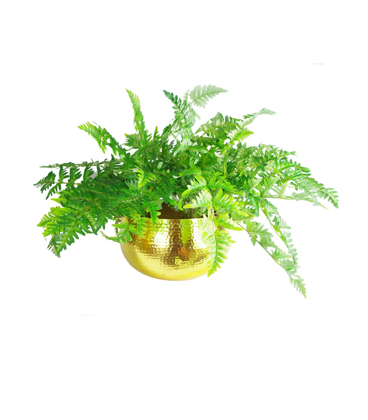 XL Metal Bowl Planter 32 x 20cm Hammered Gold Colour Straight Edge