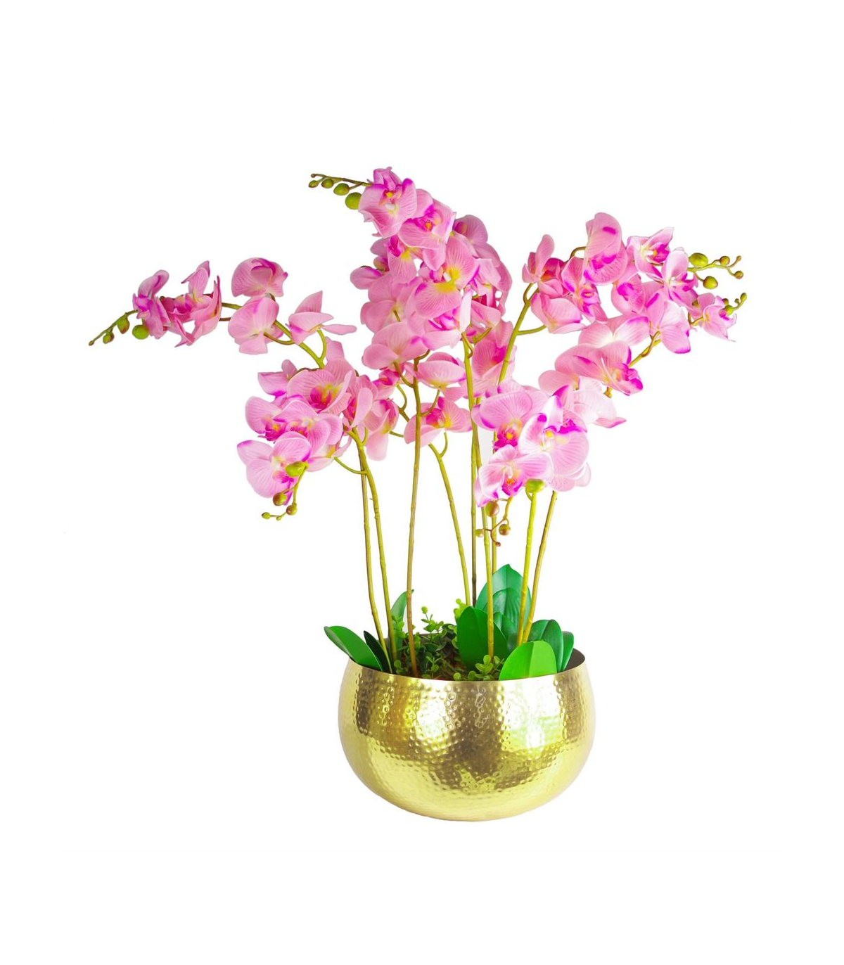 This exquisite metal planter boasts dimensions of 32cm in width and 20cm in height. Crafted from metal with a stunning hammered finish, its inner diameter of 30cm ensures a perfect fit for any plants, making it a magnificent centerpiece when adorned with multiple plants. Handmade with a rustic finish, each planter showcases intentional minor imperfections, adding to its charm and uniqueness. Due to the handmade nature, slight variations may be present from one planter to another, making each piece slightly distinct. The price indicated is for the planter alone, however, we have included images displaying how it would appear with a selection of our plants to provide a sense of scale (plants featured are available for purchase separately). Available in an array of colors and sizes, this style of planter can also be acquired with a smooth or curved top edge to suit your preference. Designed for indoor use exclusively.