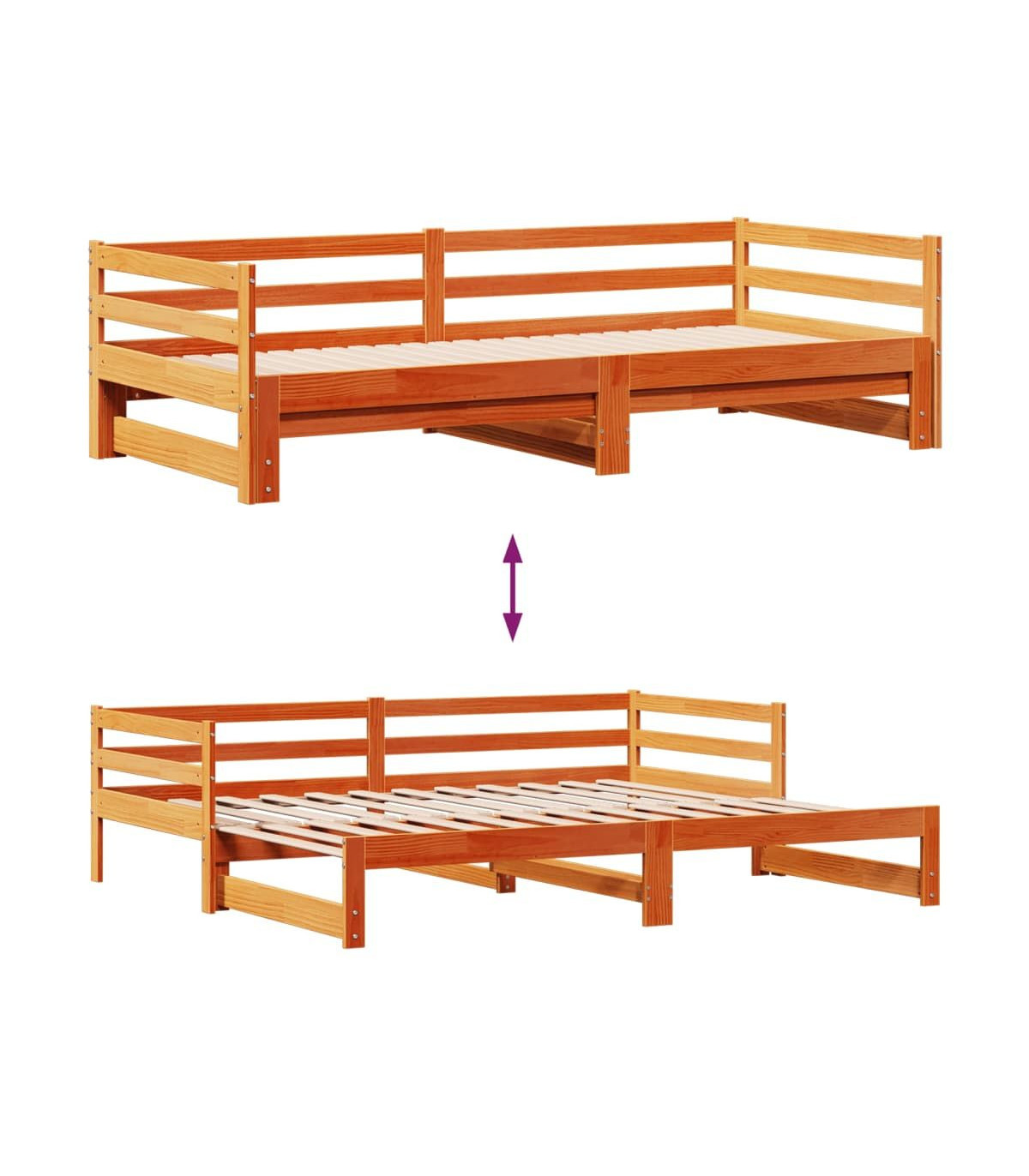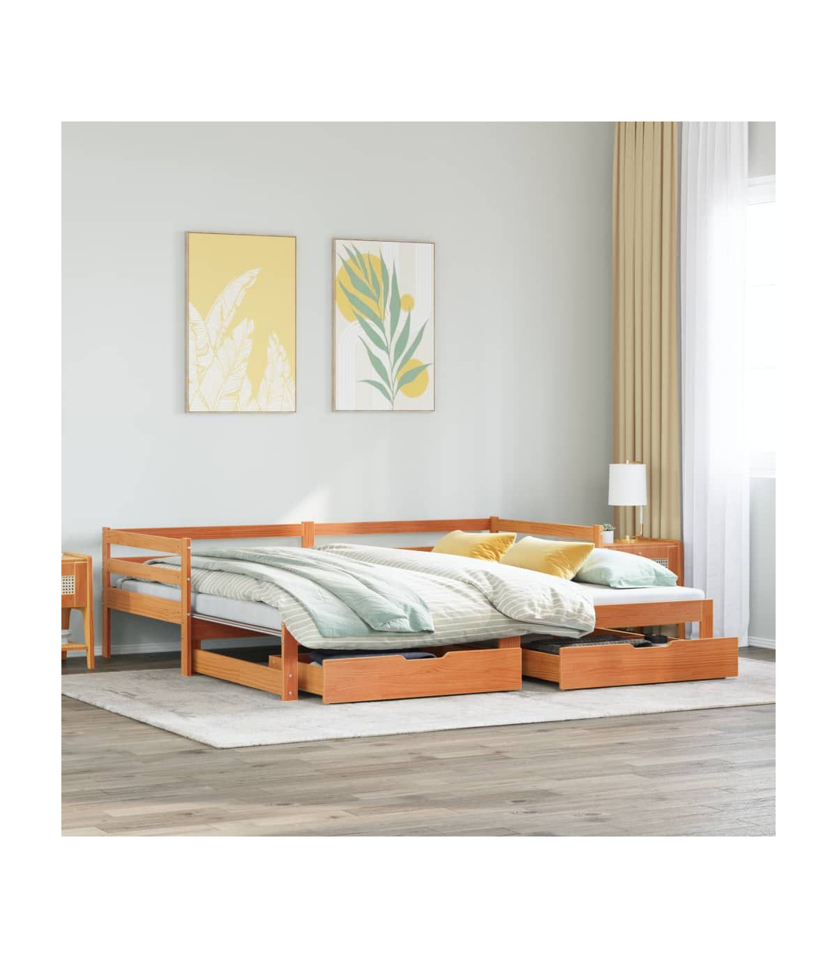 vidaXL Daybed with Trundle&Drawers without Mattress Wax Brown 90x190 cm Single