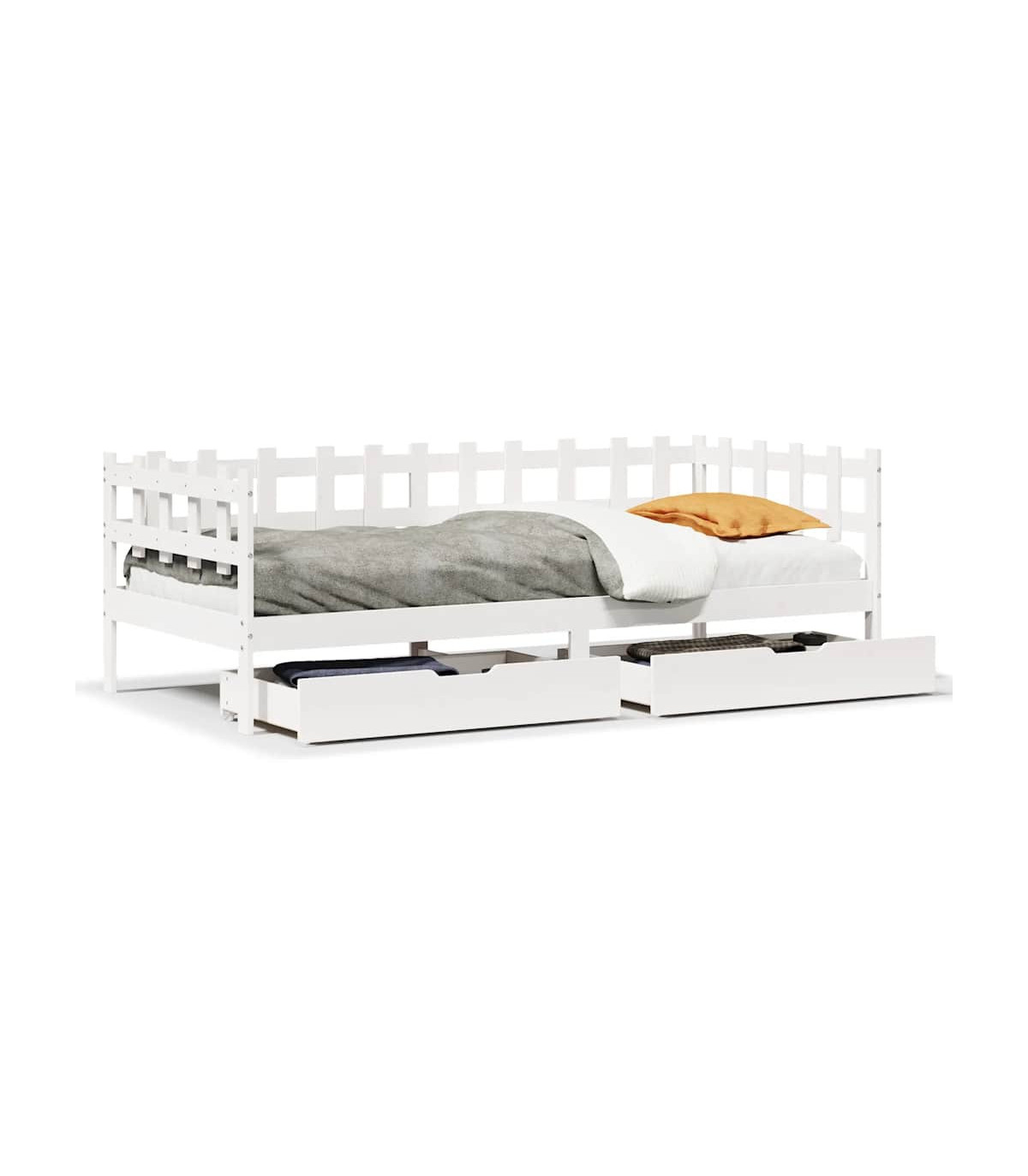 vidaXL Daybed with Drawers without Mattress White 90x190 cm Single Solid Wood